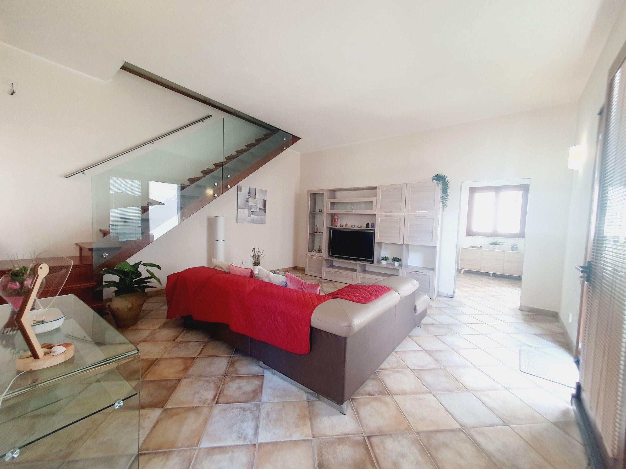Internally, the house is spread over two elegant levels. On the ground floor, you will be greeted by an entrance hall with a spacious and comfortable living room, perfect for your moments of relaxation. The eat-in kitchen is fully equipped with modern appliances such as a dishwasher, a 4-burner cooker and a capsule coffee machine, providing everything you need to prepare delicious meals just like at home. All this is enhanced by an air-conditioning system, ensuring maximum comfort in all seasons. In addition, you will find two bathrooms with showers, one of which offers convenient direct access to the courtyard, and a practical tumble dryer at your disposal.