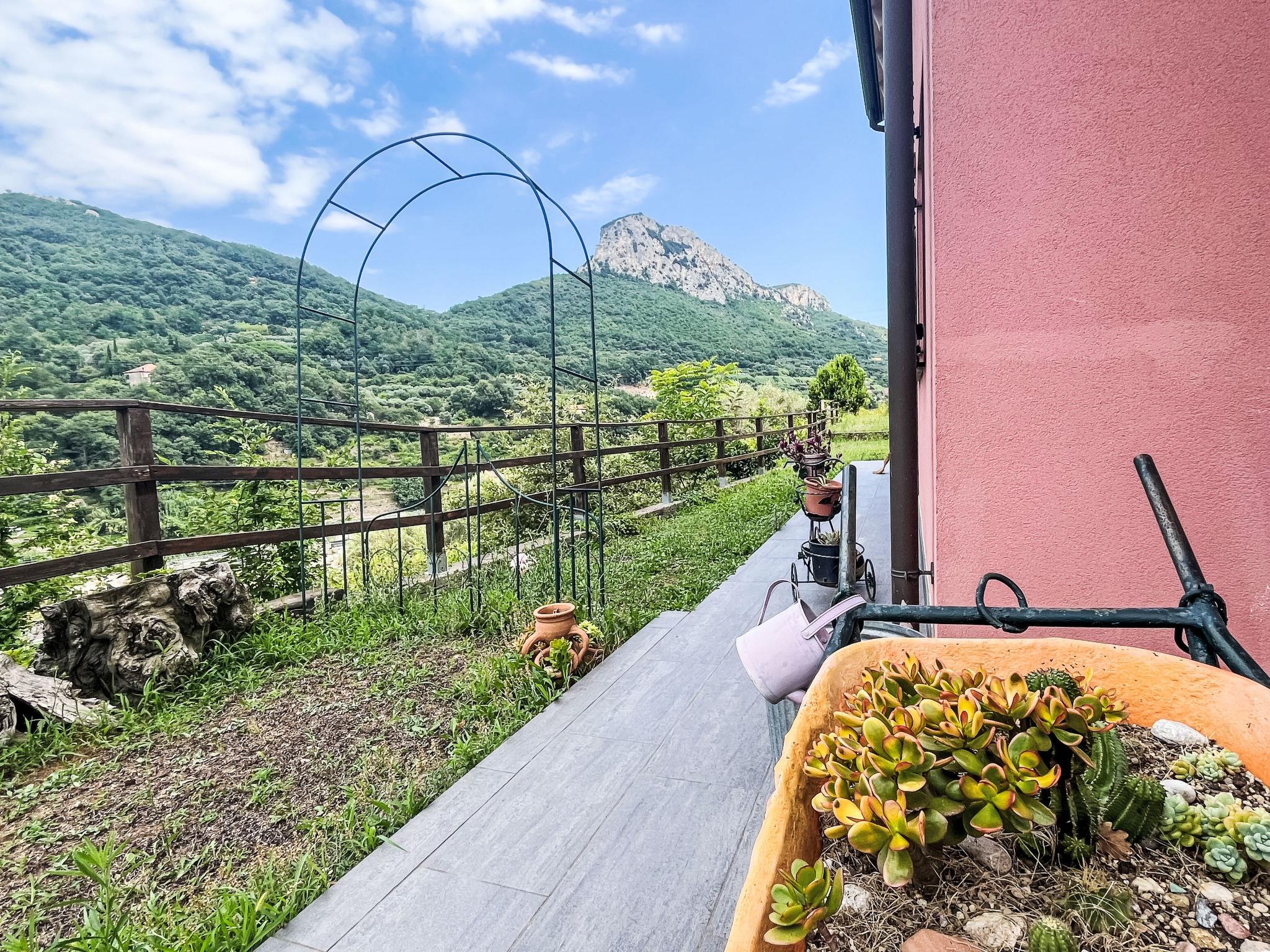 Beautiful, cosy 2-family house "Le radici dell´ulivo", 2 storeys, renovated, surrounded by trees and meadows. 800 m from the centre of Calice Ligure, 4 km from the centre of Finalborgo, 5 km from the centre of Finale Ligure, in a secluded, quiet, sunny position, 5 km from the sea. Private: garden 600 m2 with lawn. 200 m long narrow motor access to the house. Parking (for 2 cars) at the house. Restaurant, bar, bakery 800 m, bicycle rental 4 km, bus stop 500 m, railway station "Finale Ligure" 5 km, sandy beach "Finale Ligure" 5 km pebble beach "Varigotti" 9 km.