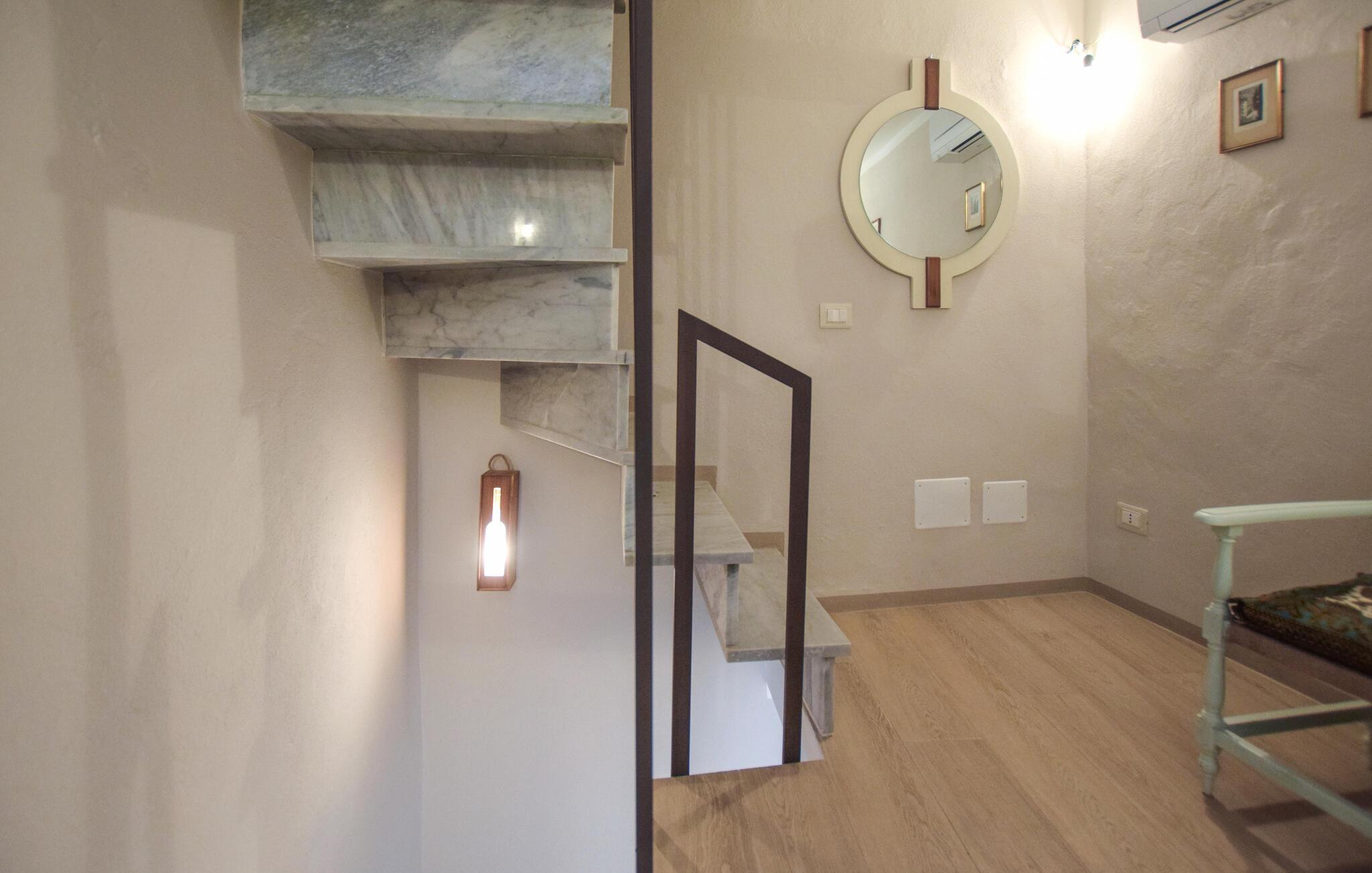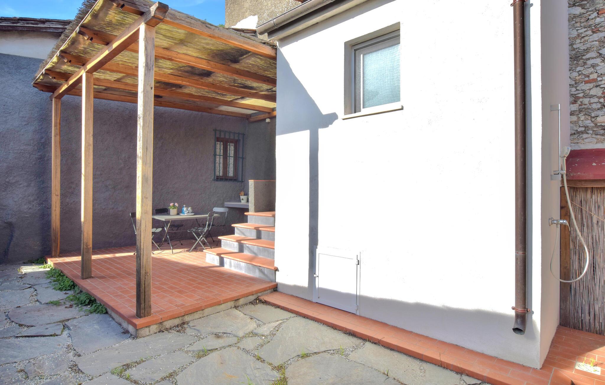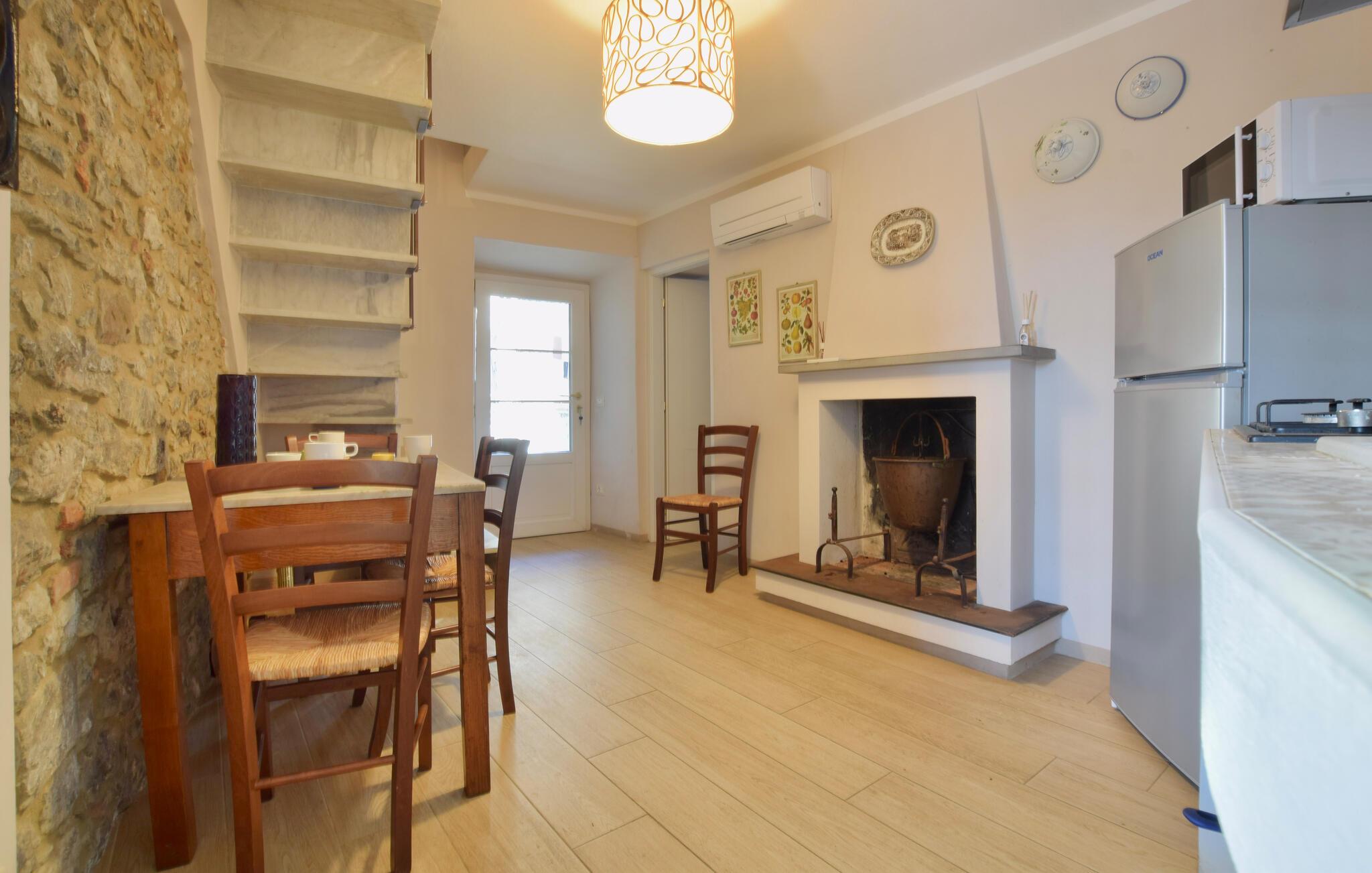 En overdækket terrasse giver plads til afslapning udendørs. Herfra kan I nyde en storslået udsigt over de grønne bakker helt ned til kysten. Beliggenheden i en traditionel landsby tilbyder en autentisk toscansk atmosfære, ideel for dem, der søger afslapning og autenticitet.