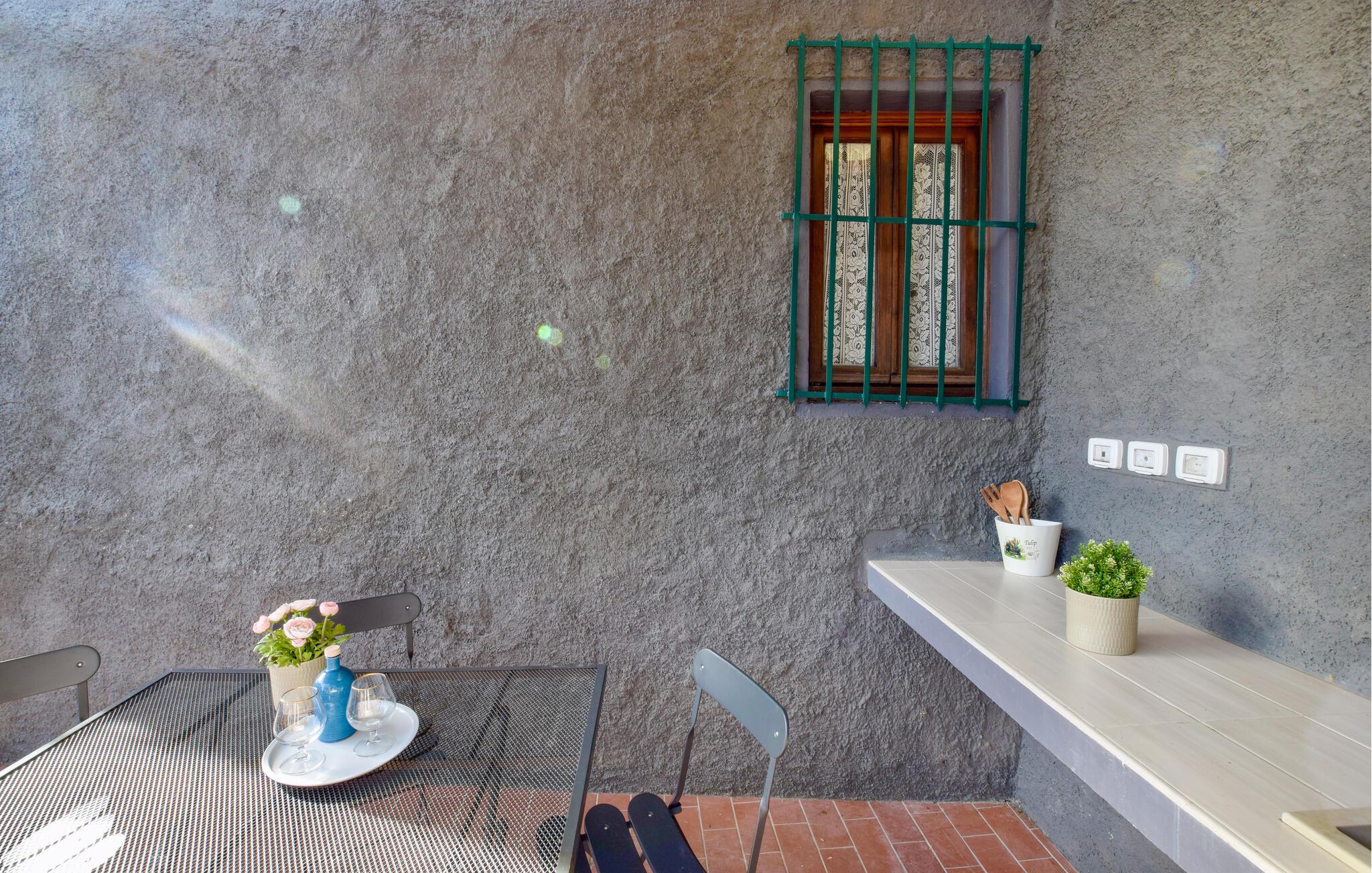 Dette charmerende feriehus i den historiske bymidte kombinerer rustik stil med moderne bekvemmeligheder. Naturstensvægge, en pejs og gennemtænkte detaljer skaber en varm atmosfære, mens det lyse køkken med spiseplads lægger op til at lave mad sammen.