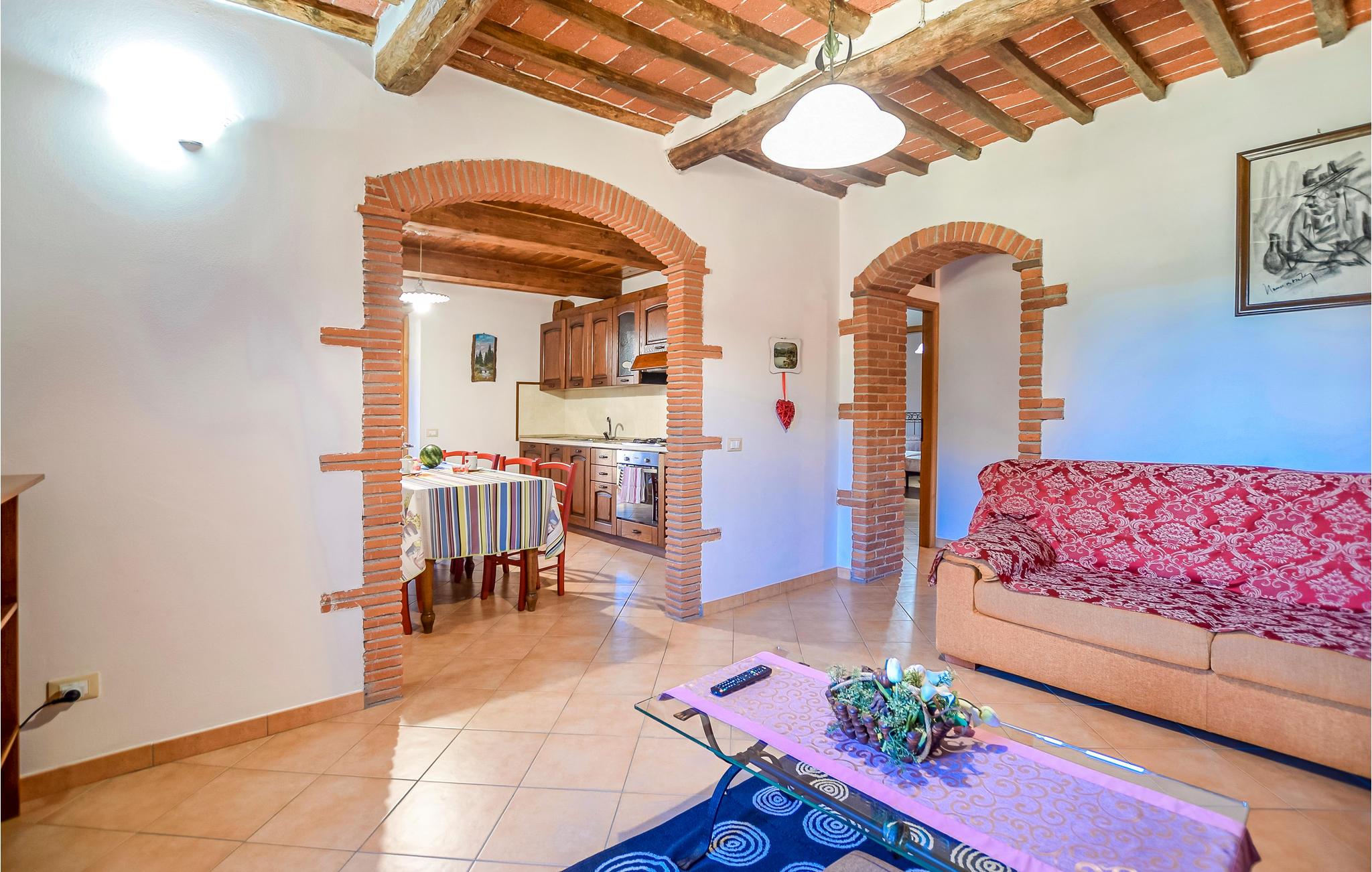 Dette smukke feriehus med sine typiske italienske trælofter og dørkarme i mursten er rammen for jeres drømmeferie i Toscana.