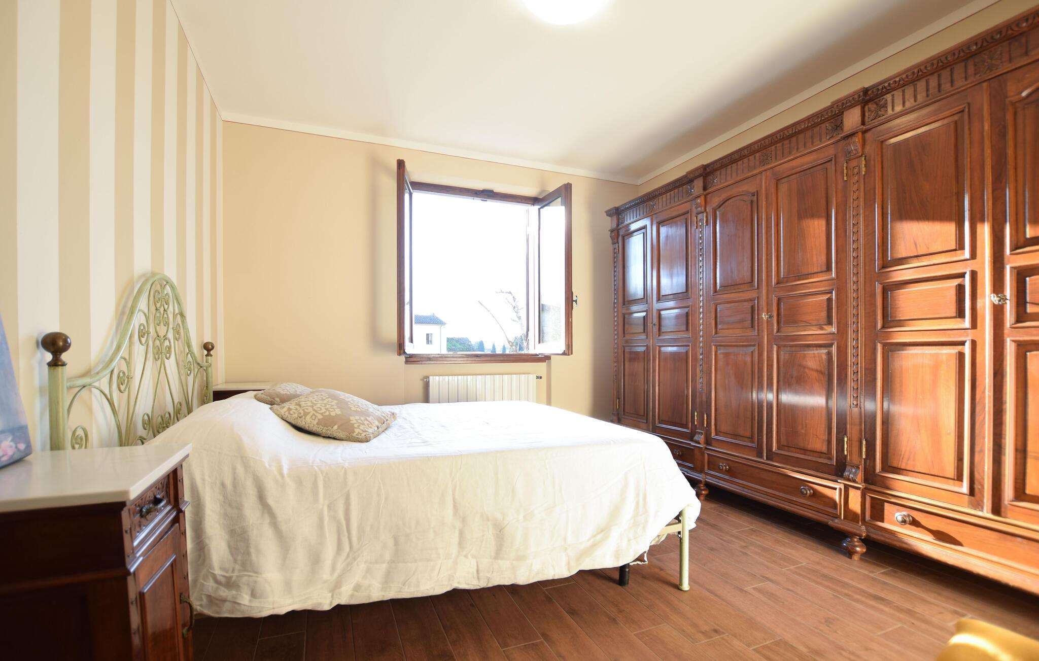 Huset har en fremragende beliggenhed mellem Apuan-alperne og havet, så gør jer klar til en afslappende ferie krydret med store naturoplevelser! Hvis I foretrækker at bo i grønne omgivelser frem for på kysten, og hvis I samtidig leder efter en rummelig bolig med privat swimmingpool, er denne bolig helt ideel for jer. Huset er yderst indbydende i behagelige cremefarver, der skaber en varm og rar atmosfære. I får her en skøn oase af fred, hvor I kan hvile stængerne efter en aktiv feriedag. Tag jer god tid med madlavningen og nyd alle dagens måltider i solen på terrassen. Lad børnene gå fra bordet og hoppe i poolen, mens I slikker sol og gør jer klar til at gå på opdagelse i de smukke omgivelser.