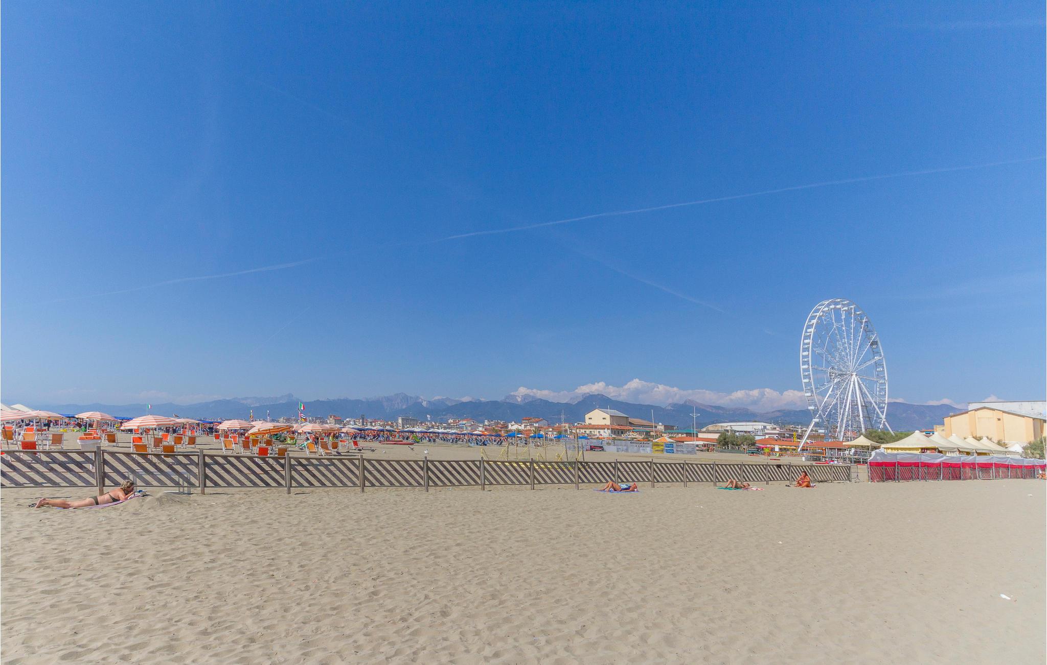 Dette elegante feriehus ligger kun 300 m fra stranden i byen Camaiore. Boligen er fordelt over tre etager og er omgivet af en have med gril, hvor I kan spise sammen i det fri. I kan bekvemt gå til bymidten med benediktinerabbediet, museet med skral kunst, alle slags butikker, barer og restauranter. Dette er det ideale udgangspunkt for at nå stranden i Lido di Camaiore (8 km) med badefaciliteter, en smuk promenade og "Pontile" (badebroen), byens varetegn. På broen kan I nyde en aperitif og den spektakulære udsigt over kysten. Pietrasanta er berømt for marmor og bronze, den historiske bykerne med kunstgallerier samt San Martino katedralen og ligger 9 km herfra. Nogle er værelserne ligger i underetagen.