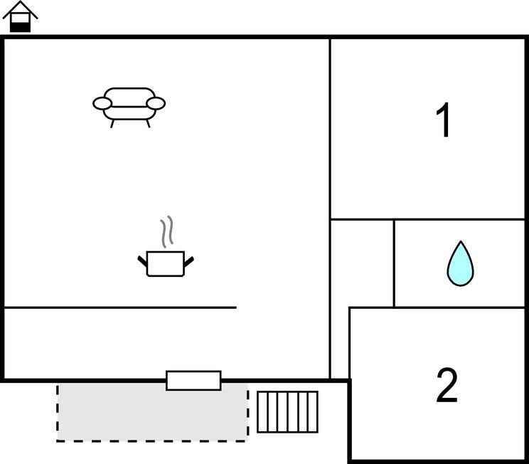 Opholdsstue/køkken - 2 Sovepladser. (Sofa, madras eller lignende).