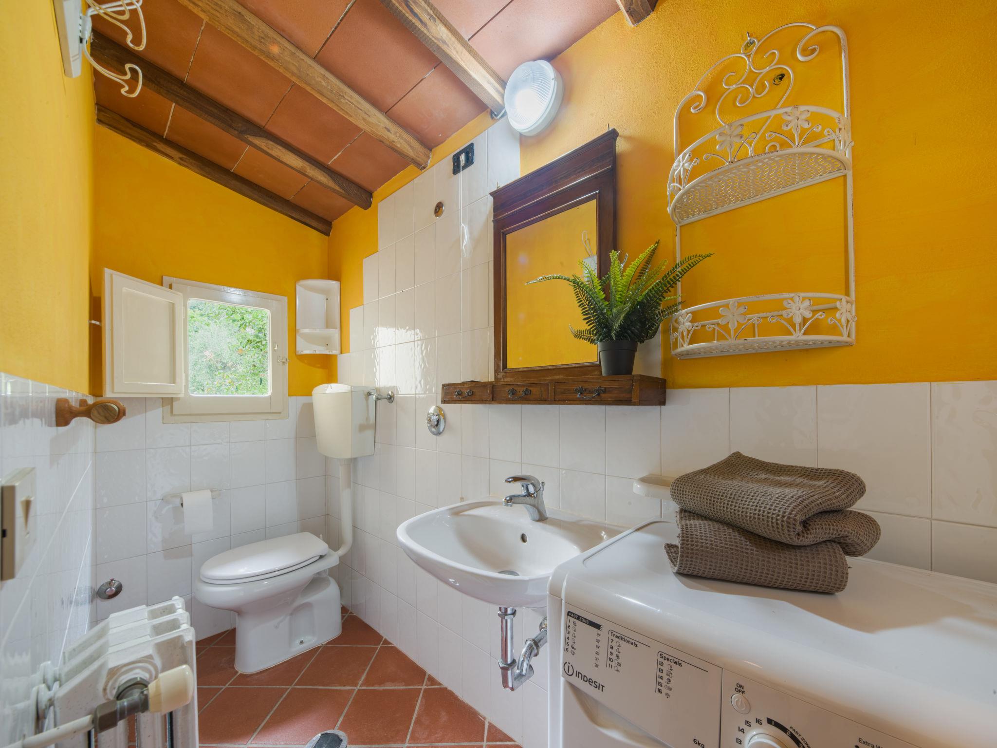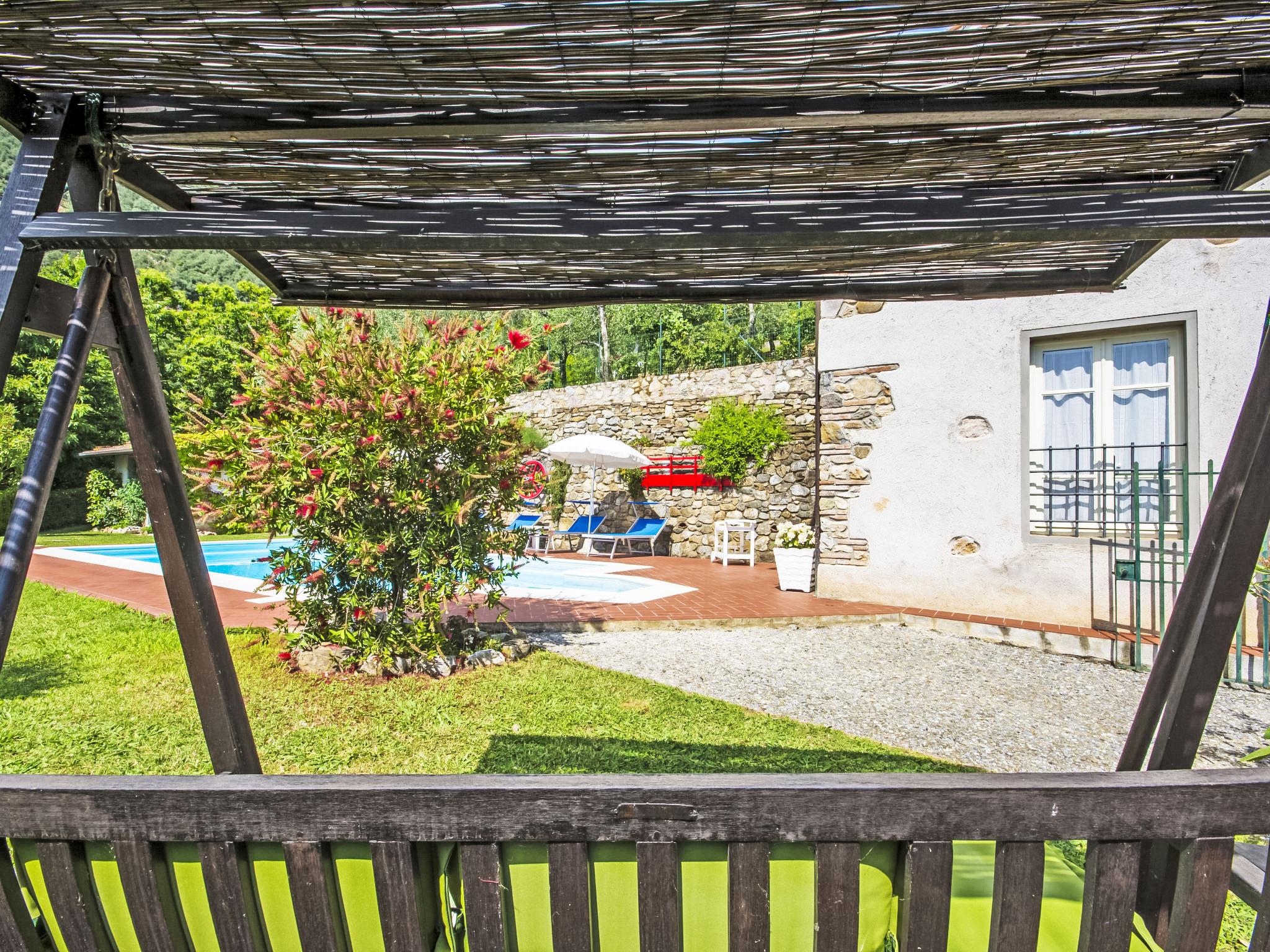 The structure we propose as a detached house is made up of two real estate units, the main house and the annex. The two units communicate with each other only from the outside. Child friendly, cosy, rustic terraced house "Casa di Nena", 300 m a.s.l.. Property composed of main house and outbuilding, in the hamlet Salapreti 3 km from the centre of Camaiore, 11 km from the centre of Viareggio, in a quiet, sunny, elevated position on top of a hill, 11 km from the sea, 11 km from the beach. Private: garden 18 m2 with lawn and trees, natural garden, swimming pool (8 x 4 m, depth 150 cm, seasonal availability: 30.Apr. - 01.Oct.). Terrace (12 m2), garden furniture, barbecue. In the house: washing machine, heating available only from 01.Nov. - 07.Apr.. Parking (for 3 cars) at the house. Grocery 4 km, supermarket 3 km, restaurant 3 km, bus stop 2 km, railway station "Viareggio" 11 km, sandy beach 11 km, public bathing area 11 km. Golf course (18 hole) 15 km, walking paths from the house 1 km. Nearby attractions: Lucca 28 km, Pisa 48 km, Firenze 109 km, Pietrasanta 15 km, Forte dei Marmi 15 km, Cinque Terre 65 km. Hiking paths: Sentieri Alpi Apuane 10 km. Please note: car recommended.