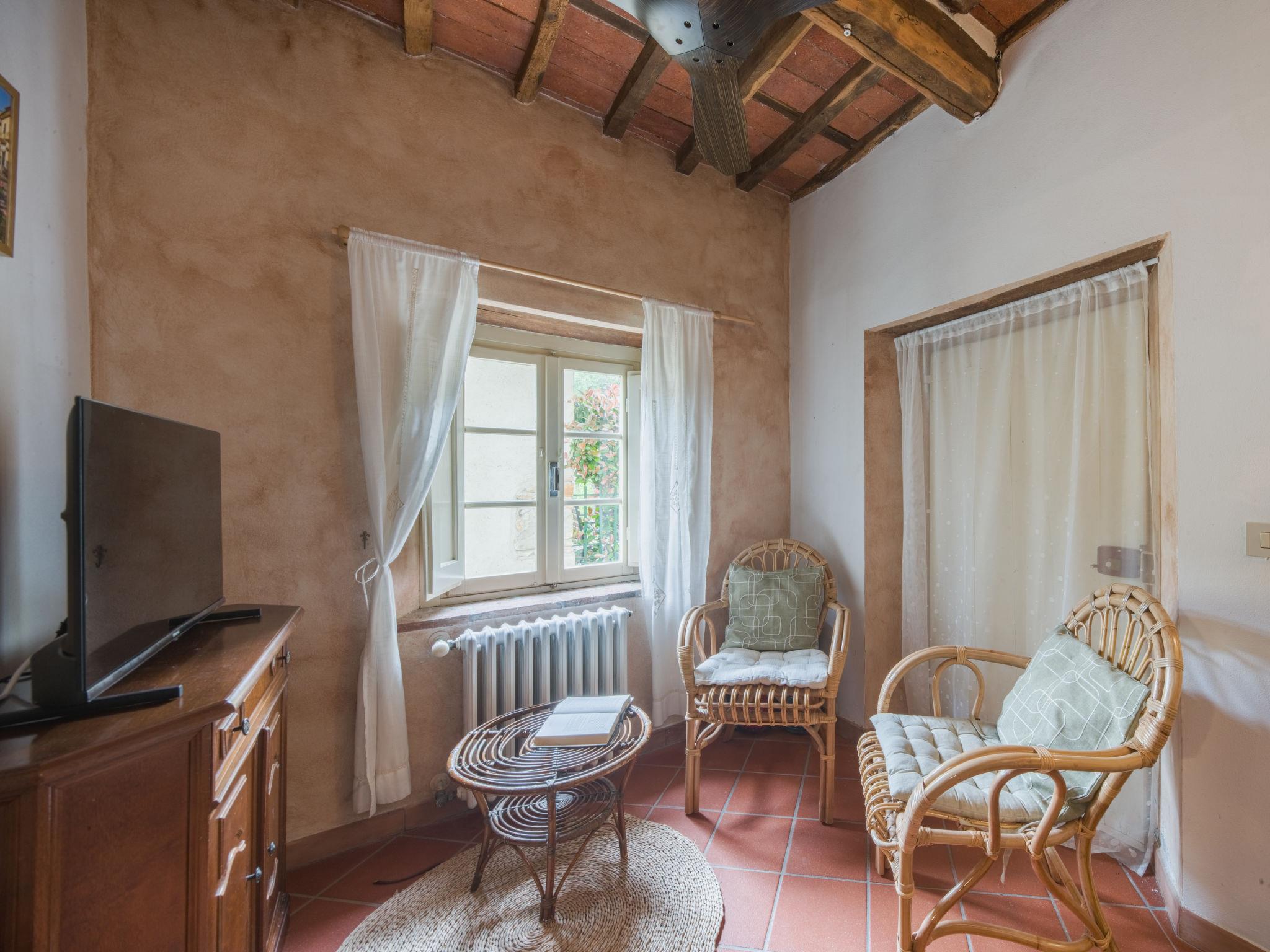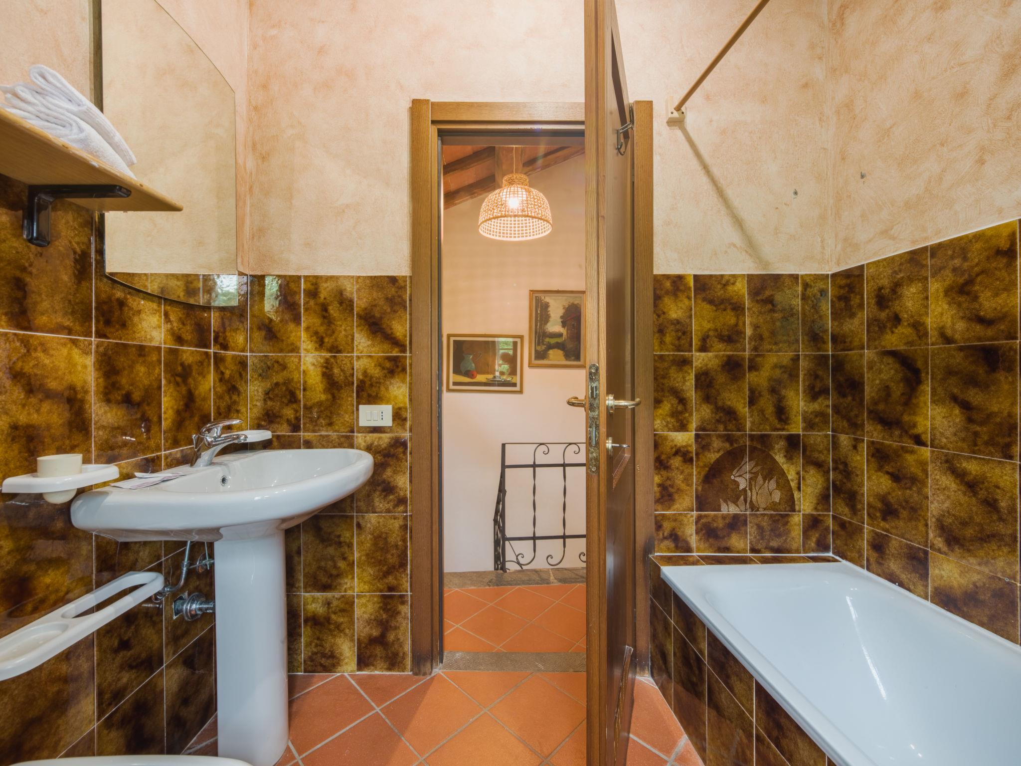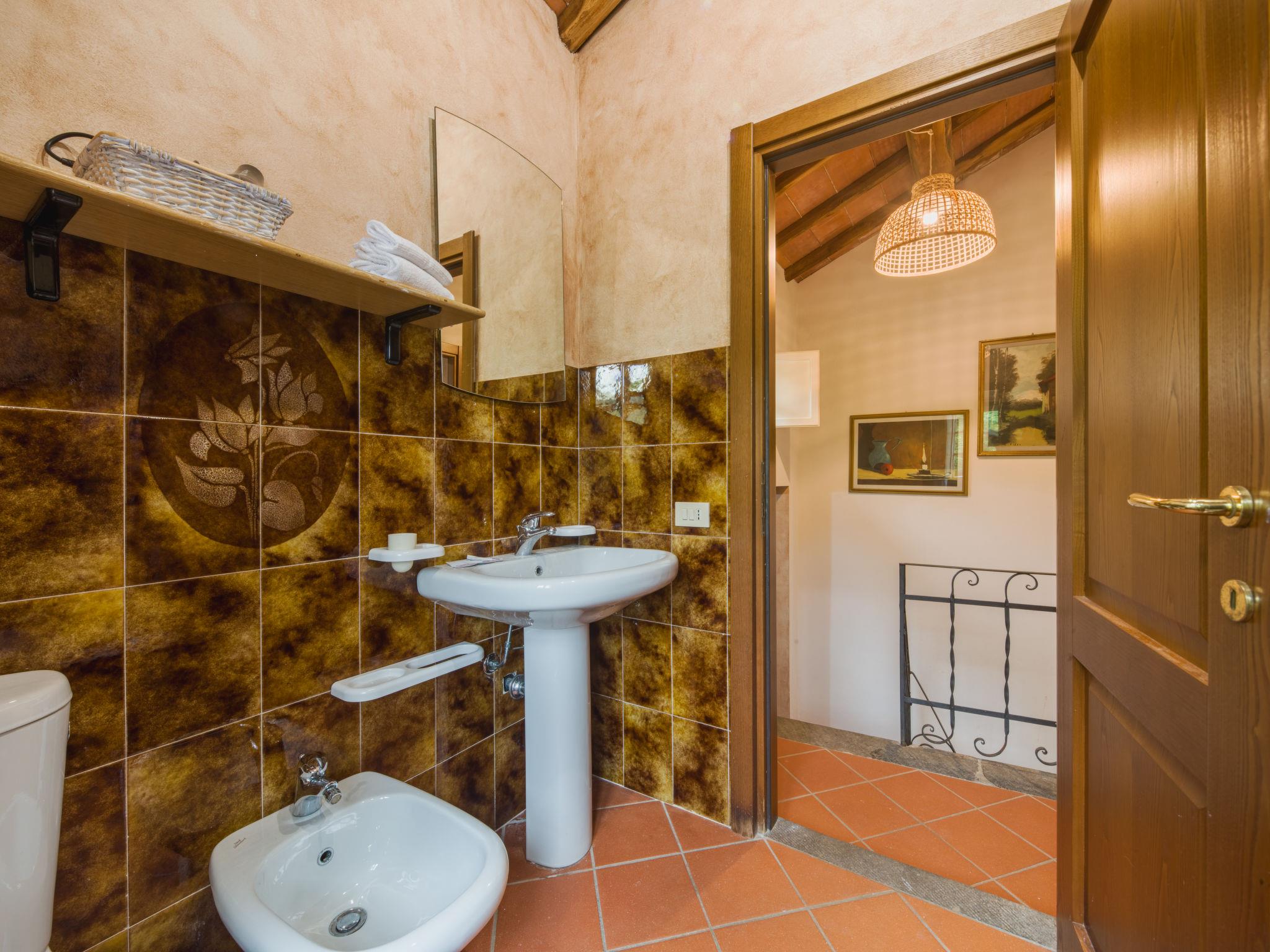 "Casa di Nena", 5-room house 80 m2 on 2 levels. Beautiful and rustic furnishings: living/dining room with open-hearth fireplace (only for decoration), TV and fan. Exit to the terrace. 1 room with 1 french bed and shower/bidet/WC. Exit to the garden, to the swimming pool. Kitchenette (oven, Gas stove, 4 gas rings, microwave, freezer) with dining table, open-hearth fireplace. Exit to the terrace. Upper floor: 1 double bedroom with fan. (exterior staircase), 1 double bedroom with fan. Exit to the balcony. Sep. WC. Gas heating. Heating available only from 01.11. to 07.04. 2nd upper floor: 1 double bedroom with fan. Bath/bidet/WC. Garden 18 m2, porch 12 m2. Terrace furniture, barbecue. Very beautiful distant view of the valley. Facilities: washing machine, iron. Internet (WiFi, free). No internal connecting door between the separated properties. The main building accommodates 4 people while the annex consists of two bedrooms (1 double and a single bedroom) and a bathroom with shower with independent access from the outside. The garden is partially fenced. IT046005C2QH9JJ6SY