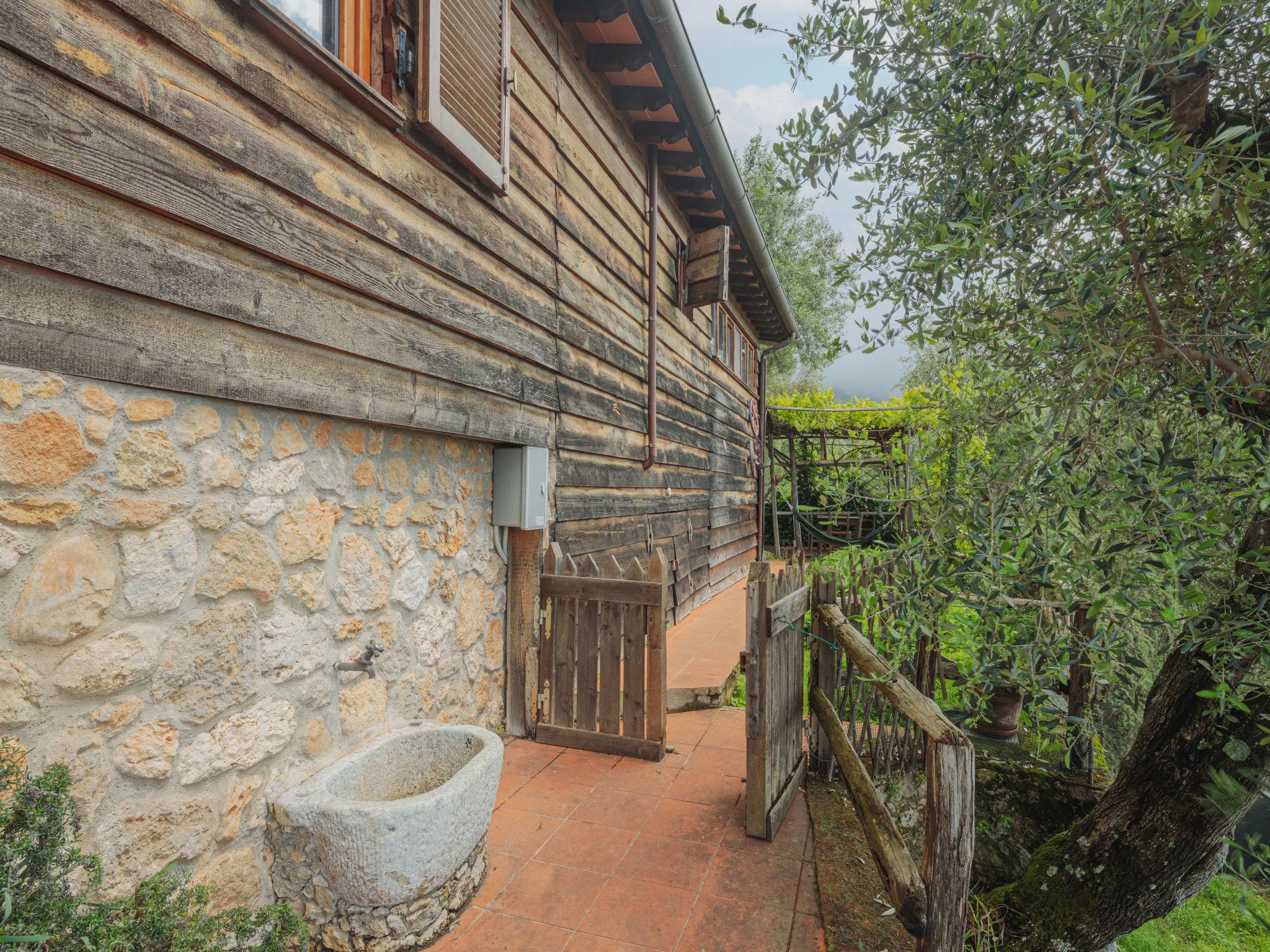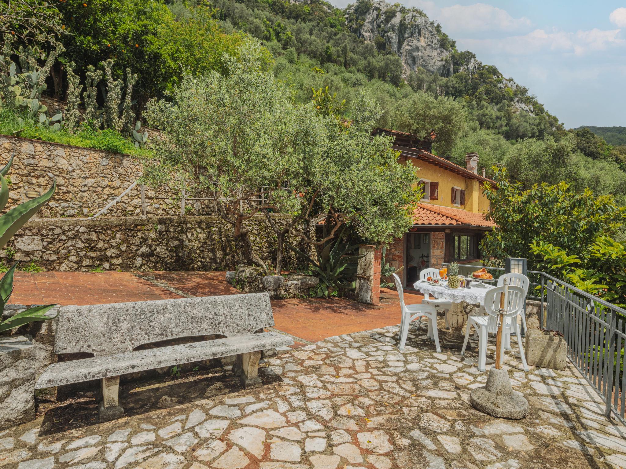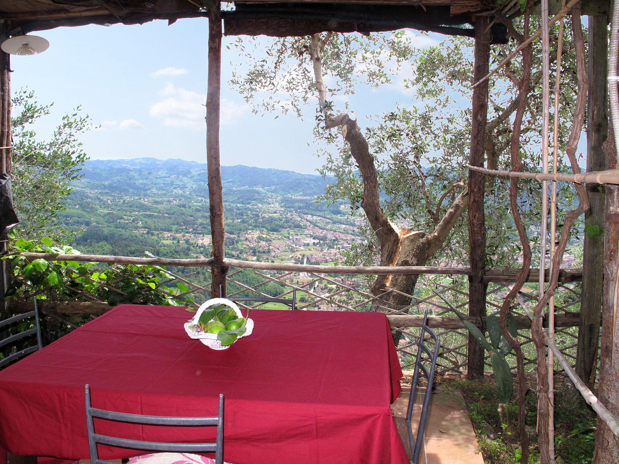 7-room house 150 m2 on 2 levels. Rustic and wooden furniture furnishings: large living room with open-hearth fireplace, dining table and satellite TV. Small, open kitchen (oven, 4 gas rings, toaster, kettle, freezer, electric coffee machine). Shower/WC. Oil heating. Upper floor: (steep stair), 1 room with 1 double bed. 1 room with 1 double bed and shower/WC. 2 rooms, each room with 2 beds (80 cm), bath/WC. (exterior staircase) mezzanine with 1 double bed (160 cm), shower/WC. Small kitchen (oven, 4 gas rings, electric coffee machine) with dining table. Oil heating (extra). Wooden floors. Large terrace roofed, patio, porch. Terrace furniture, barbecue, deck chairs, box-room. Very beautiful view of the mountains, the valley, the forest and Riviera della Versilia. Facilities: washing machine, iron, children's high chair, baby cot for up to 2 year olds. Internet (WiFi, free). Please note: non-smokers only. Maximum 2 pets/ dogs allowed. Smoke alarm, fire extinguisher. No internal connecting door between the separated properties. When there are less than the maximum number of guests staying at the property, the annex will not be available for use. When there are less than the maximum number of guests staying at the property, not all of the bedrooms will be available for use. IT046005C2L37KG2TU