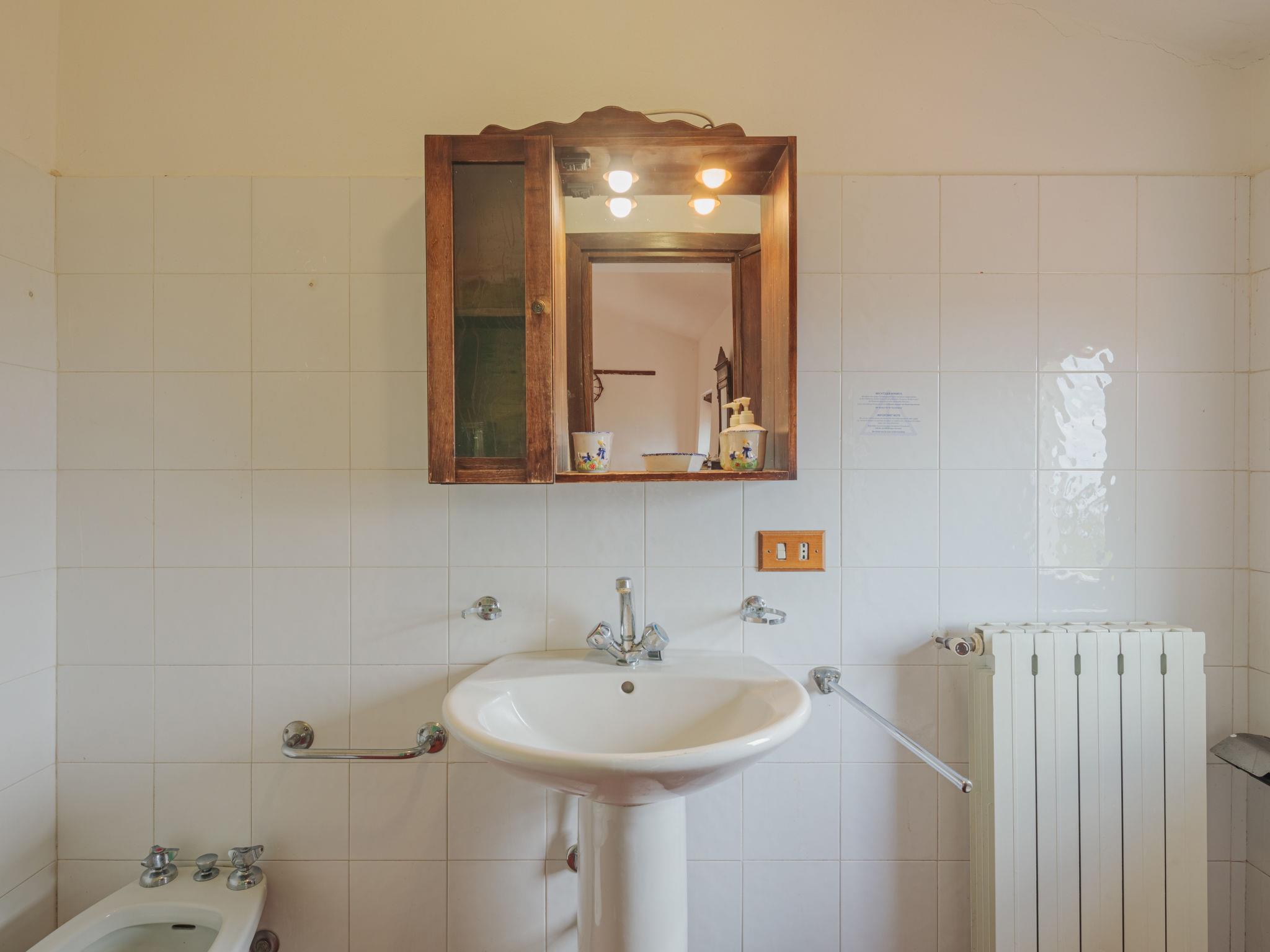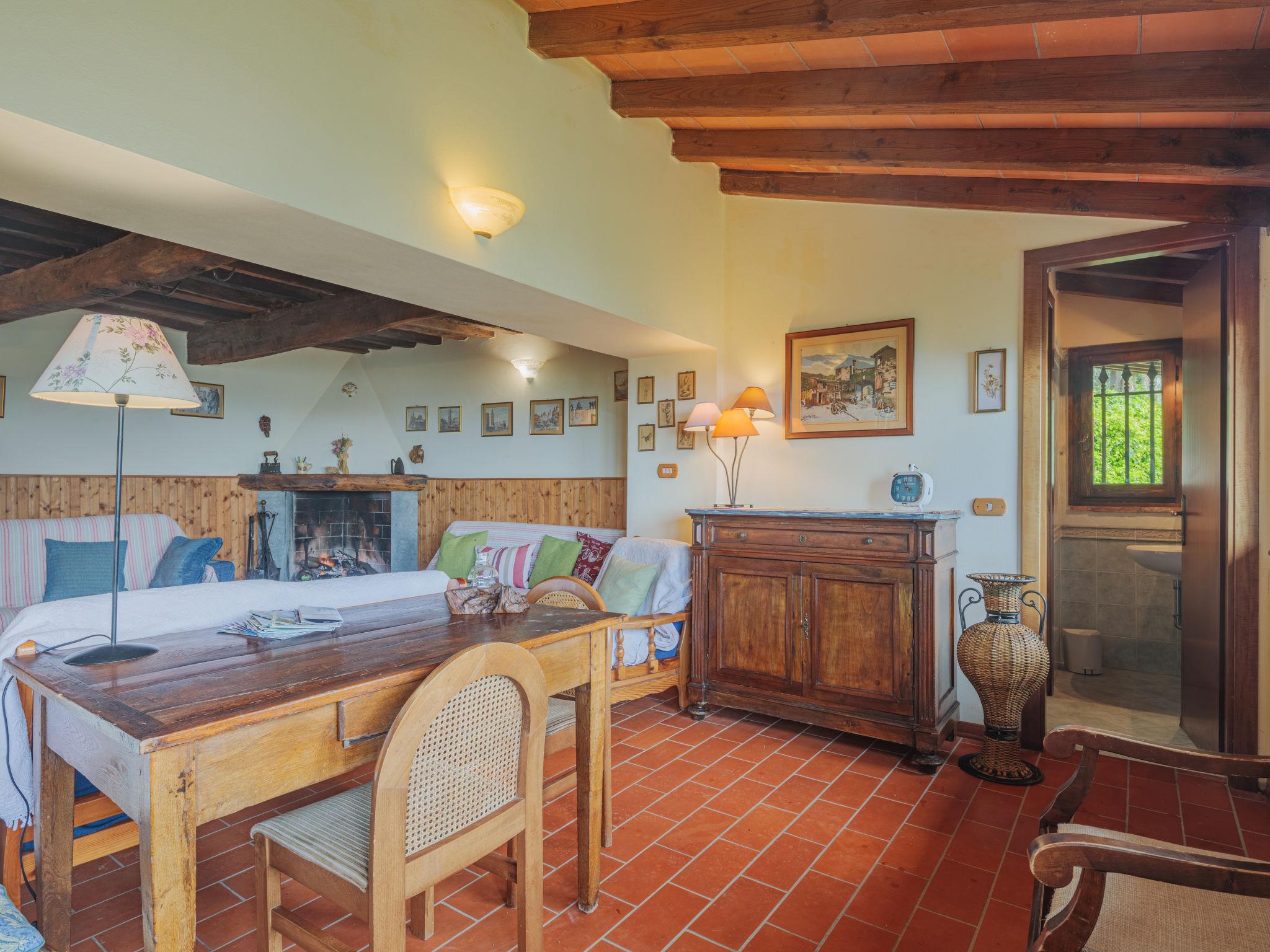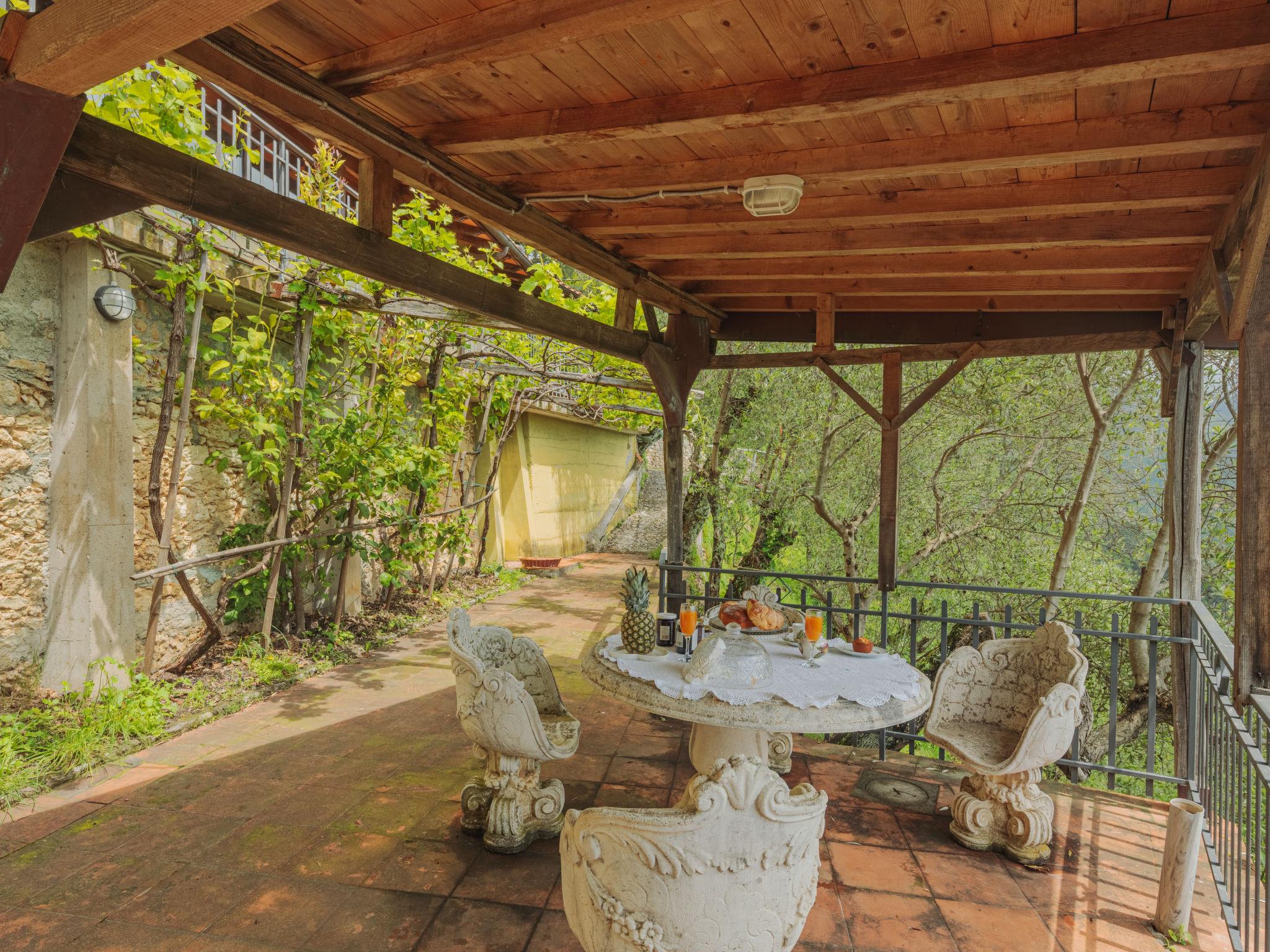 7-room house 150 m2 on 2 levels. Rustic and wooden furniture furnishings: large living room with open-hearth fireplace, dining table and satellite TV. Small, open kitchen (oven, 4 gas rings, toaster, kettle, freezer, electric coffee machine). Shower/WC. Oil heating. Upper floor: (steep stair), 1 room with 1 double bed. 1 room with 1 double bed and shower/WC. 2 rooms, each room with 2 beds (80 cm), bath/WC. (exterior staircase) mezzanine with 1 double bed (160 cm), shower/WC. Small kitchen (oven, 4 gas rings, electric coffee machine) with dining table. Oil heating (extra). Wooden floors. Large terrace roofed, patio, porch. Terrace furniture, barbecue, deck chairs, box-room. Very beautiful view of the mountains, the valley, the forest and Riviera della Versilia. Facilities: washing machine, iron, children's high chair, baby cot for up to 2 year olds. Internet (WiFi, free). Please note: non-smokers only. Maximum 2 pets/ dogs allowed. Smoke alarm, fire extinguisher. No internal connecting door between the separated properties. When there are less than the maximum number of guests staying at the property, the annex will not be available for use. When there are less than the maximum number of guests staying at the property, not all of the bedrooms will be available for use. IT046005C2L37KG2TU