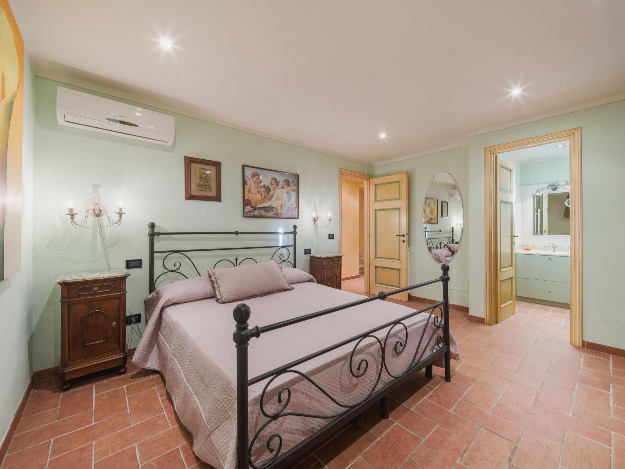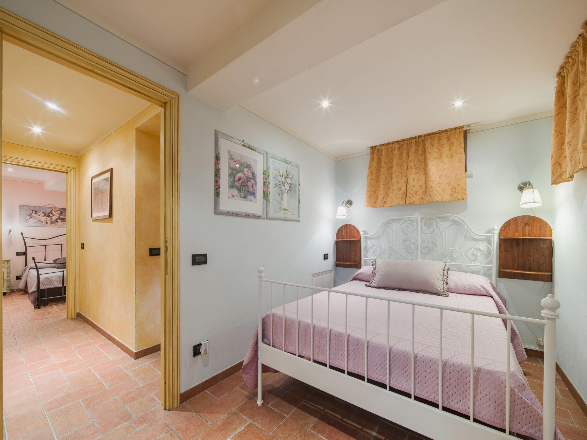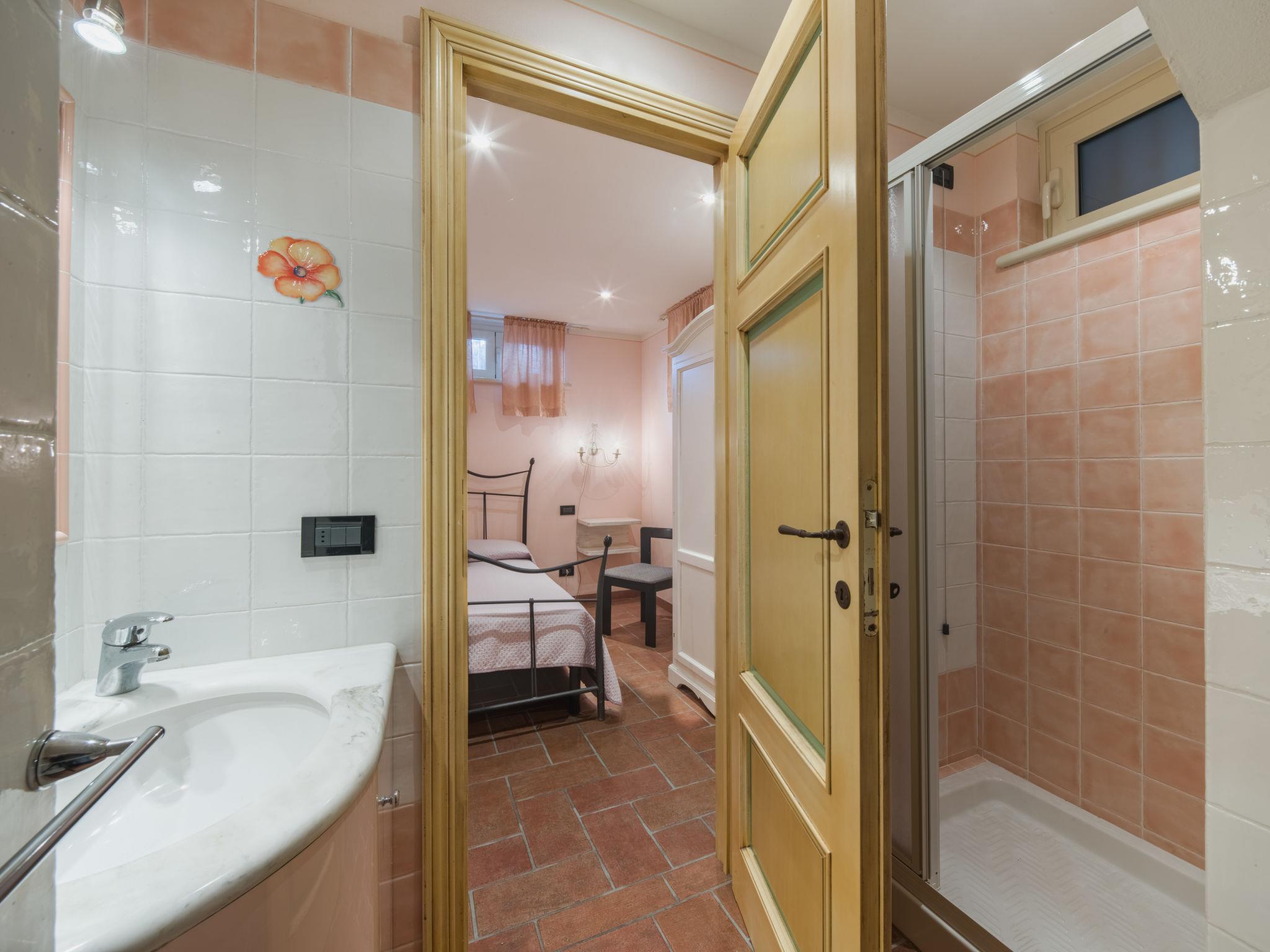 4-room house 95 m2 on 2 levels, on the upper ground floor. Beautiful and tasteful furnishings: living/dining room with dining table and satellite TV. Exit to the garden. Small, open kitchen (oven, dishwasher, 4 gas rings, toaster, kettle, microwave, freezer, electric coffee machine). Shower/WC. Gas heating (extra), air-conditioning (extra). On the lower ground floor: 2 rooms, each room with 1 french bed (160 cm), shower/WC. 1 small room with 1 french bed (160 cm), shower/bidet/WC. Terrace 25 m2, roofed. Terrace furniture, barbecue, deck chairs, box-room. Beautiful view of the countryside and the forest. Facilities: washing machine, children's high chair, baby cot for up to 2 year olds (extra), hair dryer. Internet (WiFi, free). Parking (fenced 2 cars) at the house. Please note: maximum 2 pets/ dogs allowed. Smoke alarm, fire extinguisher. IT046005C2PUGLPHE6