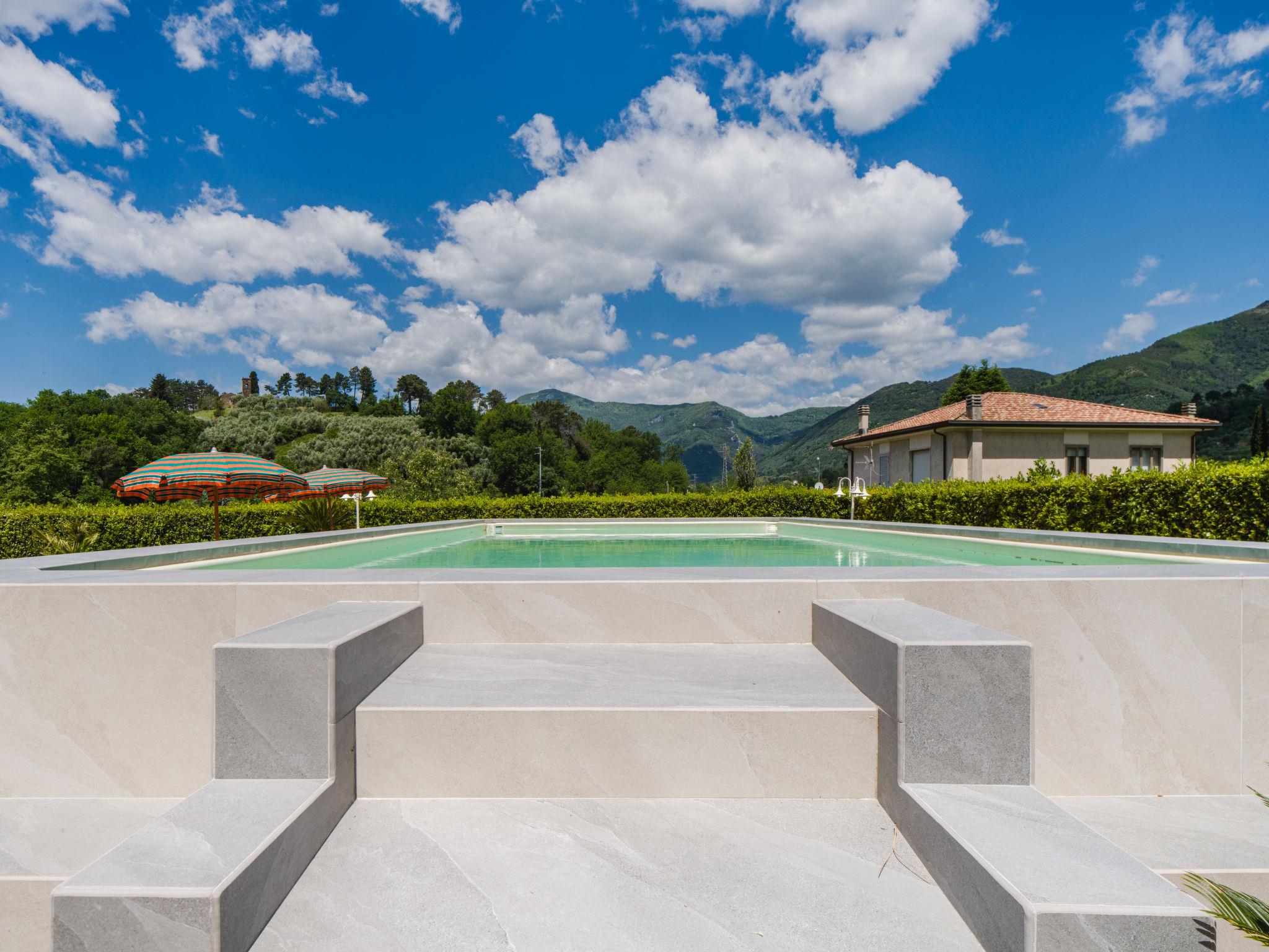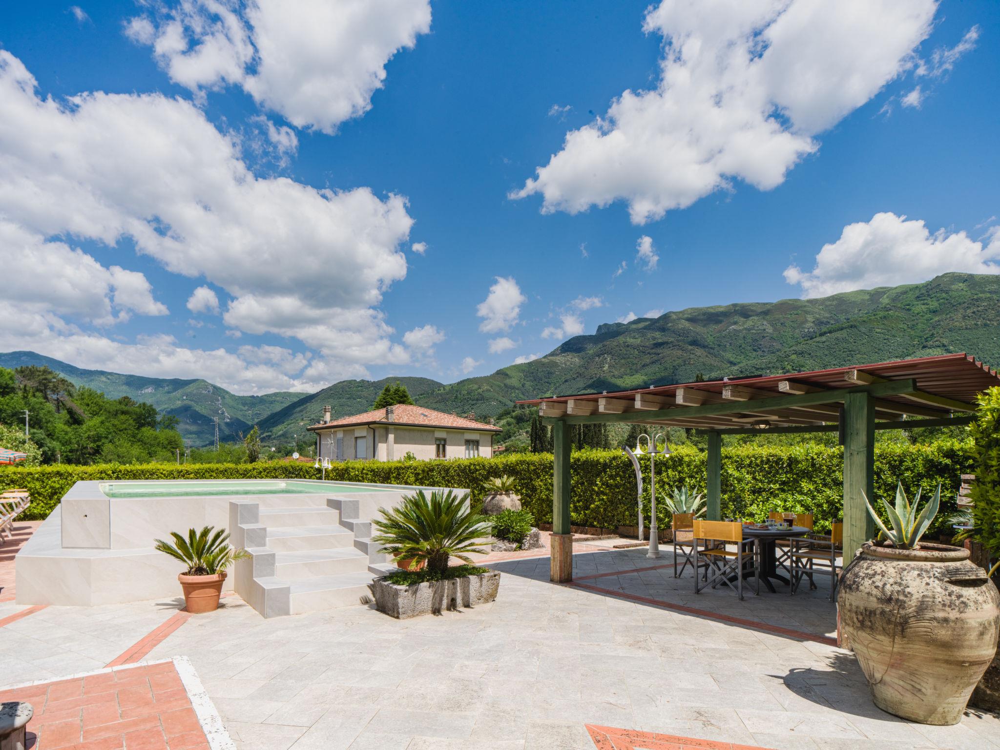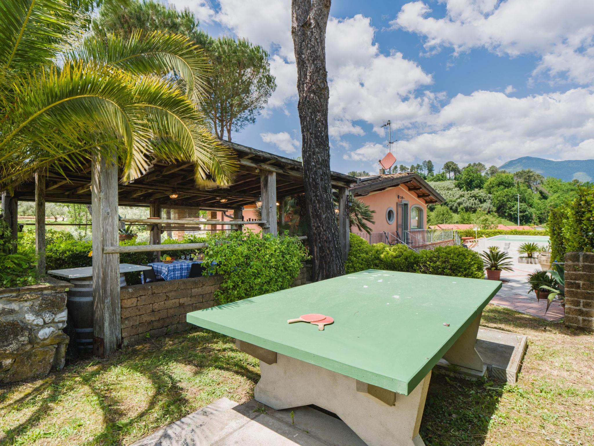 Pontemazzori 4 km from Camaiore: Beautiful cottage "Versilia", renovated, surrounded by trees. In the district of Pontemazzori 4 km from the centre of Camaiore, 14 km from the centre of Viareggio, 39 km from the centre of Pisa, in an elevated position, 12 km from the sea, in the countryside. Private: property 2'000 m2, well-kept garden with lawn and wildlife garden, swimming pool (above ground) (10 x 5 m, depth 120 cm, seasonal availability: 06.May. - 30.Sep.). Table tennis, pool maintenance by the owner/gardener. In the house: central heating system, heating to be paid on the spot (28.Mar. - 30.Oct.), heating available only from 31.Oct. - 27.Mar.. Parking on the premises. Grocery 2 km, restaurant 4 km, bus stop 3 km, railway station "Viareggio" 14 km, sandy beach "Lido di Camaiore" 12 km. Nearby attractions: Forte dei Marmi 20 km, Lucca 38 km, Carrara (cave marmo Fantiscritti) 49 km, Collodi (Pinocchio Park) 56 km, Riomaggiore (5 Terre) 81 km, Firenze 124 km. Well-known lakes can easily be reached: Torre del Lago 24 km. Hiking paths: Grotta all´Onda Casoli 17 km. Please note: car recommended. Animals in the neighbourhood. new swimming pool.