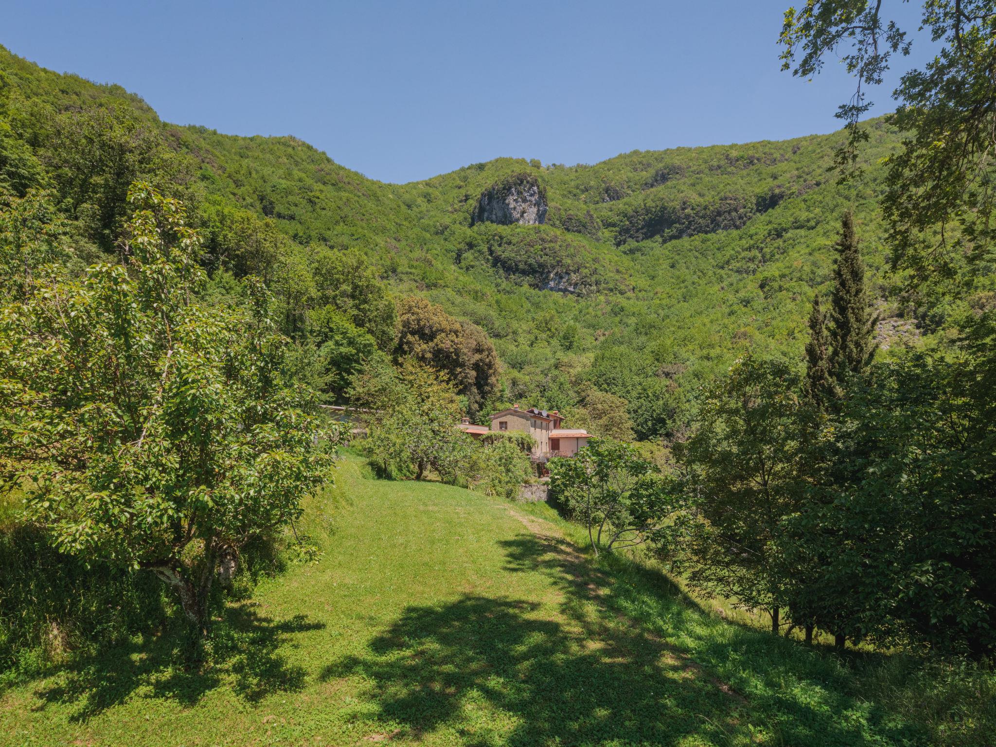 Cosy country house "Paradiso", surrounded by trees. 2 apartments in the property. Above Casoli (2.5 km) 8.5 km from the centre of Camaiore, 19 km from the centre of Viareggio, 44 km from the centre of Pisa, on a slope, 17 km from the sea, 17 km from the beach, in the countryside. For shared use: terraced garden, 2 ha (not fenced) with trees, natural garden, meadow, orchard. In the house: central heating system, heating to be paid on the spot (28.Mar. - 30.Oct.), heating available only from 31.Oct. - 27.Mar.. 700 m long steep, narrow motor access. Parking on the premises. Grocery 2.5 km, restaurant 800 m, bar 2.5 km, bus stop 2.5 km, railway station "Viareggio" 19 km, sandy beach "Lido di Camaiore" 17 km. Nearby attractions: Pietrasanta 21 km, Forte dei Marmi 25 km, Lucca 42 km, Riomaggiore (Cinque Terre) 88 km, Firenze 131 km, Carrara cave Fantiscritti 64 km. Well-known lakes can easily be reached: Torre del Lago 29 km, Lago di Massaciuccoli 32 km. Hiking paths: Grotta dell´Onda 500 m, Antro del Corchia Levigliani 36 km. Please note: car recommended.