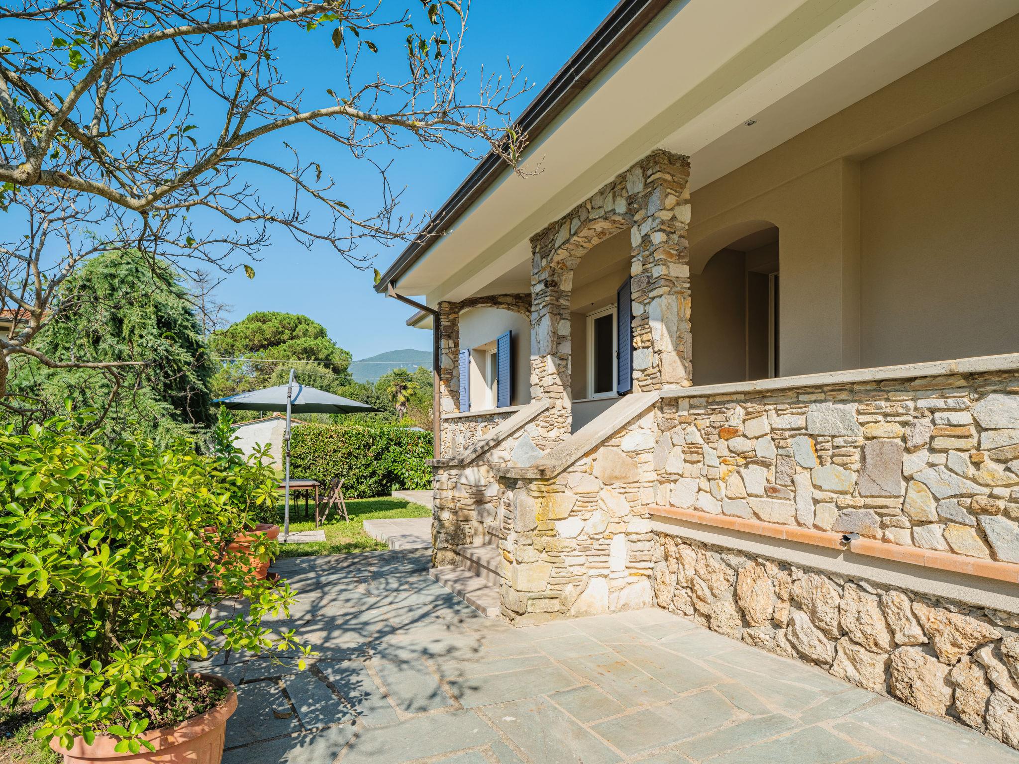 Single-family house "Giardino del Sole", renovated in 2023. 9.4 km from the centre of Lido di Camaiore, on the outskirts, 1 km from the centre of Camaiore, 13.1 km from the centre of Viareggio, 9.4 km from the sea, 9.4 km from the beach, in the countryside. Private: natural state property 1'000 m2 (fenced) with wildlife garden. In the house: central heating system, heating to be paid on the spot (20.Mar. - 30.Oct.), heating available only from 31.Oct. - 19.Mar.. Parking on the premises. Grocery 650 m, supermarket, restaurant 1 km, bus stop 400 m, railway station "Viareggio" 11.8 km, sandy beach "Lido di Camaiore" 9.4 km. Nearby attractions: Forte dei Marmi 17 km, Pietrasanta 10 km, Lucca 25 km, Pisa 33 km, Carrara Cave Fantiscritti 46 km, Riomaggiore 5 Terre 79 km. Well-known lakes can easily be reached: Torre del Lago 18 km, Lago di Massaciuccoli 27 km. Hiking paths: Antro del Corchia Levigliani 29 m, Grotta all´Onda Casoli 12 km. The owner does not accept any youth groups. The property is under video surveillance, the cameras are deactivated when guests are on site.