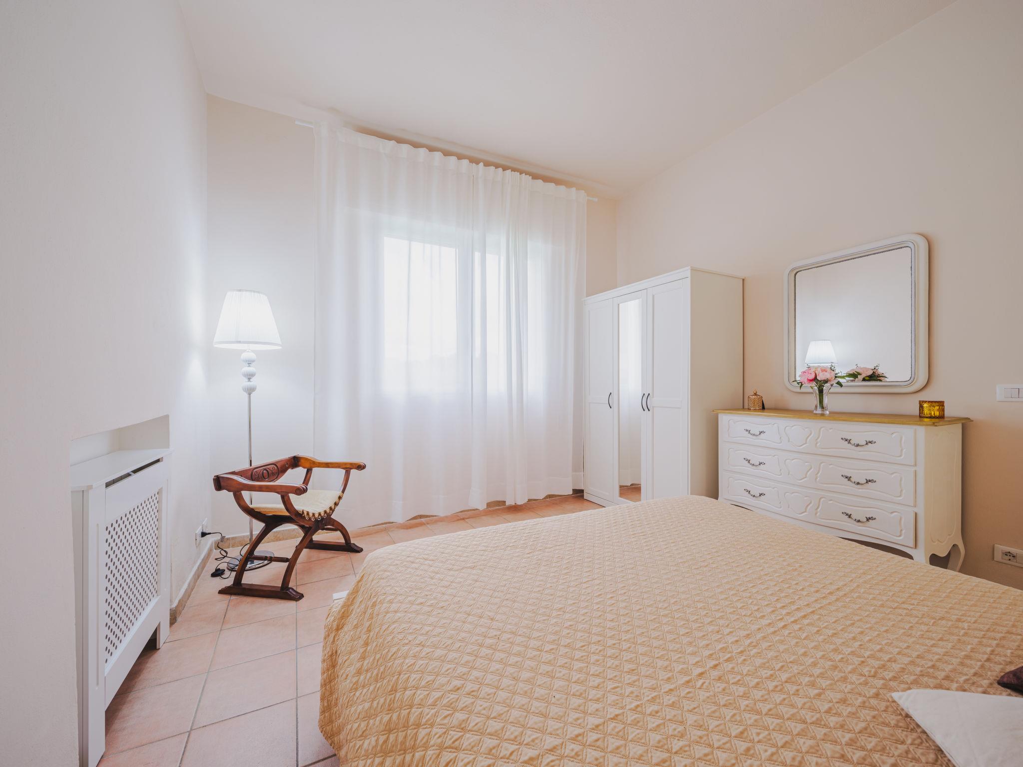 4-room apartment 110 m2, on the ground floor. Renovated in 2024, beautiful and cosy furnishings: open large living/dining room with dining table, TV, flat screen and air conditioning. Exit to the terrace. 2 double bedrooms. 1 room with 2 beds. Open kitchen (oven, dishwasher, 5 gas rings, toaster, kettle, microwave, electric coffee machine). 2 showers/bidet/WC. Gas heating (extra). Terrace 28 m2 partly roofed, garden 370 m2. Terrace furniture. Facilities: iron, mosquito net, children's high chair, baby cot for up to 2 year olds, hair dryer. Internet (WiFi). Parking (fenced 2 cars). Please note: non-smokers only. Smoke alarm, fire extinguisher. IT046005C29GABB7PT