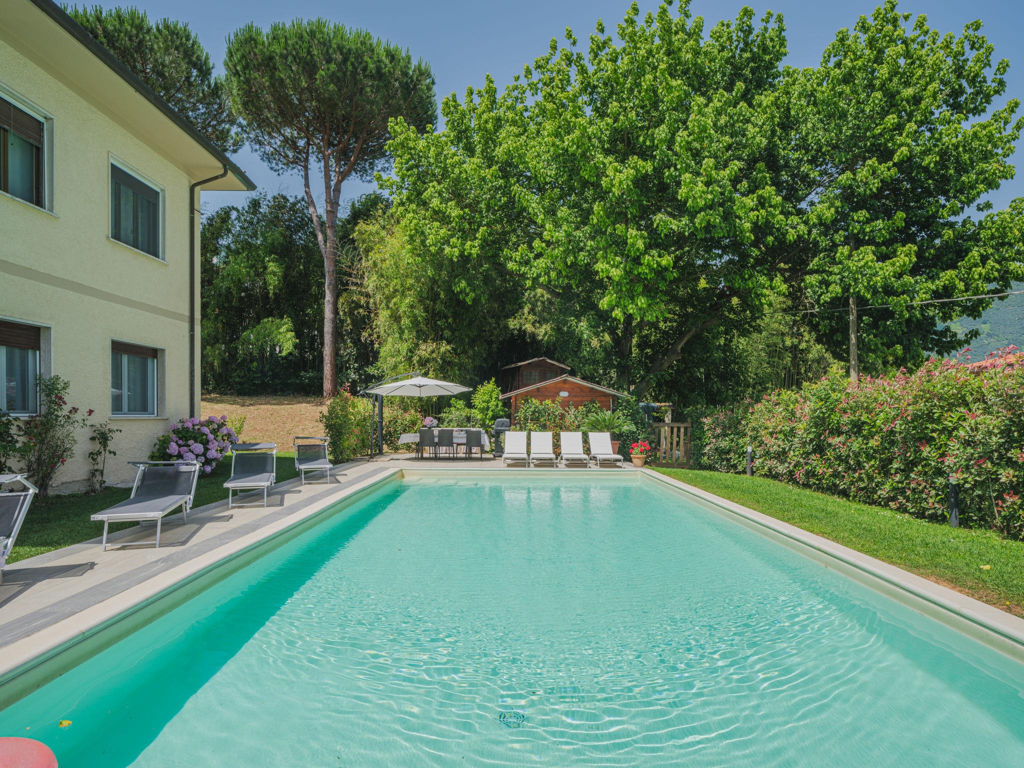 2-family house "Gerry House", renovated in 2024, surrounded by fields. 2 apartments in the property. 2.4 km from the centre of Camaiore, on the outskirts, 8.5 km from the centre of Lido di Camaiore, 26 km from the centre of Lucca, 8.5 km from the sea, 8.5 km from the beach. For shared use: swimming pool (12 x 6 m, depth 130 cm, seasonal availability: 04.May. - 04.Oct.). Outdoor shower, garden furniture, barbecue, pool maintenance by the owner/gardener. Private: property with lawn and wildlife garden, natural garden. In the house: central heating system, washing machine (for shared use), heating to be paid on the spot (20.Mar. - 30.Oct.), heating available only from 31.Oct. - 19.Mar.. Parking at the house. Grocery 1.3 km, supermarket 1.4 km, restaurant 1.6 km, bar 950 m, bakery 750 m, bicycle rental 11 km, bus stop 750 m, railway station "Viareggio" 110 m, sandy beach "Lido di Camaiore" 8.5 km. Nearby attractions: Pietrasanta 9 km, Forte dei Marmi 16 km, Marina di Pietrasanta 12 km, Pisa 32 km, Carrara Cave Fantiscritti 45 km, Riomaggiore 5 Terre 78 km. Well-known lakes can easily be reached: Torre del Lago 17 km, Lago di Massaciuccoli 24 km. Hiking paths: Antro del Corchia Levigliani 28 km, Grotta all´Onda Casoli 12 km. Please note: car recommended. The owner does not accept any youth groups. Additional accommodations can be booked. Neighbourhood highly sensitive to noise. Quietness and good behaviour expected.