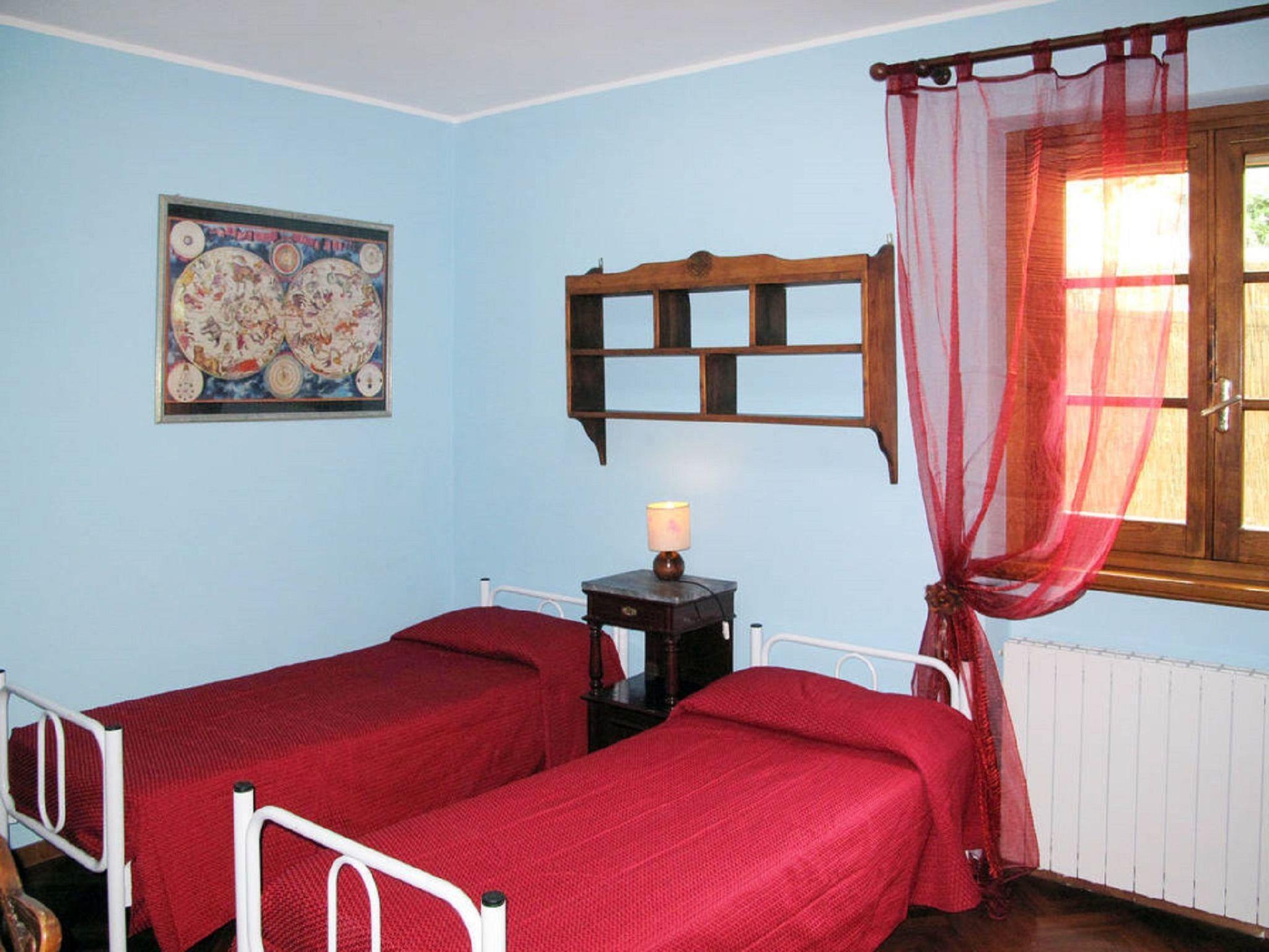 Furnishings: Attractive, rustic furnishings with lots of wood. Cotto and parquet floors. Partly wooden beamed ceilings. Satellite TV. Internet access (WLAN, included). No heating facilities. The living area of approx. 100 m² is on the ground floor. Living room with sofa bed, fireplace (decoration only) and dining area, through open brick archway to the kitchen (hobs, microwave, fridge, coffee machine). Bedroom with double bed (1.60 m wide) and balcony exit. Double bedroom (beds 0.80 m wide, can be joined together). Bathroom with shower/WC.