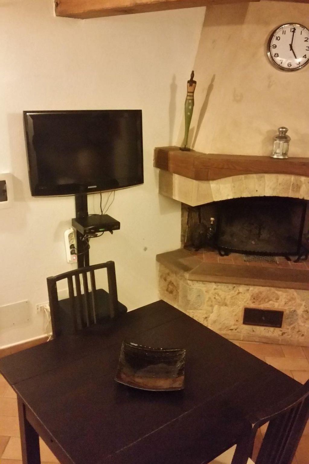 Inside the holiday home you will find a charming and well thought-out interior. The entrance area, also known as the "taverna", opens onto the terrace and includes a sofa bed for two people. An open-plan kitchen and a dining room with a fireplace make for cosy hours. The bathroom with shower and a satellite TV round off the offer. A cot is available for families. A steep staircase leads to the upper floor, where there is a bedroom with a double bed and a single bed. A USB key provides internet access - so you can stay connected even on holiday.