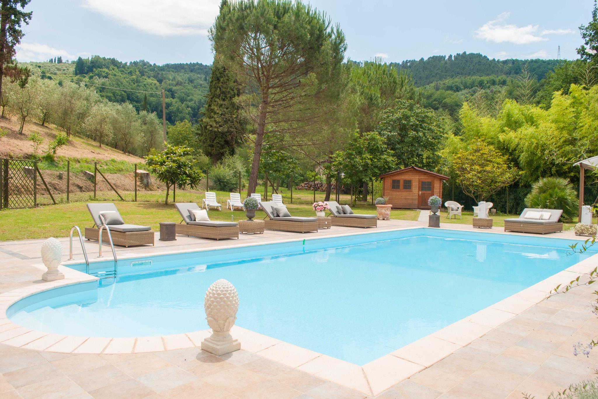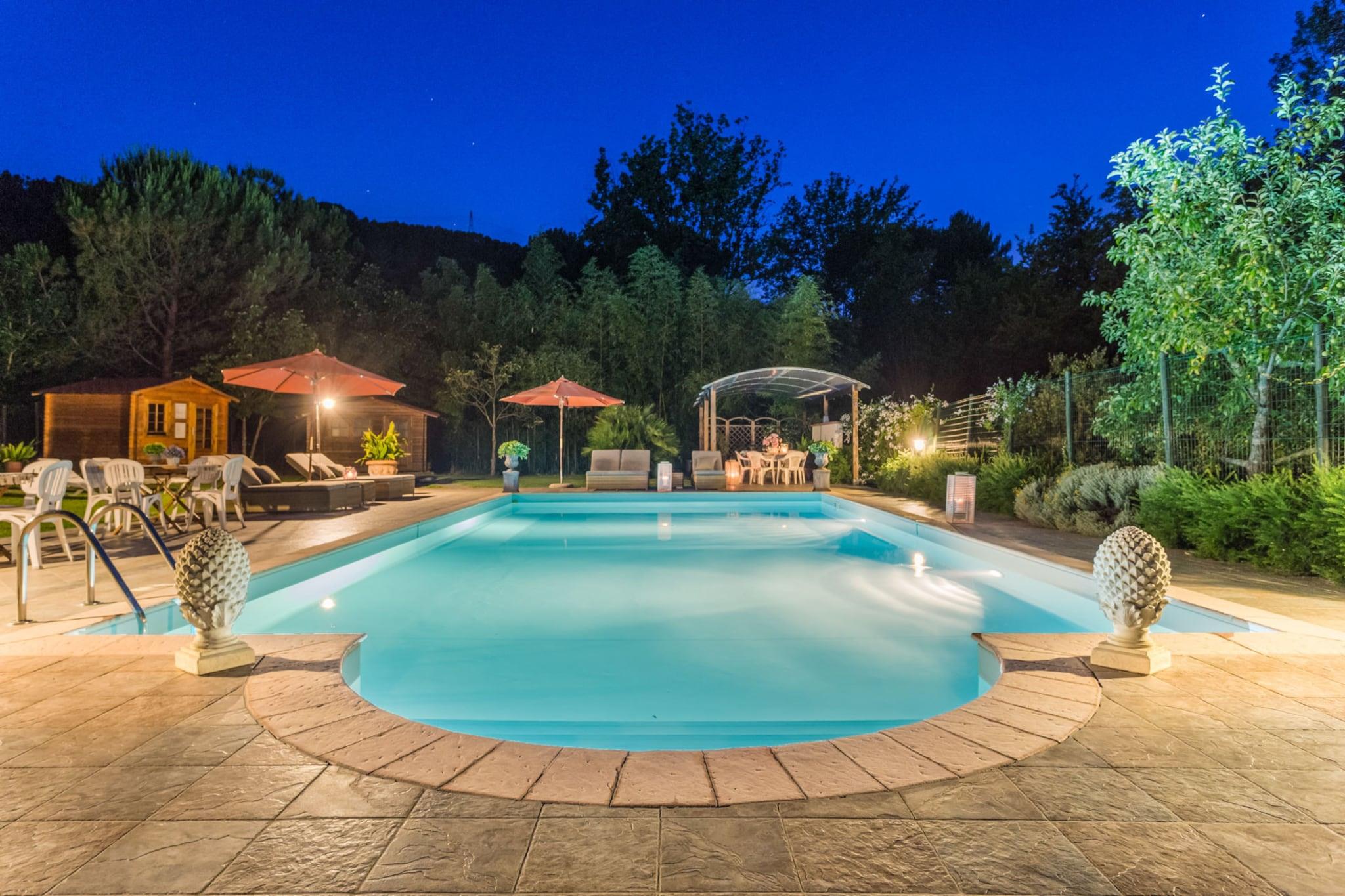 Træd ind i en historiebogsindstilling på Villa Bicocche, en drømmende oase beliggende i den gyldne trekant Lucca, Pisa og de fantastiske toscanske strande. Denne fortryllende villa, der engang var en gammel adelsfamilies ejendom, legemliggør århundreders toscanske historie, der problemfrit blander tradition, elegance og moderne luksus. For nylig renoveret, både stuehuset og ejendommen er blevet omhyggeligt restaureret, med en ny have og en klorfri saltvandsswimmingpool, der forstærker det frodige landskab omgivet af gamle skove. Fordybet i den fredfyldte skønhed i det toscanske landskab tilbyder Villa Bicocche et roligt tilflugtssted uden at ofre bekvemmelighed. En charmerende vej med træer fører dig til en nærliggende middelalderlandsby, der er fejret for sine maleriske gader, dejlige pladser og udsøgte restauranter. Kun 7 km væk ligger sandstrande og familievenlige etablissementer, mens det historiske centrum af Lucca kun ligger 15-20 minutters kørsel, hvilket gør det nemt at udforske det bedste fra regionen. Villaen kan prale af luksuriøse udendørsliv, med en ekspansiv pool beliggende midt i en olivenlund, der inviterer dig til at svømme eller solbade på terrassesoldækket. Den udendørs spiseplads, komplet med en grill og komfortable siddepladser, er perfekt til muntre sammenkomster. Indvendigt har villaen originale bjælkelofter, antikke træmøbler og et fuldt udstyret køkken, der giver en harmonisk blanding af traditionel komfort og moderne praktisk. Med pålidelig gratis WiFi og værelser med aircondition imødekommer Villa Bicocche ethvert behov, hvilket gør det til et ideelt tilflugtssted for familier og venner.