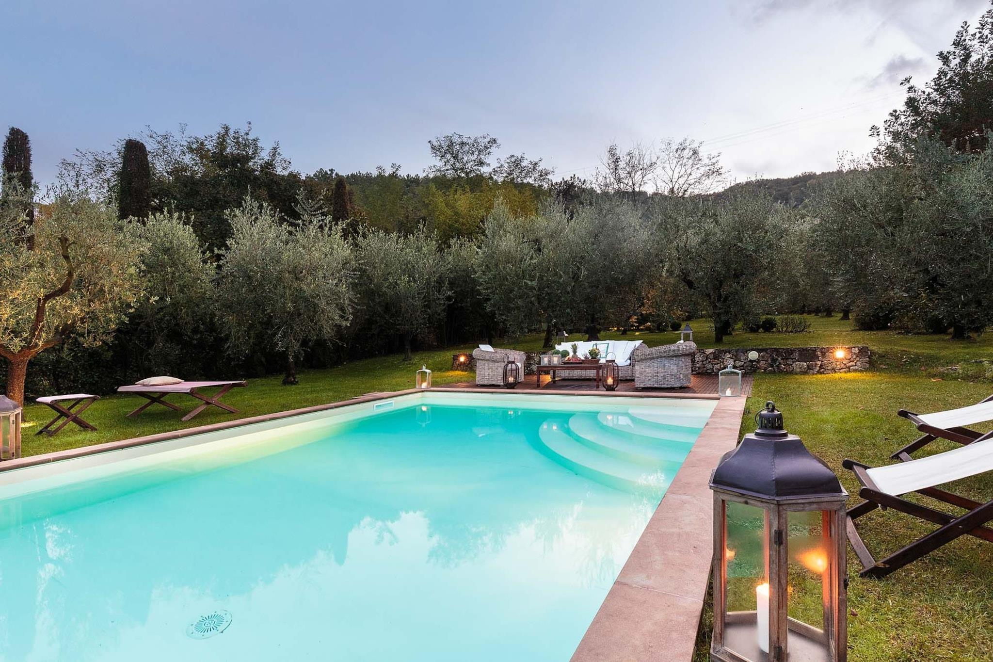 Denne luksuriøse feriebolig i Camaiore tilbyder en drømmeagtig flugt i det italienske landskab, bekvemt beliggende mellem Lucca og Toscanas fantastiske strande. Med det hårde arbejde allerede gjort, kan du nyde traditionel bondegårdscharme sammen med moderne bekvemmeligheder. Slap af i de private haver med udsigt over bølgende bakker eller udforsk de nærliggende Lucca, Pisa, Cinque Terre og Firenze. En naturskøn stenvej fører til dette romantiske tilflugtssted, hvor du finder en betagende udsigt fra terrassen og pergolaen. Haverne er et roligt fristed med en privat pool og faciliteter til udendørs grill og brændefyret pizza. Villaen kombinerer klassiske elementer, som tegltage og bjælkelofter, med moderne møbler. To hyggelige opholdsområder med bløde sofaer inviterer dig til at slappe af, mens spisebordet har plads til op til ti gæster, og et skyggefuldt morgenmadsbord åbner ud til et veludstyret køkken. Ejendommen omfatter tre komfortable soveværelser: en master suite ovenpå med en kingsize-seng og to enkeltsenge, hver med private badeværelser; og to soveværelser i stueetagen, hver med en kingsize-seng og eget badeværelse. Med aircondition, vaskemaskine, satellit-tv med internationale kanaler og pålidelig WiFi er alle bekvemmeligheder lige ved hånden. Denne fortryllende villa ligger kun en kort køretur fra Lido di Camaiore, Forte dei Marmi og Viareggio og fungerer også som en perfekt base for dagsture til Pisa, Firenze og den historiske charme i Lucca, hvilket sikrer en uforglemmelig italiensk ferie. Bemærk: Turistskat skal betales på ejendommen.