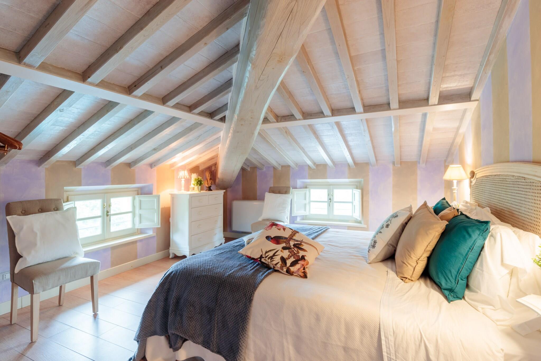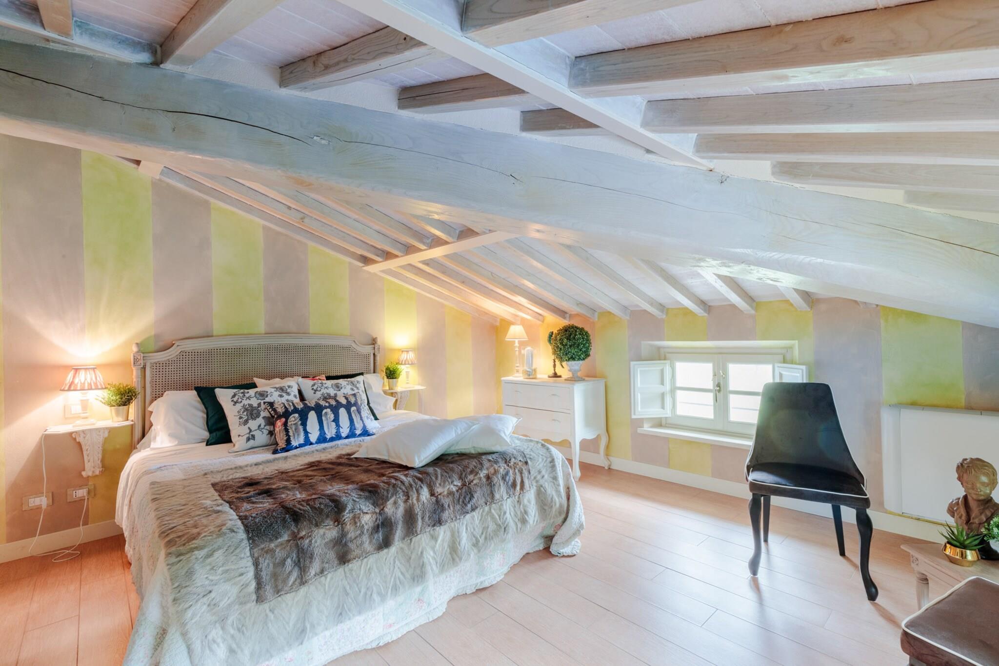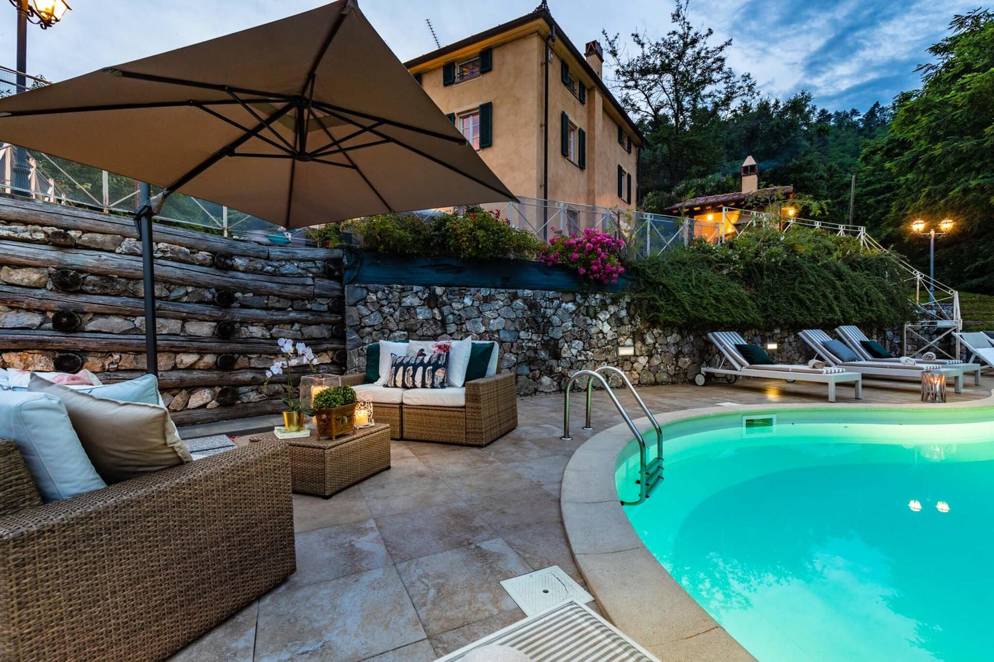 Dette fortryllende bondehus fra det 17. århundrede nær Fibbialla tilbyder et fredeligt tilflugtssted i det toscanske landskab, hvor solen varmer stenmurene og nærer de omkringliggende olivenlunde og økologiske vinmarker. Den historiske Via Francigena, en berømt pilgrimsrute, løber i nærheden og inviterer vandrere på spirituelle rejser. Gæsterne kan udforske duftende haver, nyde friske morbær og figner og opdage den skjulte by Lucca, der ligger i dalen nedenfor. Den har et professionelt køkken, der er ideelt for kulinariske entusiaster, komplet med en brændefyret pizzaovn og grill til udendørs spisning. En forfriskende swimmingpool og en panoramaterrasse giver perfekte steder at nyde lokale vine ved solnedgang. Villaen har bevaret sin charmerende arkitektur fra det 17. århundrede med bjælkelofter og en elegant pejs og er blevet fuldstændig renoveret til moderne komfort. Den indbydende stue tilbyder bløde sofaer, mens den rummelige spiseplads ved siden af det veludstyrede køkken indbyder til familiesammenkomster. Indkvarteringen omfatter fire soveværelser med eget badeværelse på første sal og to soveværelser med kingsize-seng forbundet med soveværelser med to enkeltsenge på anden sal, hvilket sikrer rigelig plads til gæsterne. Forbedr din toscanske oplevelse ved at tage madlavningskurser, der bruger friske råvarer fra haven, eller udforske lokale vinmarker på en vintur. Pulserende festivaler i nærliggende landsbyer fejrer alt fra vin til bruschetta, hvilket bidrager til områdets kulturelle rigdom. Besøgende kan nemt komme til middelalderbyerne Pisa, Montecatini Terme og UNESCOs verdensarvssteder som Cinque Terre for dagsture, mens sandstrandene i Viareggio, Forte dei Marmi og Lido di Camaiore kun ligger 20 minutter væk, hvilket gør det til en ideel destination for afslapning og udforskning. Bemærk: Turistskat skal betales på ejendommen.