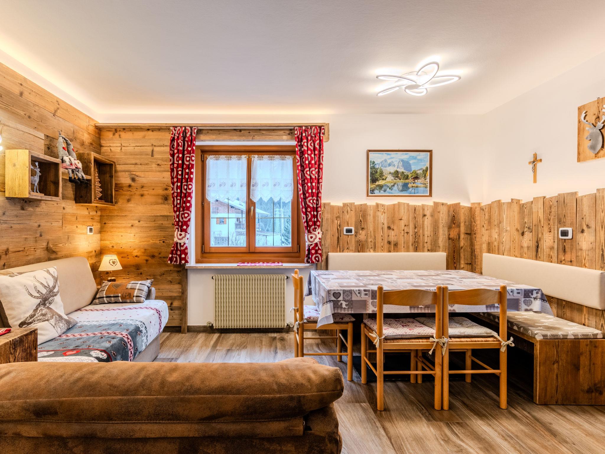 Cosy, rustic 3-family house "Marco". 3 apartments in the property. In the centre of Campestrin, excellent location: right in the centre but still quiet, 50 m from the edge of the forest, 3 km from the skiing area, 300 m from the river. In the house: storage room for bicycles, storage room for skis. Linen change weekly (suppl. charge extra). Towel change weekly (suppl. charge extra). Room cleaning weekly on request (extra). Parking at the house, public parking 50 m on the road. Grocery 1.4 km, supermarket 1.4 km, restaurant 50 m, bar 40 m, pub garden 50 m, 1 minute walk to the centre, bus stop 50 m. Walking paths from the house 100 m, cycle lane 300 m, gondola lift 3 km, skisport facilities 3 km, ski rental 100 m, ski bus stop 50 m, ski school 3 km, children's ski school 3 km. Nearby attractions: Funivia Col Rodella Campitello 3 km, Campitello di Fassa 2.5 km, Cabinovia Buffaure 6 km, Canazei 5 km, Stadio del Salto - Predazzo 20 km. Well-known ski regions can easily be reached: Catinaccio, Alba Ciampac, Sella Ronda. Well-known lakes can easily be reached: Lago D'Antermoia 11 km, Lago di Carezza 19 km. Hiking paths: Rifugio Vajolet 10 km, Piz Boe 18 km. Neighbourhood highly sensitive to noise. Quietness and good behaviour expected.