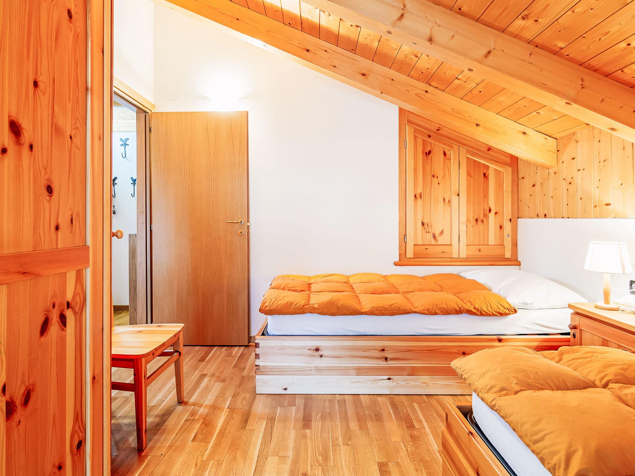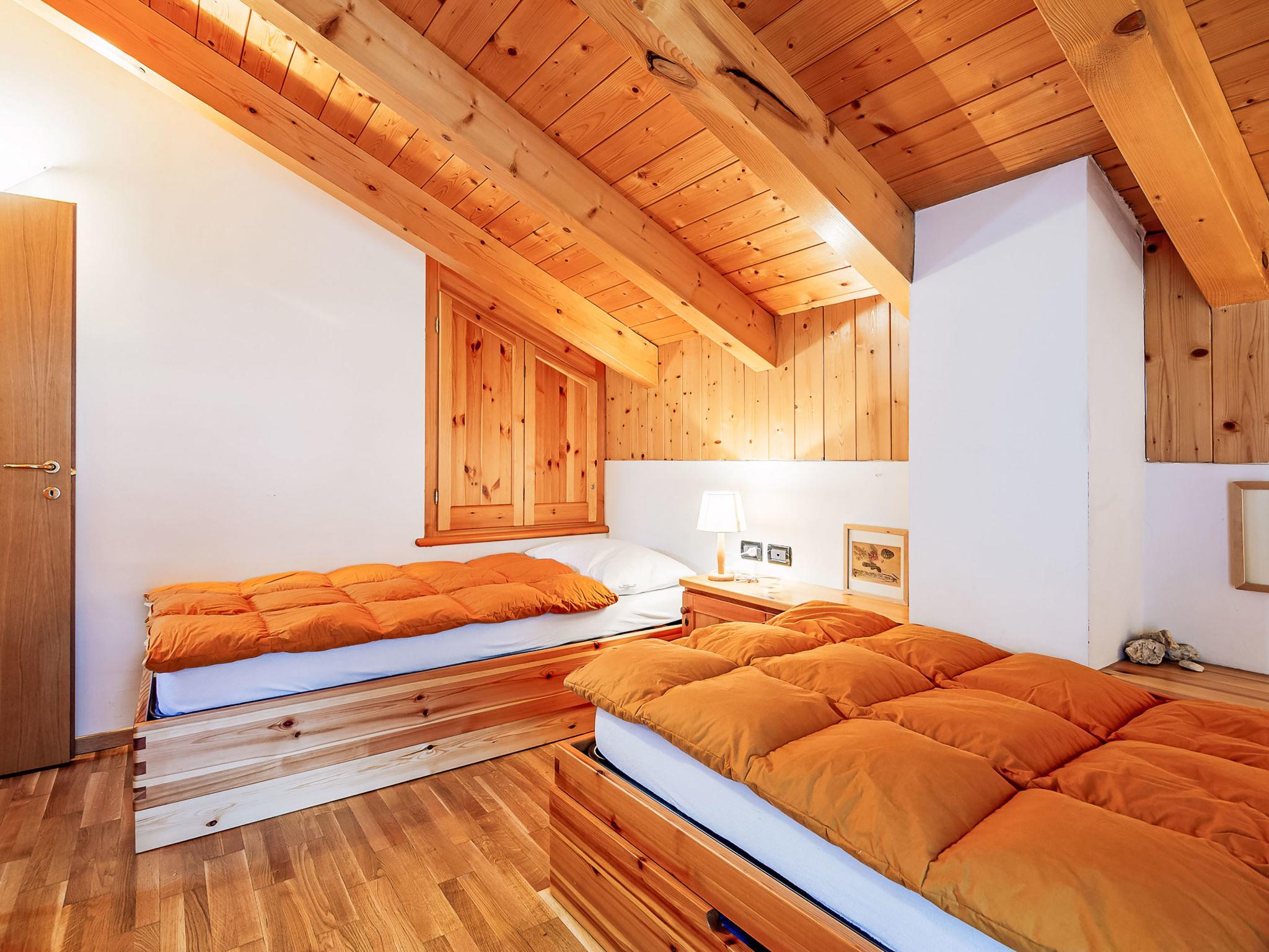 "Cesa Emilia", 3-room apartment 70 m2 on 2 levels on 1st floor. Practical and comfortable furnishings: living/dining room with open-hearth fireplace (only for decoration), dining table, kitchen corner, bathroom and TV (flat screen). Kitchenette (oven, 1 ceramic glass hob hotplate, microwave). Upper floor: 1 double bedroom with sloping ceilings with 1 double bed. Exit to the balcony. 1 room with sloping ceilings with 2 beds and 1 pull-out bed. Exit to the balcony. Shower/bidet/WC. Heating available only from 01.12. to 01.05. Marvellous view of the mountains. Facilities: hair dryer. Parking space n 12 (1 car), garage (1 car). Please note: non-smokers only. Private entrance, fire extinguisher, no lift. IT022036B4KB2PCUK3
