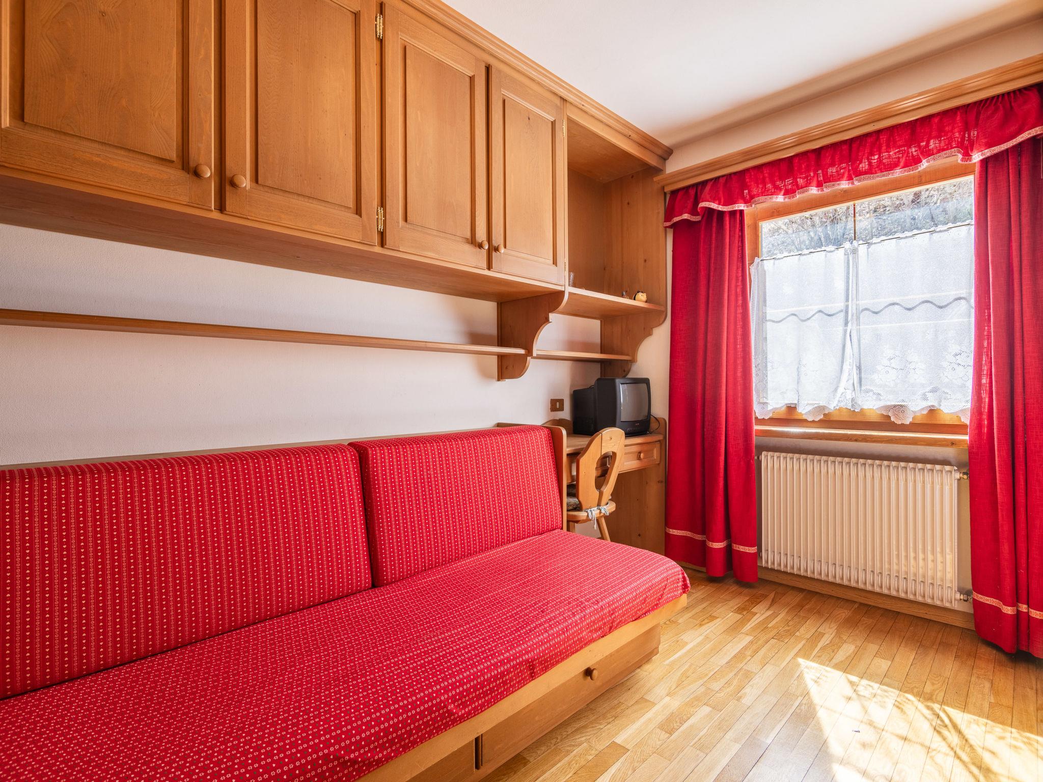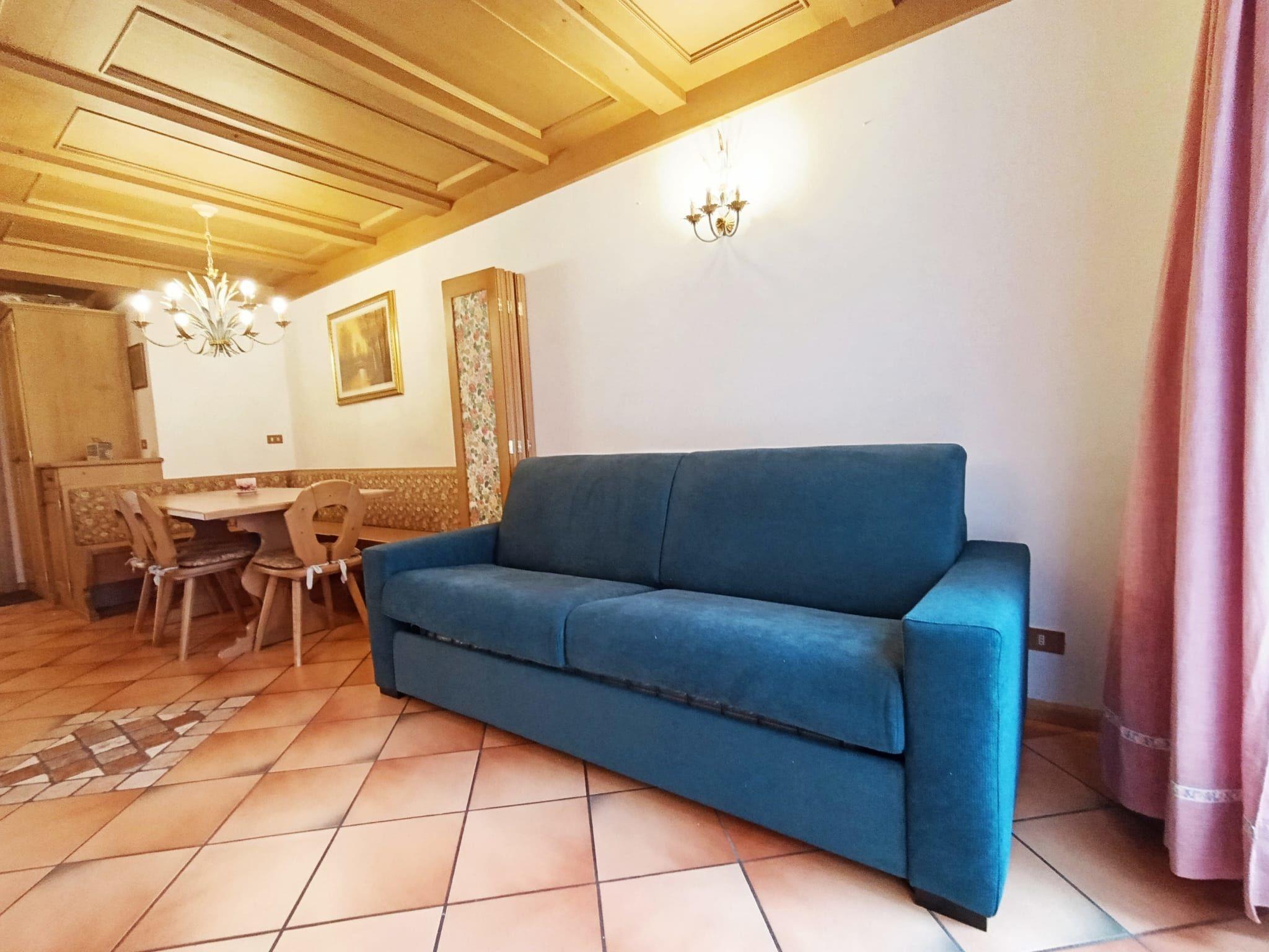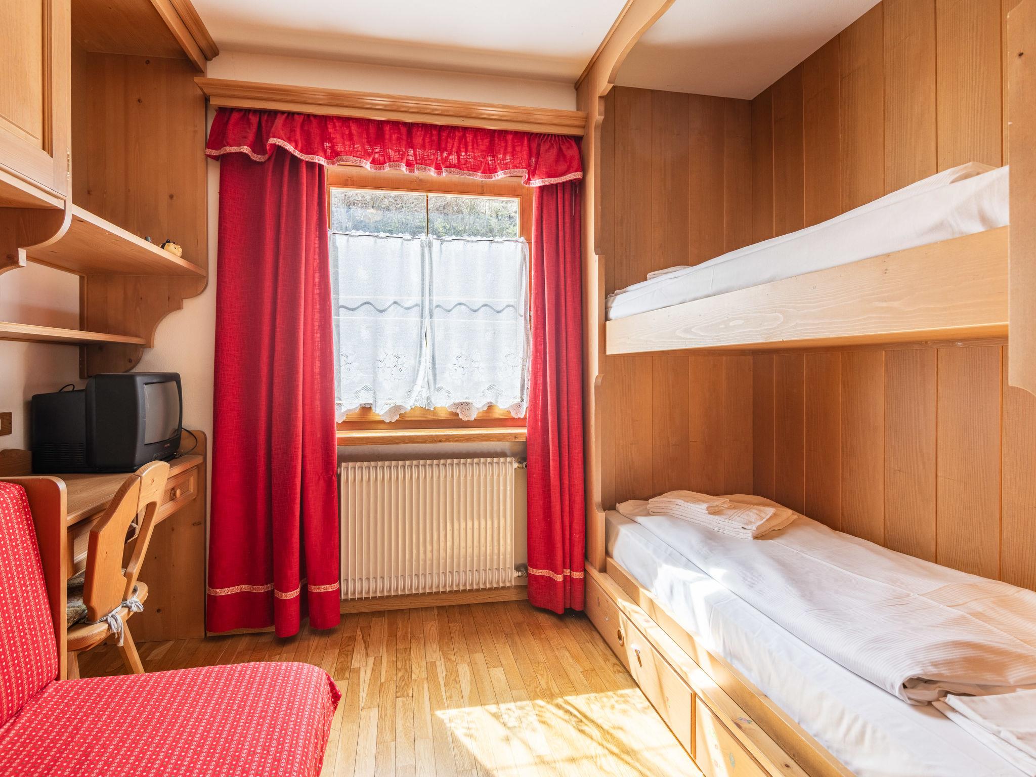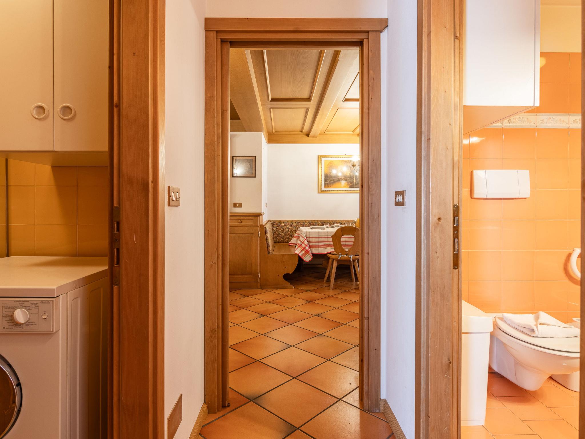 "Corte dei Larici", 3-room apartment on the ground floor. Comfortable and cosy furnishings: entrance hall. Living/dining room with open-hearth fireplace (only for decoration), dining table. Exit to the garden. 1 room with 1 bed and 1 x 2 bunk beds. 1 double bedroom. Kitchen (oven, dishwasher, 4 induction hot plates). Bath/bidet/WC, shower/bidet/WC. Heating available only from 01.12. to 01.05. Small garden. Very beautiful, of the mountains. Facilities: washing machine, hair dryer. Internet (WiFi, free). Please note: apartment courtyard side. Non-smokers only. Maximum 1 pet/ dog allowed. Private entrance, smoke alarm, fire extinguisher. IT022036C2B7VTNYM8