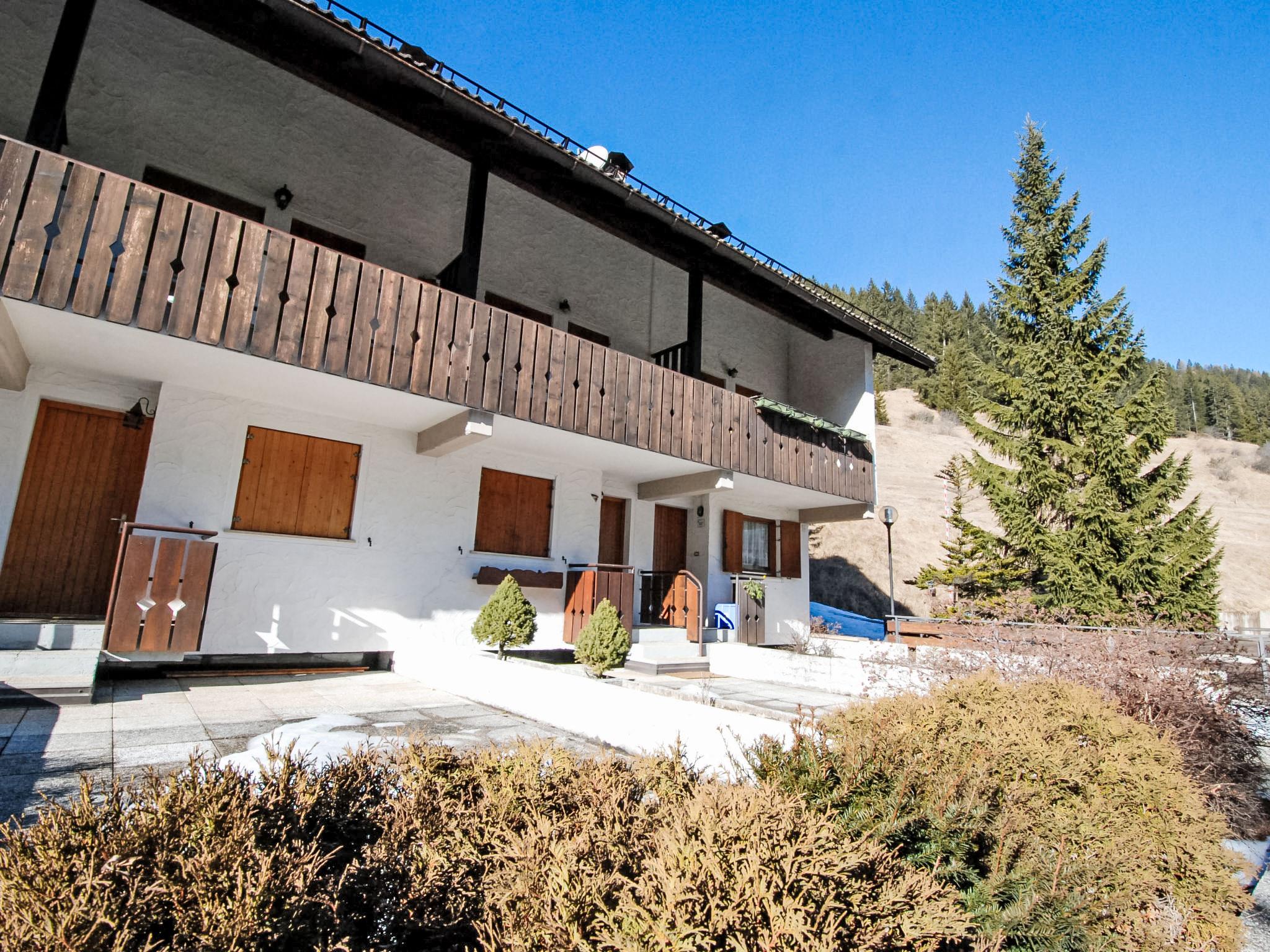3-room apartment 40 m2 on 2 levels, on the ground floor. Practical and comfortable furnishings: small living room with open-hearth fireplace (only for decoration), dining table, dining nook and TV. Exit to the garden, to the terrace. 1 double bedroom. Kitchenette (dishwasher, 4 ceramic glass hob hotplates). Shower/bidet/WC. On the lower ground floor: (open staircase), 1 room with 2 beds. View of the mountains and the valley. Facilities: washing machine, hair dryer. Garage on the property. Please note: not suitable for small children. Non-smokers only. Maximum 1 pet/ dog allowed. Fire extinguisher. It is also possible to access the apartment from the garage through the bedroom on the lower floor. IT022113C2PUY2F35M