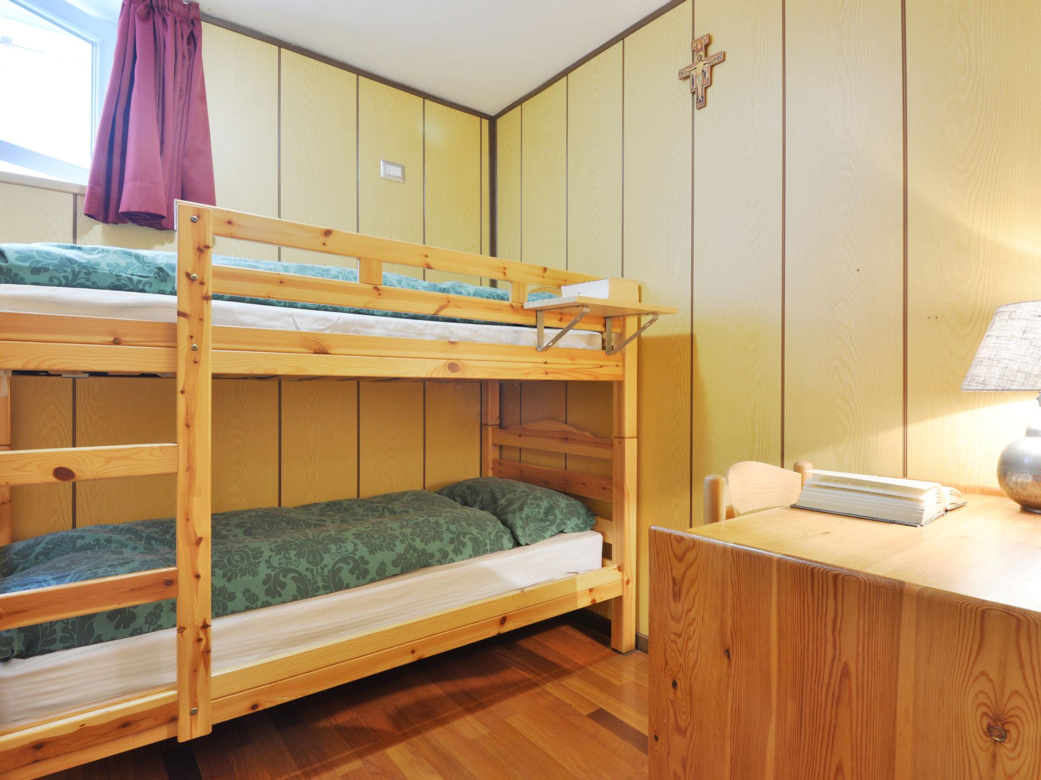4-room apartment 90 m2 on 2 levels, on the ground floor. Practical and comfortable furnishings: large living/dining room with dining table and TV (flat screen). Kitchenette (4 hot plates, dishwasher, microwave). Bath/bidet/WC. Boiler. On the lower ground floor: 1 double bedroom. 1 double bedroom with 1 x 2 bunk beds. 1 room with 1 x 2 bunk beds. Shower/bidet/WC, sep. WC. Boiler. View of the mountains and the valley. Facilities: washing machine, hair dryer. Internet (WiFi, free). Garage. Please note: suitable for families. Non-smokers only. Maximum 1 pet/ dog allowed. Fire extinguisher. IT022039C26KN2RBQ3