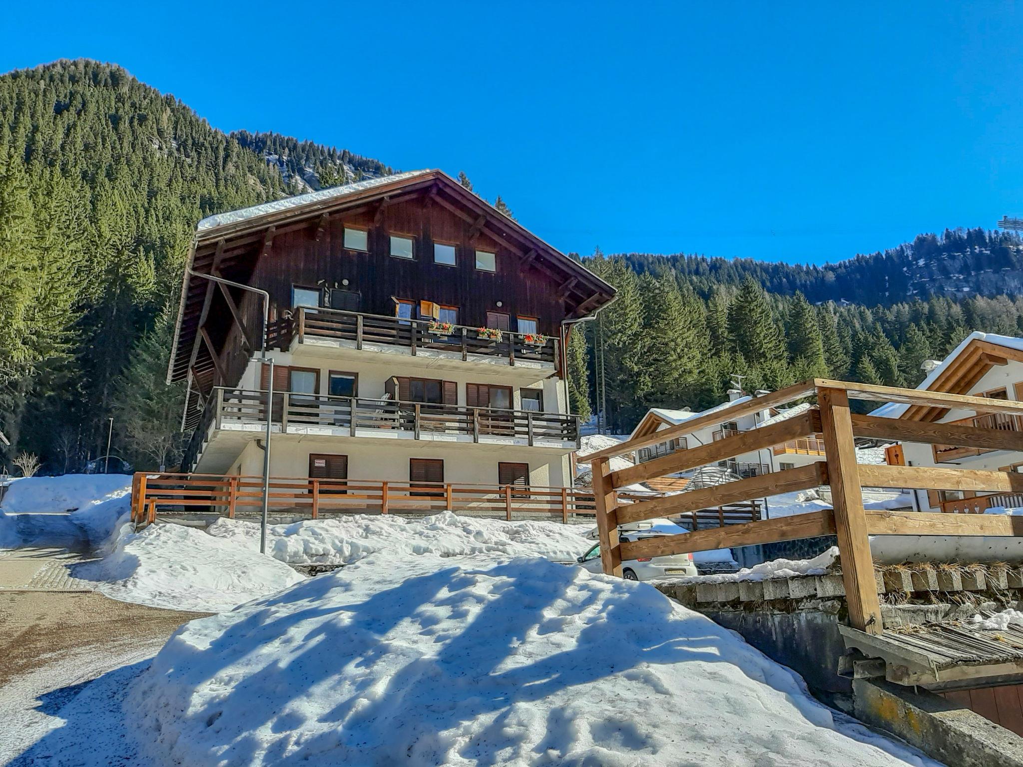 Alba 2 km from Canazei: Small apartment house "Roacia". In a quiet, sunny position on a slope, along the wooded area, 1 km from the skiing area. In the house: central heating system, heating available only from 01.Dec. - 01.May.. In Winter: please take snow chains. Stepped path to the house. Public parking on the road. Grocery 1 km, supermarket 1 km, restaurant, bar 500 m, bus stop 100 m. Chair lift 1 km, ski bus stop 100 m. Nearby attractions: Funivie Belvedere e Ciampac 1 km.