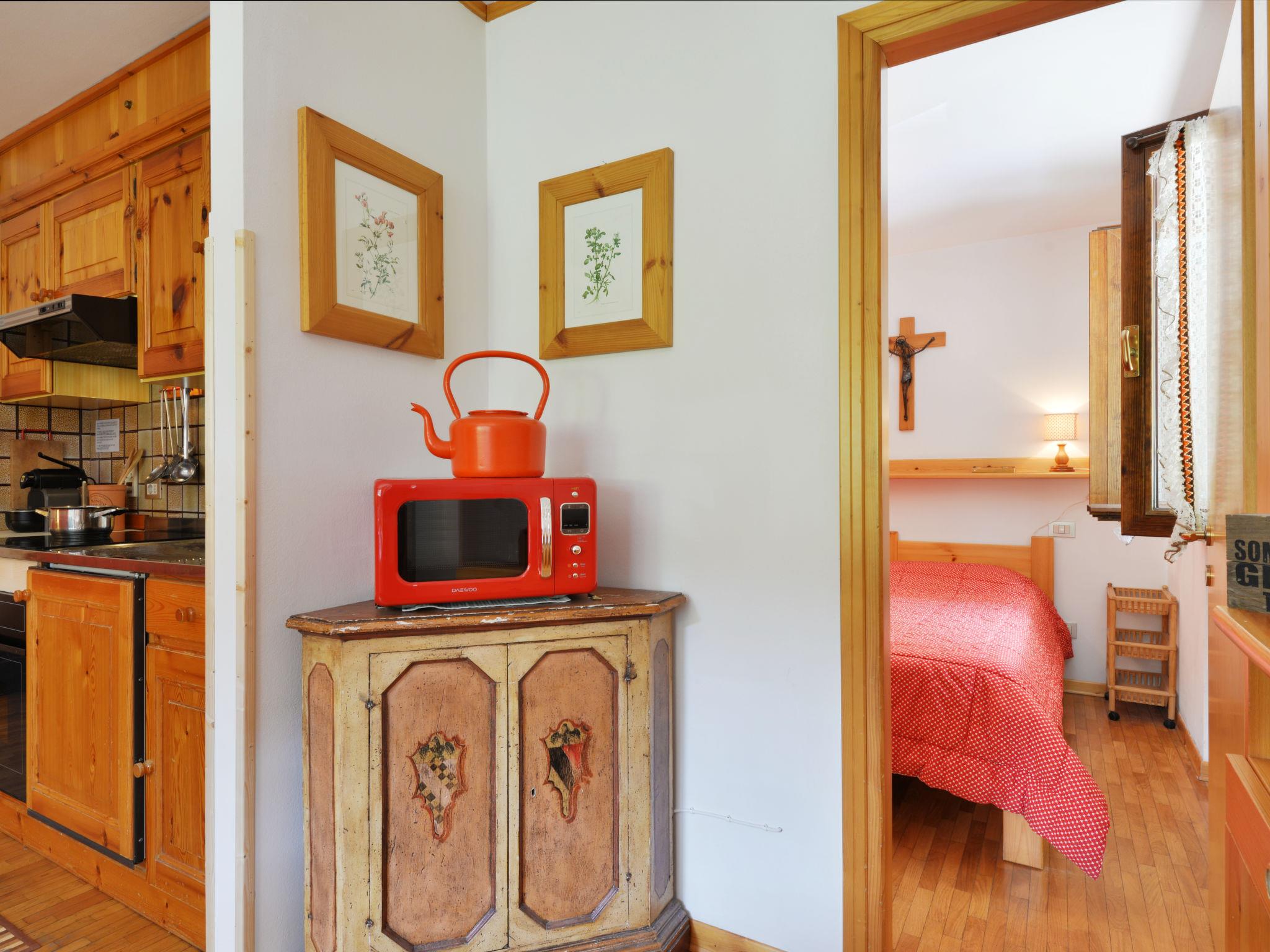 "Apt 3", 2-room apartment 46 m2, on the upper ground floor. Comfortable and tasteful furnishings: living/dining room with 1 sofabed, 1 pull-out bed, dining table and TV (flat screen). 1 double bedroom. Kitchenette (oven, 4 induction hot plates, microwave, electric coffee machine). Shower/bidet/WC. Boiler. Parquet floors. View of the mountains, the valley and the garden. Facilities: washing machine, hair dryer. Please note: suitable for families. Non-smokers only. Fire extinguisher. IT022039C2WOSNOWP2