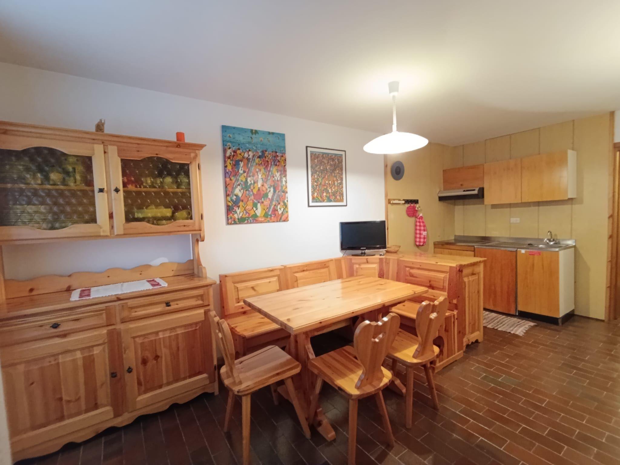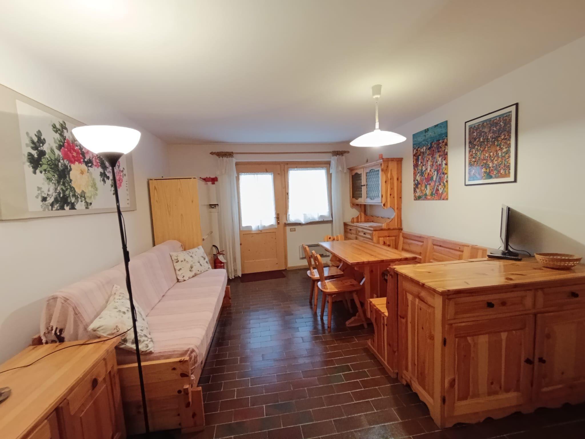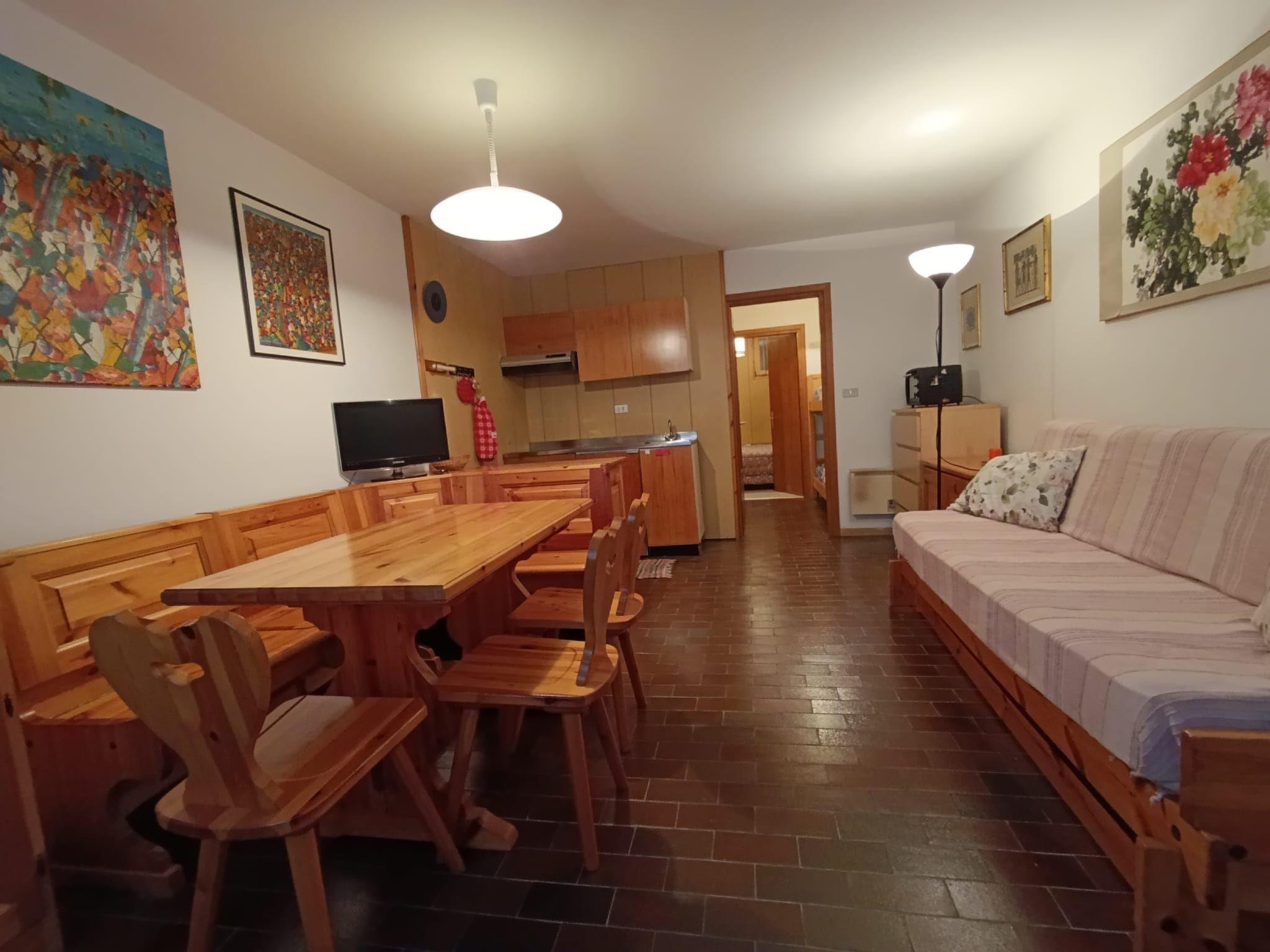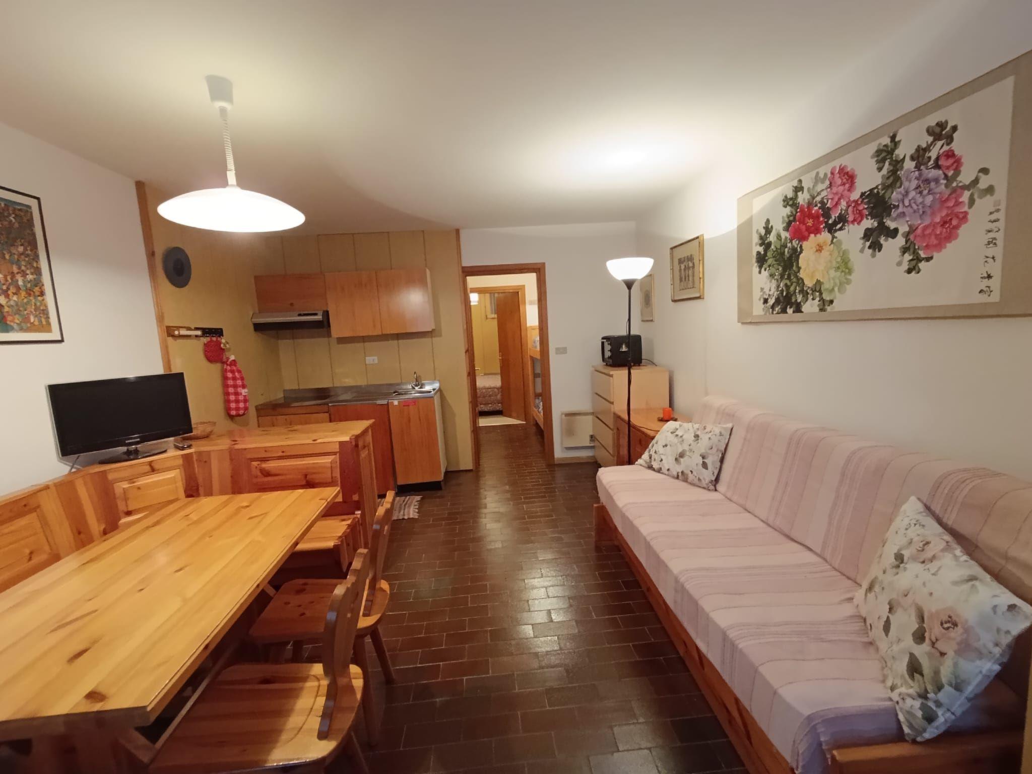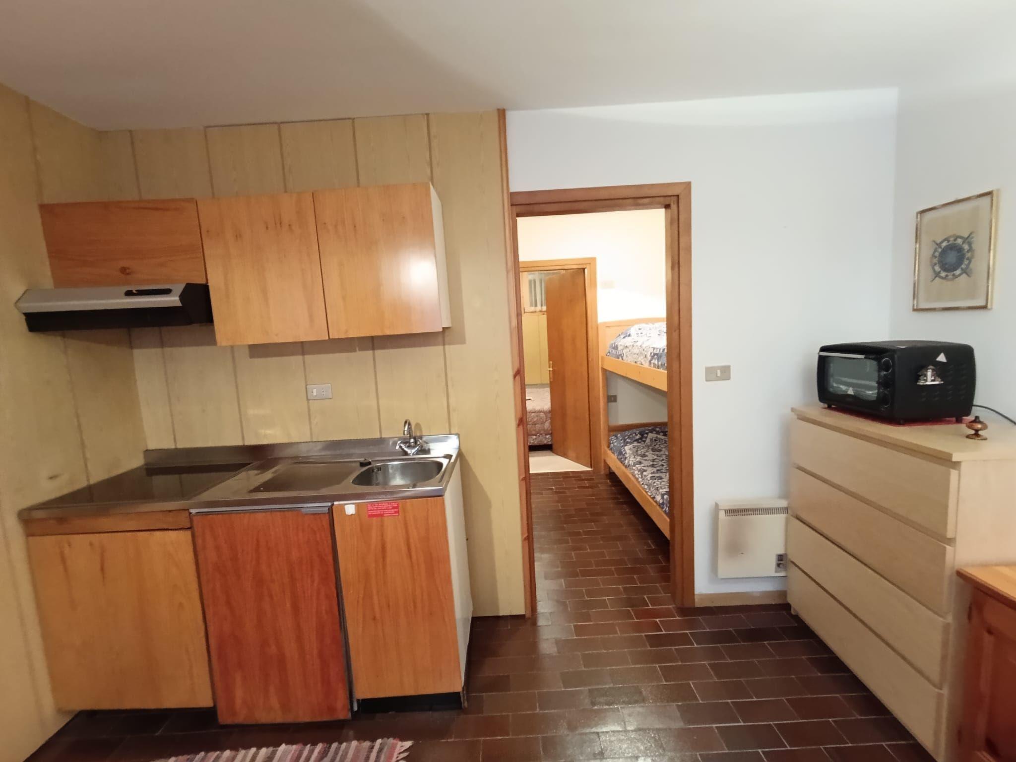 "Appartamento Matilde", 2-room apartment. Simple and practical furnishings: entrance hall. Living/dining room with 1 double sofabed and TV. Walk-through room with 1 x 2 bunk beds. 1 double bedroom. Small kitchen (mini-oven, 2 ceramic glass hob hotplates). Shower/bidet/WC. Heating available only from 01.12. to 31.05. Very beautiful view of the mountains. Facilities: hair dryer. Garage at 400 m. Please note: smoke alarm, fire extinguisher. IT022039C2YB7J6EE5