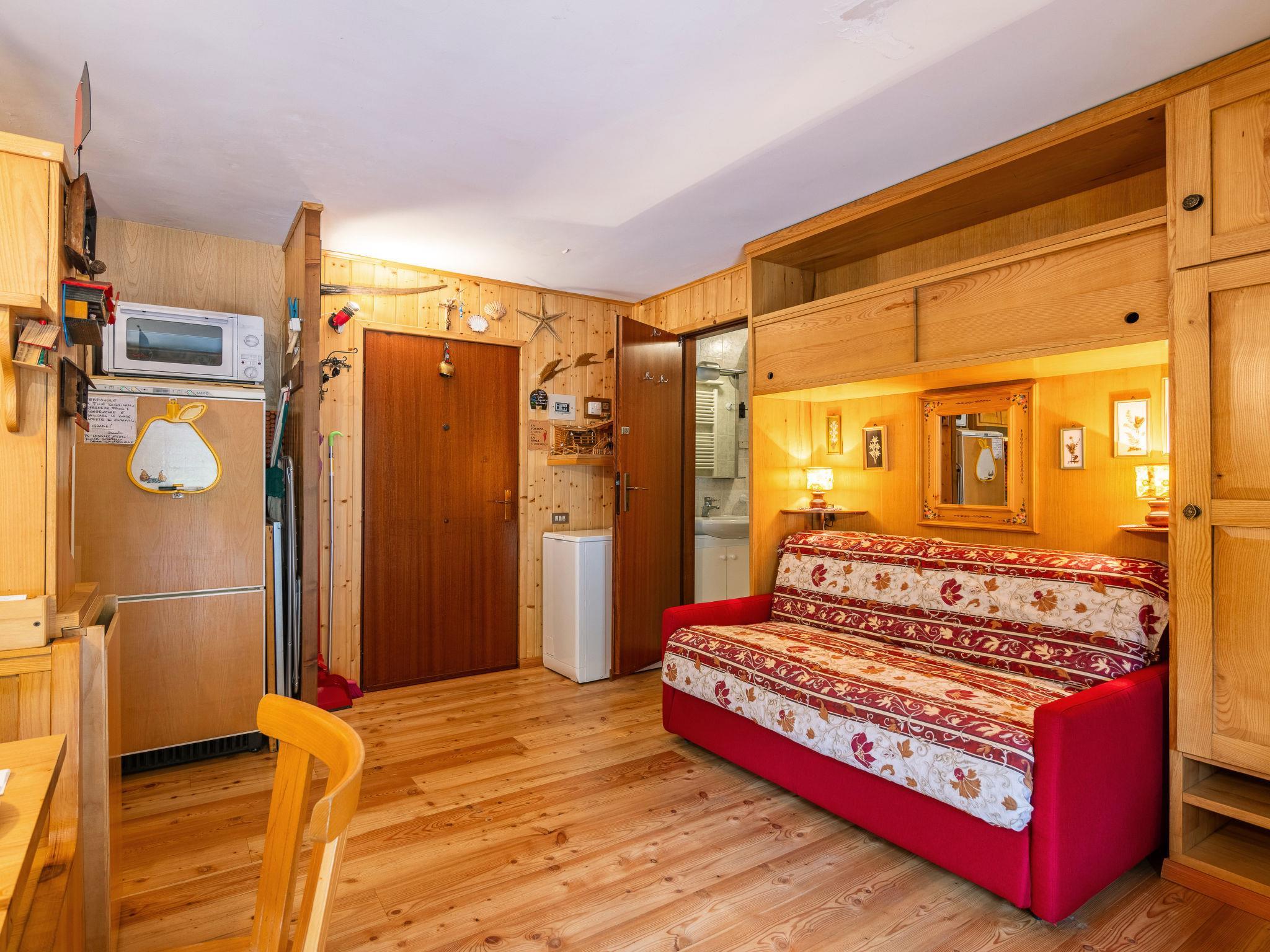 "Condominio Albert", 2-room apartment on 1st floor. Simple and wooden furniture furnishings: living/dining room with 1 sofabed (140 cm, length 190 cm). 1 room with 1 double sofabed. Kitchenette (3 hot plates, microwave). Shower/bidet/WC. Large terrace. Very beautiful panoramic view of the mountains. Facilities: washing machine, hair dryer. IT022039C2R5D36T4J