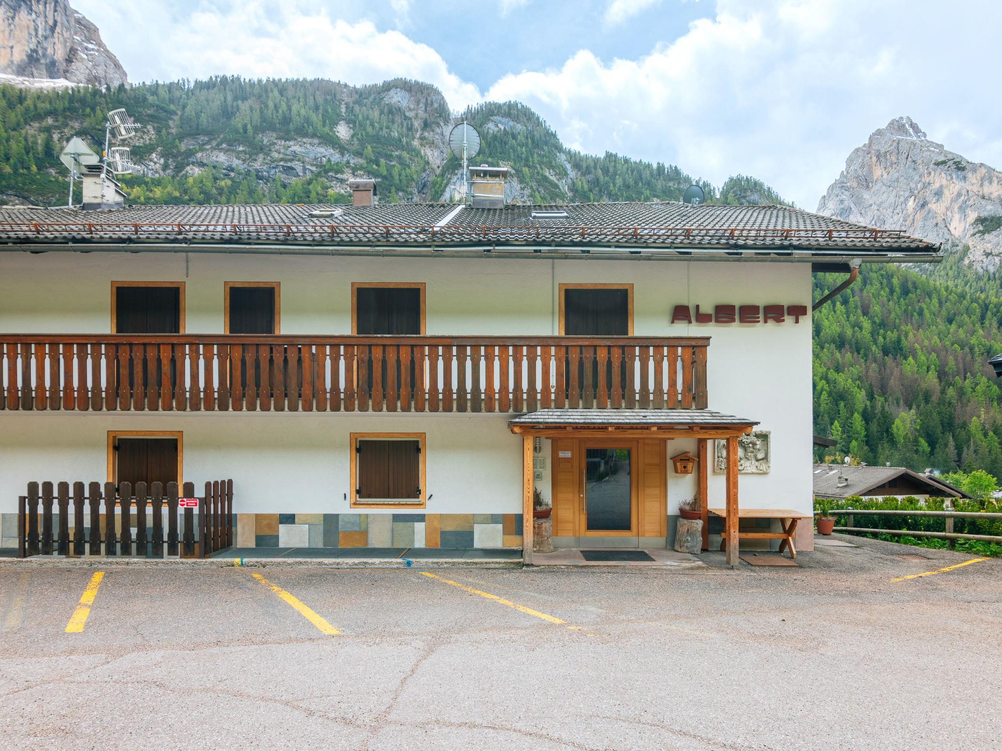 Penia 3 km from Canazei: Apartment block "Albert", 2 storeys. In a quiet, sunny position, 1 km from the skiing area. Heating available only from 01.Dec. - 01.May.. In Winter: please take snow chains. Bus stop 250 m. Mountain railway 1 km, ski bus stop 250 m. Nearby attractions: Sella Ronda 900 m, Lago di Carezza 25 km. Please note: the photograph shows a typical example.