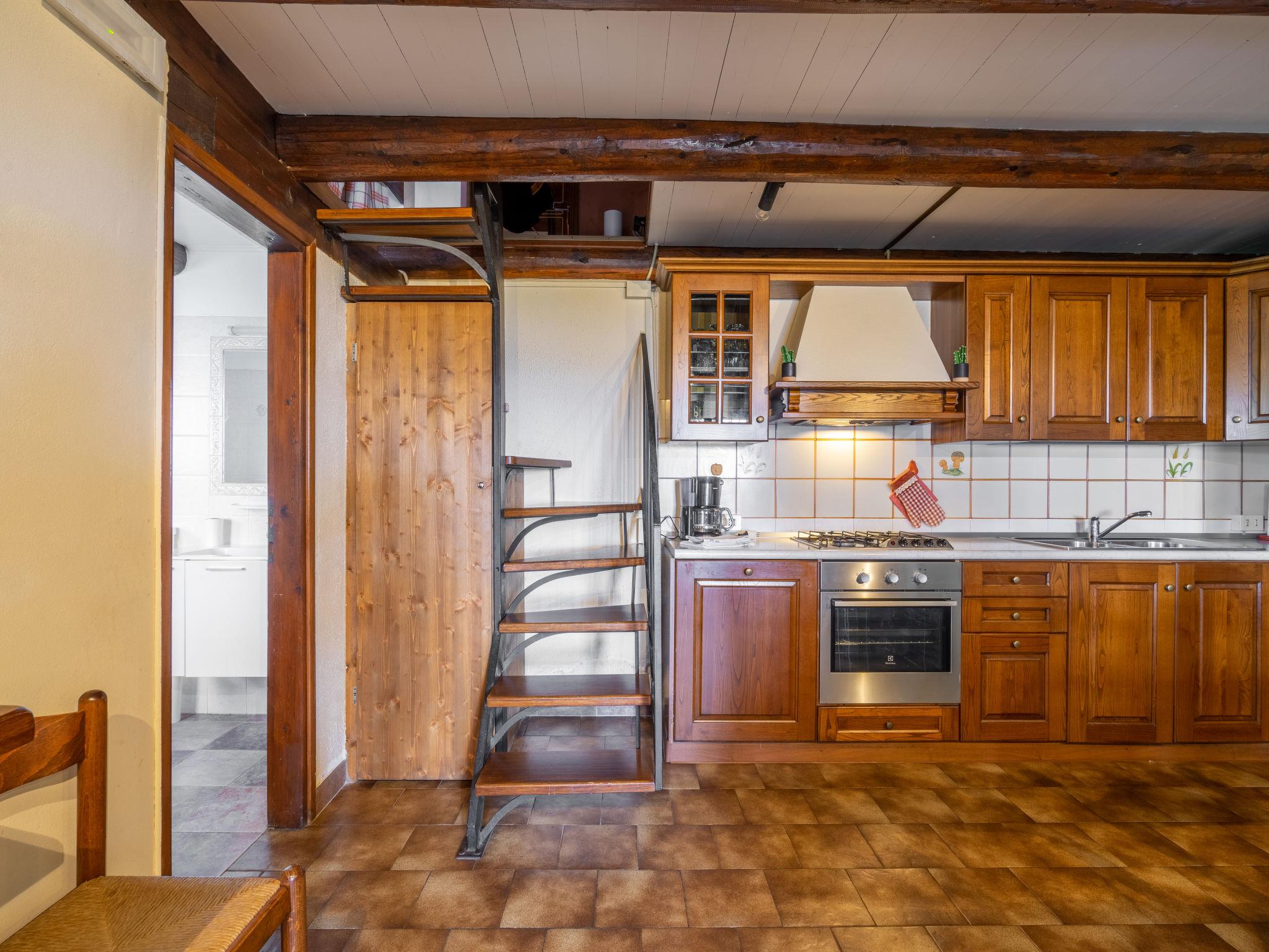 3-room house 70 m2 on 2 levels. Practical and rustic furnishings: living/dining room with open-hearth fireplace, dining table and satellite TV. Exit to the patio. Kitchenette (4 hot plates, oven, dishwasher, freezer, electric coffee machine). Shower/WC. Gas heating. Top floor: 1 double bedroom. Exit to the balcony. 1 room with 2 beds and 1 x 2 bunk beds. Open alcove with sloping ceilings, without wardrobe with 1 bed. Balcony, patio 20 m2, roofed. Terrace furniture, barbecue, deck chairs (2). Panoramic view of the lake and the mountains. Facilities: washing machine, children's high chair, baby cot for up to 2 year olds. Internet (WiFi, free). Please note: non-smokers only. Maximum 2 pets/ dogs allowed. Instead of an enclosed bedroom, some sleeping areas are located in an open-plan area (gallery, alcove, etc.). IT103066C2TXVCSI5P
