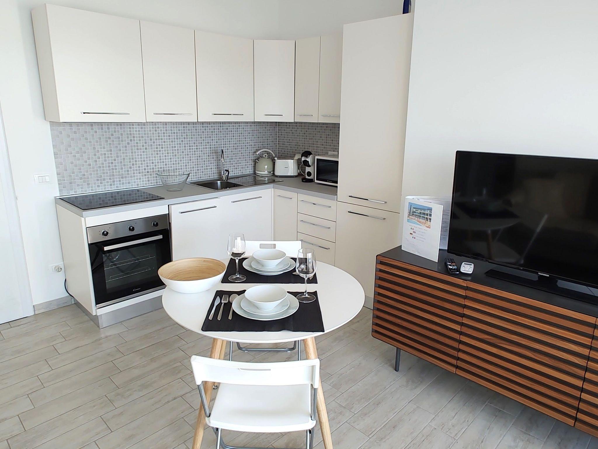 The flats at the Cannigione Resort have a terrace with a wonderful sea view, all modernly furnished with the best comforts for spending the day. The terraces are furnished for breakfast, lunch and dinner, as well as for spending moments of absolute relaxation.On arrival at the flat, guests will find the beds made and the bathroom kits. They will also find the following welcome kit: Toilet paper - Tabs for washing machine - Tabs for dishwasher (where present) - Tabs Shower gel for personal hygiene - Bottle of water in the fridge - Snacks