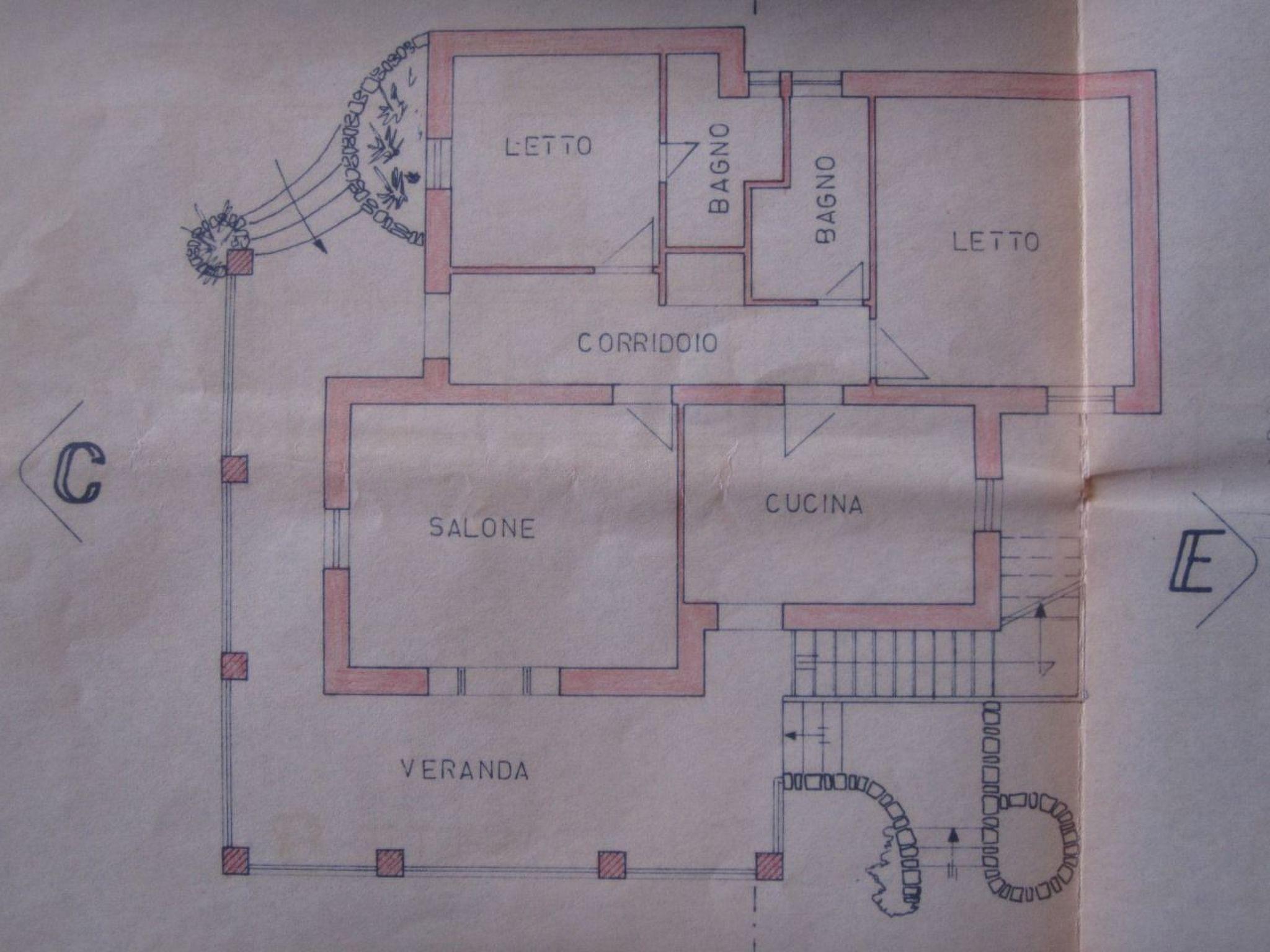 The villa is approx. 100 sqm and is situated on one floor. Access to the house is via a flight of steps leading to the veranda. It consists of four rooms completely furnished in wood: an entrance-corridor, a living room, a large kitchen and two bedrooms. The entrance-corridor has an armchair-bed and a built-in wardrobe. In the living room there is a sofa-bed for two, two armchairs, a table with chairs for six and a sideboard; there is also a fireplace and a television. The kitchen is equipped with a gas cooker, an oven, a refrigerator, a small dishwasher, kitchen cabinets for the pantry, and everything necessary for cooking (plates, glasses, cutlery, pots and pans, coffee maker, kettle, toaster), as well as a table and chairs for six. The master bedroom is spacious and is furnished with a double bed, bedside tables, a wardrobe, a chest of drawers and an armchair. The main bathroom has a shower and bathtub, washbasin, bidet and toilet. The second bedroom has a double bed, bedside tables and a wardrobe. The bathroom has a shower, washbasin, bidet and toilet. A hairdryer is available. Finally, the cottage has a cellar with a washing machine.