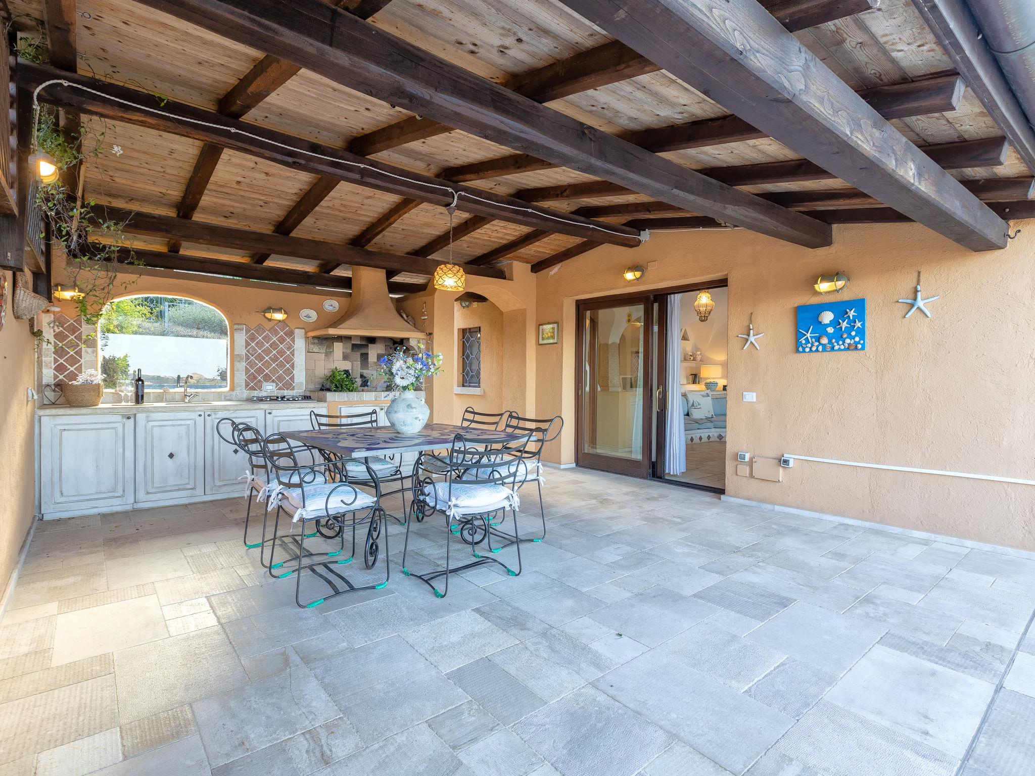"Valentina", 5-room house 200 m2 on 2 levels. Comfortable and cosy furnishings: living/dining room with digital TV, air conditioning and forced-air heating. Exit to the veranda. 1 double bedroom. 1 double bedroom. Exit to the terrace. Kitchenette (oven, dishwasher, 4 gas rings, toaster, kettle, microwave). 2 showers/bidet/WC. Upper floor: 1 double bedroom with air conditioning and forced-air heating. Exit to the terrace. 1 double bedroom with veranda with air conditioning and forced-air heating. Shower/bidet/WC. Air-conditioning, forced-air heating (extra). Heating not available in all rooms. Large terrace, patio roofed, garden 50 m2. Terrace furniture, barbecue. Very beautiful view of the sea and the resort. Facilities: washing machine, children's high chair, baby cot (extra). Internet (WiFi, free). Please note: non-smoking house. Maximum 1 pet/ dog allowed. Private entrance. One Shower/bidet/WC is outside the apartment. IT090006C2000Q8553