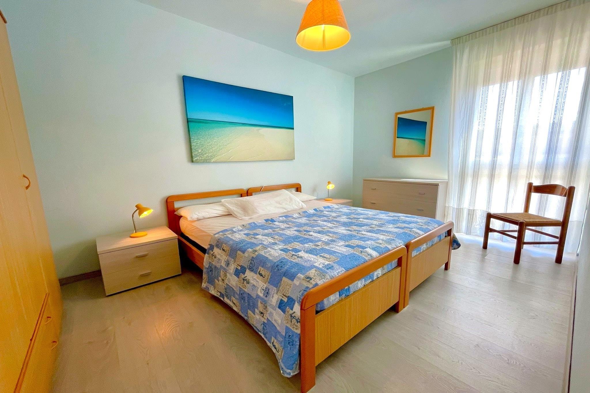 Denne indbydende lejlighed i Caorle, beliggende på anden sal i en virkelig smuk beliggenhed, er din indgang til en dejlig italiensk ferie. Stuen er designet til komfort og bekvemmelighed og har en hyggelig sovesofa til én person, et tv til underholdning og et spisebord, der er perfekt til fælles måltider. Det veludstyrede køkken tilbyder alt, hvad du behøver, med kogeplader, mikrobølgeovn, køleskab med fryser, håndvask og endda en vaskemaskine, hvilket gør længere ophold til en leg. Slap af i et af de to komfortable soveværelser: det ene har en rolig dobbeltseng, mens det andet er ideelt til familier med en ekstra dobbeltseng og en sjov køjeseng. Det moderne badeværelse er komplet med bruser, håndvask, toilet og bidet. Nyd komforten af aircondition i hele lejligheden, der sikrer et køligt tilflugtssted efter solrige dage. Træd ud på din private terrasse, et vidunderligt sted til morgenkaffe eller aftenaperitiver. Der er også gratis parkering, hvilket bidrager til at gøre dit ophold endnu nemmere. Ud over din charmerende bolig lokker Caorle med sin pulserende atmosfære og fantastiske omgivelser. Gå en tur langs den maleriske Lungomare Trieste, udforsk den farverige historiske fiskerihavn og dens unikke "casoni" (traditionelle fiskerhytter), eller slap af på det gyldne sand ved Spiaggia di Levante eller Spiaggia di Ponente. Besøg den ikoniske Duomo di Santo Stefano og dens skæve klokketårn, eller oplev charmen i den maleriske bymidte med dens mange butikker, gelatobarer og fiskerestauranter. For familiesjov tilbyder Aquafollie Water Park spændende rutsjebaner, og en bådtur til Caorle-lagunen giver et glimt ind i det lokale økosystem. Denne lejligheds førsteklasses beliggenhed placerer dig i hjertet af alt det, der gør Caorle til en uforglemmelig destination.