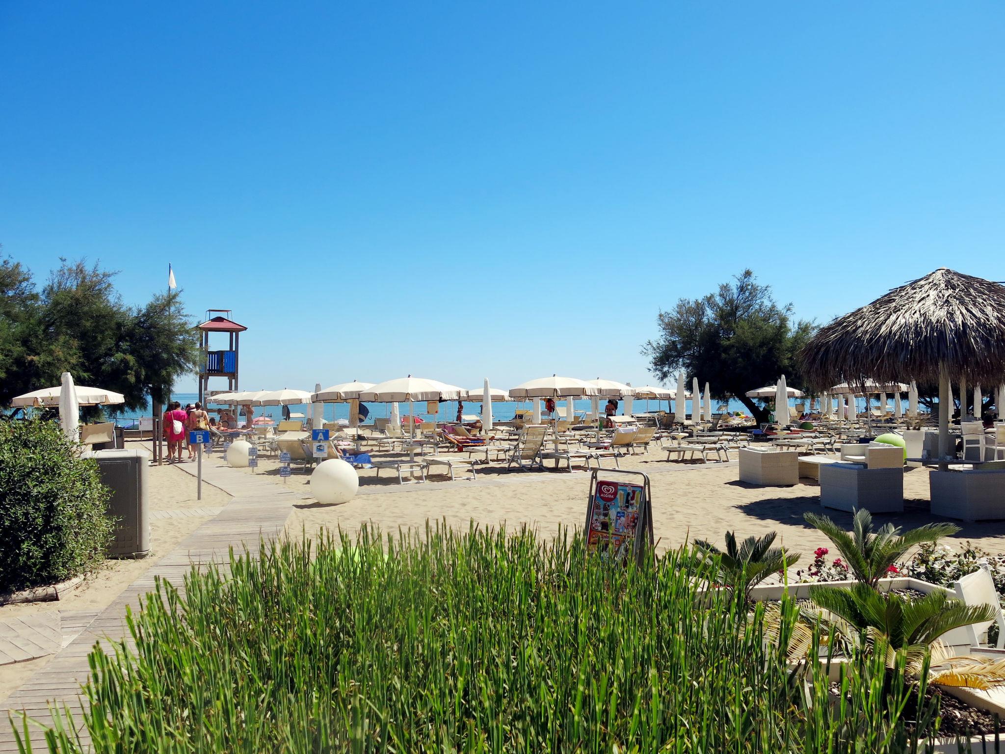 Large, beautiful resort "Villaggio A Mare", 4 storeys. 80 houses in the resort. 130 apartments in the residence. In the district of Lido Altanea 4 km from the centre of Caorle, 1.5 km from the centre of Porto Santa Margherita, 75 km from the centre of Venezia, 500 m from the sea. For shared use: property 45'000 m2 (fenced), well-kept garden with lawn and plants, swimming pool kidney-shaped (700 m2, seasonal availability: 25.Apr. - 30.Sep.). Children's pool, hot tub, children's playground. In the complex: reception, restaurant, bar, bistro, WiFi, shopping facilities, kiosk. Supermarket 600 m, bus stop 350 m, railway station "San Donà (Milano-Venezia-Triest)" 28 km, sandy beach 500 m, indoor swimming pool 400 m. Golf course (18 hole) 4 km. The owner does not accept any youth groups. Free entrance to the public indoor swimming pool (400 m). 2 sunbeds and 1 parasol per apartment/house at the pool. Beach service: In the period from approx. middle of May till middle of September. 2 sun loungers and 1 parasol per apartment/house are included in the rental price.