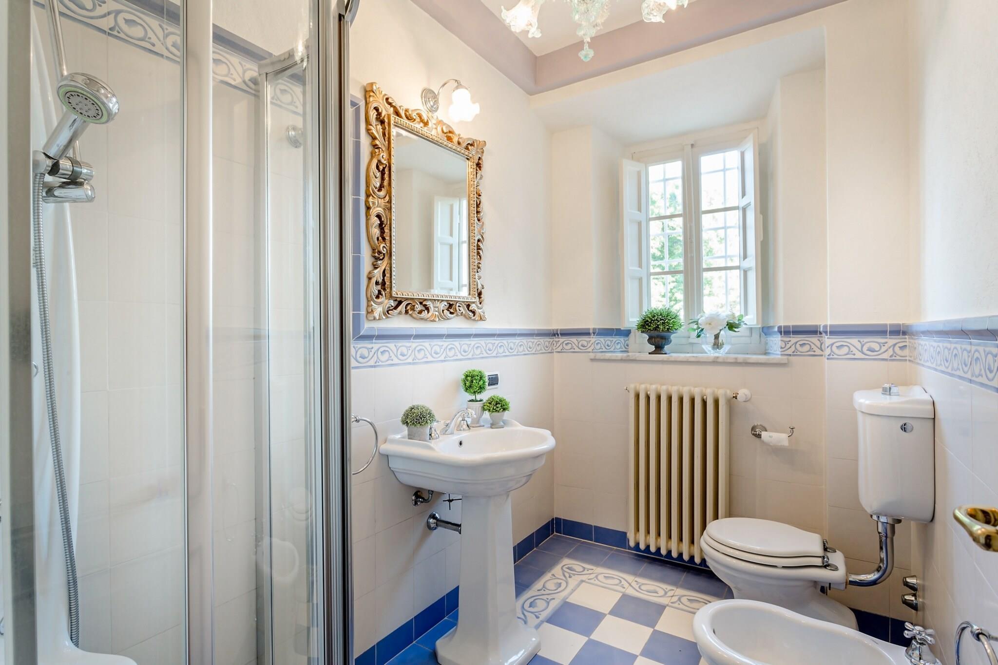 Potteplanter og cypresser beskytter elegant dette transformerede palæ fra det 18. århundrede i det naturskønne toscanske landskab. Frodige haver omgiver en glitrende pool i dette restaurerede bondehus nær Lucca, beliggende i en landsby kendt for sin kameliafestival og håndlavede ekstra jomfruolivenolie. Boligen har bevaret sin oprindelige charme med bjælkelofter, murstensgulve og buegange, mens en spiseloggia tilbyder en betagende udsigt fra bakketoppen. Gæsterne kan nyde lokale råvarer i et lyst køkken, slappe af i et stenbygget poolhus - tidligere en hestestald - eller deltage i fritidsaktiviteter såsom ridning, tennis og golf inden for rækkevidde. Indenfor er den åbne planløsning præget af gråtonede stoffer og krystallysekroner, der indrammer store vinduer, der viser de bølgende bakker. Luccas travle bymidte udstråler landlig charme og ligger kun 12 kilometer væk. Slap af ved saltvandspoolen, nyd lyden af fuglesang på en solseng, eller træk dig tilbage til det skyggefulde udendørs opholdsområde. Nyd gratis frisk frugt og en flaske vin ved det udendørs spisebord til ti personer, perfekt til sammenkomster, med en grill til middage ved solnedgang. Stenvægge og et tegltag formidler essensen af en villa i en periode, mens interiøret blænder med stilfulde farver, teksturer og kunstværker. Stueetagen indeholder tre dobbeltværelser, tre badeværelser med indbyggede brusere og en hyggelig stue med tv og franske vinduer med udsigt over haven. Hovedetagen har et fuldt udstyret køkken, en rummelig spisestue til tolv gæster, en anden stue med tv og to ekstra soveværelser - et med to enkeltsenge - og et badeværelse. Hvert værelse har aircondition, pålidelig Wi-Fi, satellit-tv og privat parkering. Beliggenheden tilbyder nem adgang til nærliggende restauranter og butikker. Bemærk: Turistskat skal betales på ejendommen.