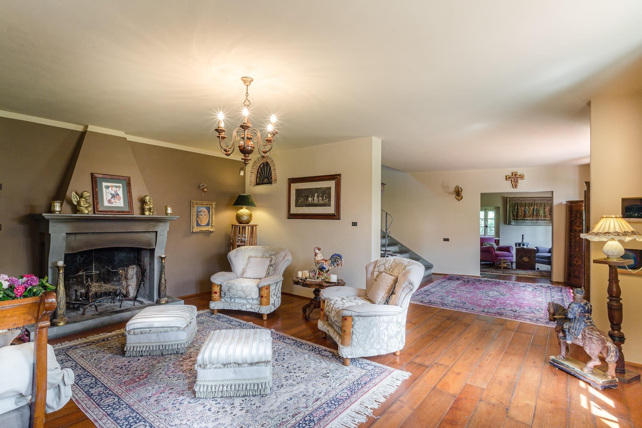 Beliggende kun 20 minutter fra den charmerende by Lucca og 15 minutter fra Montecatini Terme, er Villa Lorena et familieparadis fyldt med elegance fra det 16. århundrede. Denne betagende villa inviterer dig til at træde tilbage i tiden, udsmykket med vintage-skønhed og rustik shabby chic-indretning. Dens beliggenhed på bakketoppen tilbyder en storslået udsigt over det maleriske landskab, hvilket sikrer et roligt miljø til afslapning, mens familier kan forkæle sig selv med nærliggende attraktioner, herunder den fortryllende Pinocchio-park i Collodi, fødestedet for den elskede figur. Villaens interiør kan prale af seks rummelige soveværelser og fire luksuriøse badeværelser, samt faciliteter designet til fuld komfort. Nyd afslappende dage ved den opvarmede indendørs pool, hvor store vinduer indrammer den betagende udsigt over dalen. Den private spa, komplet med sauna og fitnesscenter, indbyder til wellness og foryngelse, mens en stor udendørs swimmingpool lover solrige dage med afslapning under den toscanske sol. Nyd kulinariske lækkerier i det fuldt udstyrede køkken, eller vælg at spise udendørs under træerne, komplet med grill og brændefyret pizzaovn - perfekt til familiesammenkomster. Villa Lorenas grund er en fortryllende blanding af velplejede haver og naturskønne udsigter over lokale stenlandsbyer, der indbyder til udforskning og afslapning. Nyd alt, hvad Lucca-regionen tilbyder, fra jogging gennem vinmarker til sandstrande i Versilia, der kun ligger en halv times kørsel væk. Musikelskere vil nyde de pulserende festivaler, der afholdes året rundt, hvilket gør Lucca til en førsteklasses toscansk destination. For dem, der planlægger et besøg, bedes du bemærke, at adgang kræver navigation på en grusvej, ideel for eventyrlystne sjæle, der er klar til at udforske den historiske charme og naturlige skønhed, der venter. Bemærk: Turistskat skal betales på ejendommen.