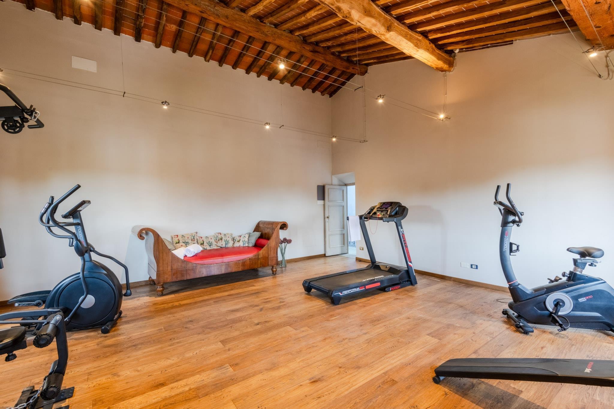 Beliggende ved foden af de maleriske Lucca-bakker inviterer denne ekstraordinære villa dig til at forkæle dig med en helt unik flugt. Fuldt airconditioneret til moderne komfort, det er omgivet af frodige vinmarker og omhyggeligt velplejede haver, hvilket skaber et idyllisk tilflugtssted fra omverdenens stress og jag. Den ekspansive terrasse, der går tilbage til 1600-tallet, byder på fængslende panoramaudsigt over bølgende bakker, hvor betagende solnedgange kaster nuancer af pink og orange over de fjerne vinmarker. Et sandt højdepunkt er den store overdækkede terrasse, der er tilgængelig fra køkkenet på første sal, og som byder på et stort udendørs spiseområde med plads til 20 - ideel til at være vært for overdådige måltider med familie og venner. Udstyret med en grill, det lokker dig til at nyde udendørs spisning, mens du nyder den fredfyldte skønhed i det toscanske landskab. Indvendigt blander villaen harmonisk historisk elegance med moderne luksus; hvert værelse fremviser originale møbler sammen med splinternye kingsize-senge og topmoderne aircondition. Oplev charmen ved en historisk vinkælder, hvor vintønder sætter scenen for private smagninger, og nyd hyggelige aftener ved pejsen i traditionelle køkkener. Begiv dig udenfor for at slappe af ved den store pool (13m x 6m) med en beroligende jacuzzi, alt indrammet af fredelige haver. Villaens førsteklasses beliggenhed giver nem adgang til Luccas historiske bymidte og pulserende mure, samtidig med at den placerer dig inden for rækkevidde af ikoniske destinationer som Firenze, Pisa, Cinque Terre og de smukke strande i Versilia. Denne villa lover en autentisk toscansk oplevelse, der fungerer som det perfekte fristed for dem, der søger afslapning og afslapning uden at forvilde sig langt væk fra det rige landskab i Italien. Nyd køkkenet i drivhuset efter anmodning mod et ekstra gebyr, hvilket øger den luksuriøse oplevelse.