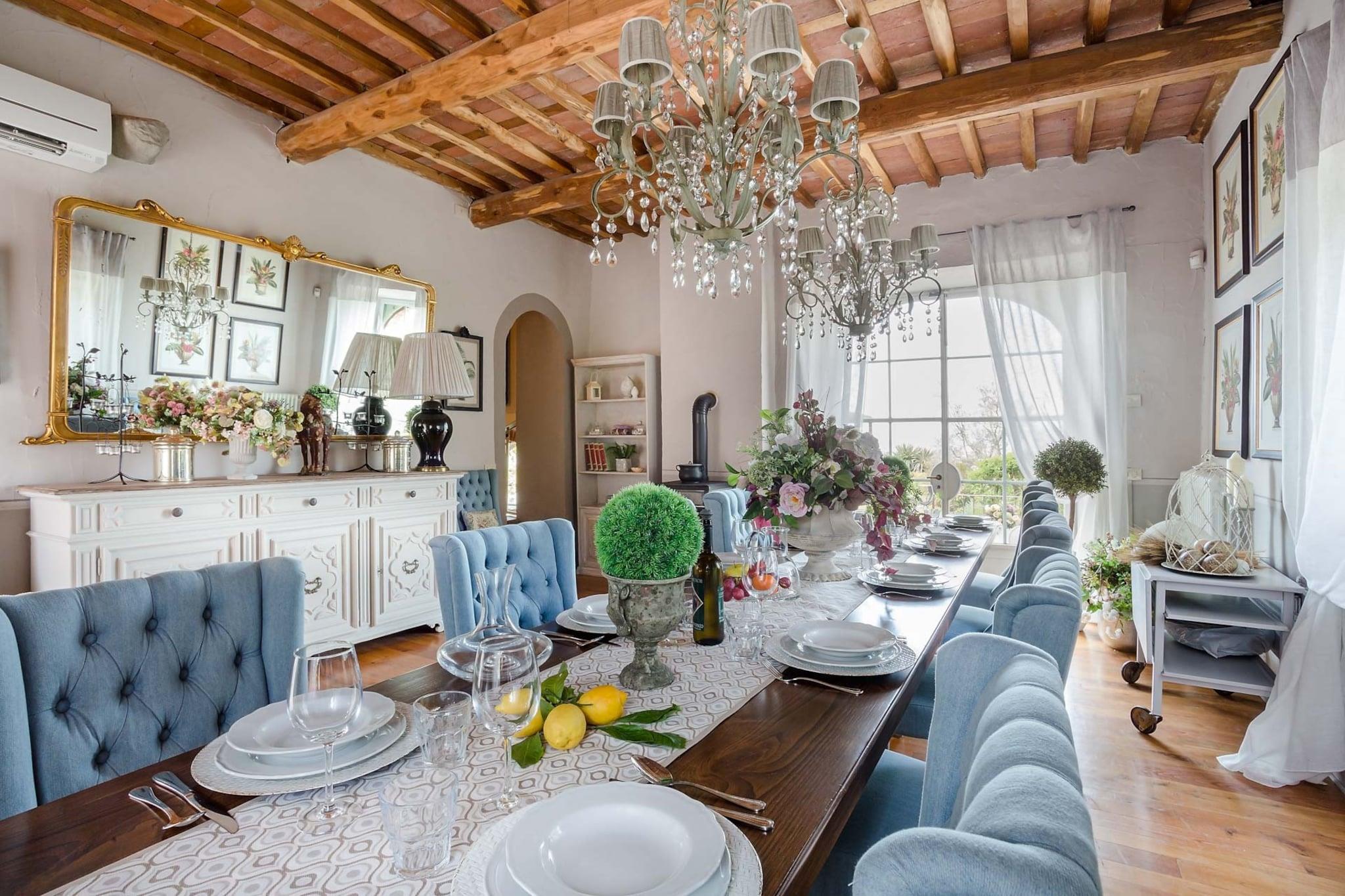 Oplev den ultimative flugt i en storslået toscansk bondegårdsvilla, beliggende i det fortryllende vindistrikt Colline Lucchesi. Denne fantastiske ejendom kombinerer problemfrit moderne komfort med traditionel charme og tilbyder fleksibel indkvartering, der er perfekt til større grupper på op til 14 gæster. Med fantastiske faciliteter, herunder en opvarmet indendørs swimmingpool med jacuzzi-sæder og en indbydende udendørs swimmingpool beliggende blandt olivenlunde, er hver eneste detalje blevet omhyggeligt restaureret for at sikre et uforglemmeligt ophold, der indfanger essensen af luksuriøst landliv. Denne elegante villa ligger kun 11 kilometer øst for Lucca og er omgivet af private vinmarker og olivenlunde, hvilket giver nem adgang til Toscanas mest ikoniske seværdigheder, herunder Firenze, San Gimignano, Pisa og de betagende strande i Viareggio og Forte dei Marmi. Det nærliggende landskab lokker med naturskønne vandrestier gennem skove og vinmarker, mens charmerende landsbyer på bakketoppe som Valgiano og Montecarlo, kendt for deres udsøgte restauranter og storslåede udsigter, kun ligger en kort køretur væk. Forestil dig at slappe af i en smukt indrettet, stor stue med stenpejs og internationale tv-kanaler, eller at tilberede et festmåltid i det fuldt udstyrede, traditionelle køkken. Den åbne spisestue, der har plads til op til 14 gæster, inviterer dig til at dele mindeværdige måltider sammen. Begge opholdsrum åbner ud til dejlige udendørs terrasser, der er velegnede til solbadning og udendørs spisning, med en Weber-grill og en brændefyret pizzaovn til dine kulinariske sysler. Med fem soveværelser og fire badeværelser i hovedbygningen og en ekstra suite i det nærliggende anneks har du rigelig plads til at slappe af. Dit ophold forbedres yderligere af aircondition og pålidelig Wi-Fi, der sikrer, at komfort møder bekvemmelighed i dette idylliske toscanske tilflugtssted. Bemærk: Turistskat skal betales på ejendommen.