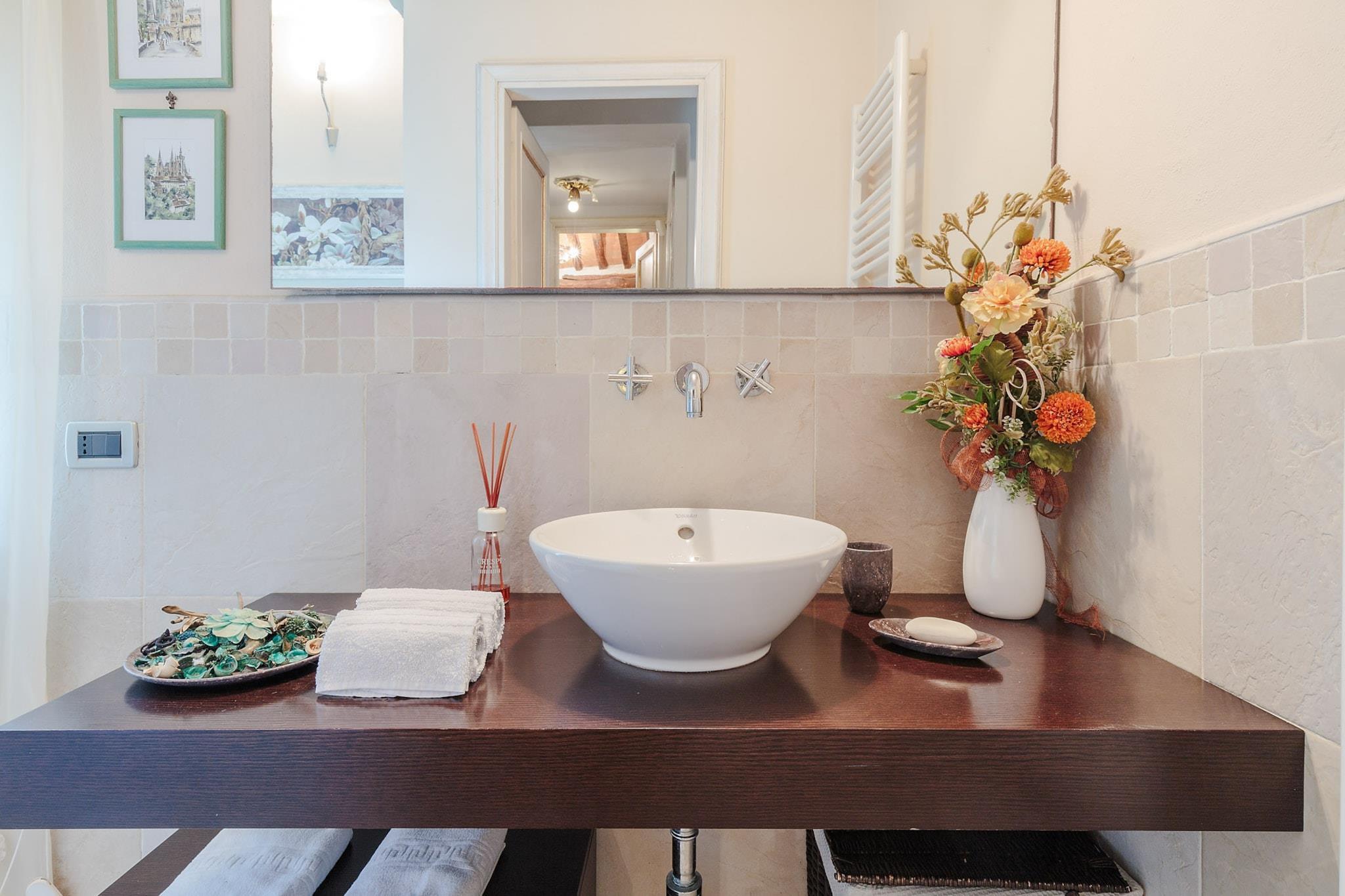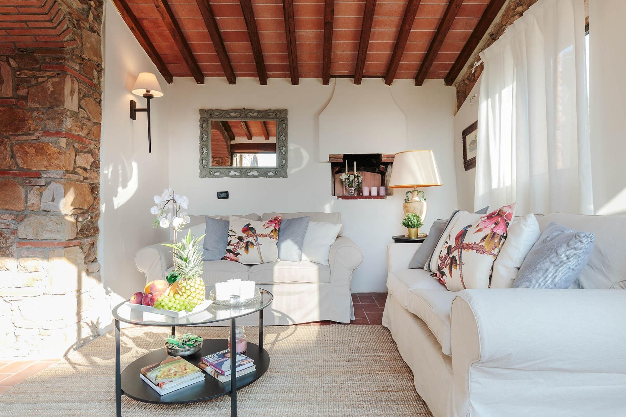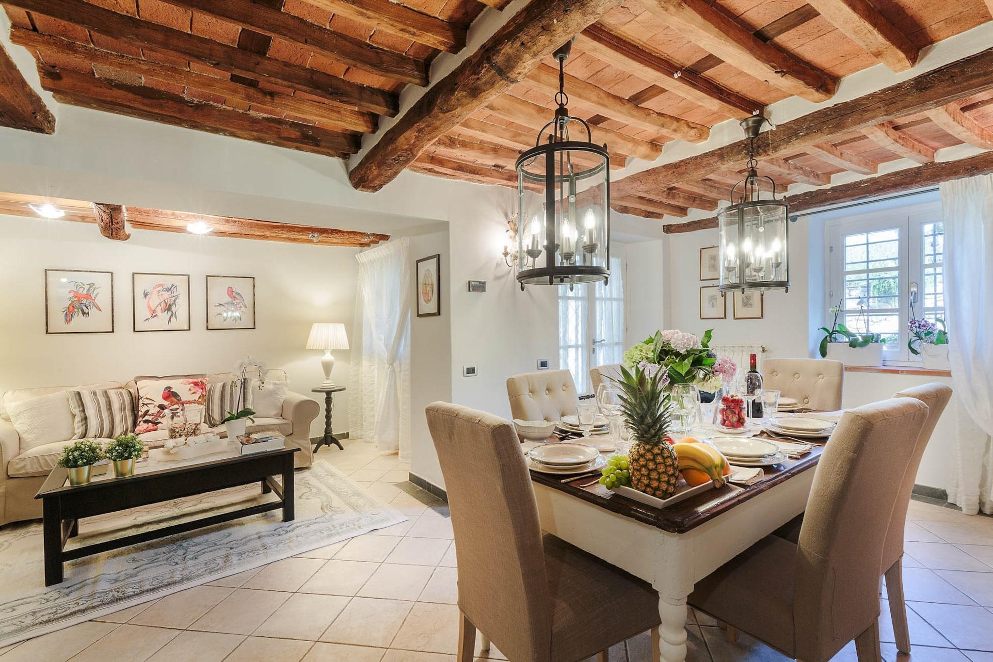 Beliggende i den charmerende middelalderlandsby Sant"Andrea di Compito, lige syd for Lucca, legemliggør dette fantastiske bondehus den indbegrebet af det antikke Toscana. Omgivet af cypresser, farverige haver og betagende udsigter, tilbyder den smukt restaurerede stenfacade et komfortabelt tilflugtssted med rustik charme. Indenfor skaber de indbydende opholds- og spisestueområder, der er placeret i både hovedhuset og et tilstødende høloft, en varm atmosfære til afslapning og hyggelige sammenkomster. Ejendommen er bekvemt beliggende kun 10 minutter fra Lucca og byder på intime terrasser og haver, der inviterer dig til at sole dig i den toscanske sol. Tag en forfriskende dukkert i swimmingpoolen eller slap af under den azurblå himmel på toppen af bakken. Det skyggefulde lysthus er et perfekt sted at nyde kølige drinks og velsmagende frokoster tilberedt i det veludstyrede indendørs køkken. Om aftenen sætter verandaen ved siden af spisestuen scenen for udendørs middage ledsaget af lokale vine, med fantastiske solnedgange over Lucca, der indrammer atmosfæren. En kort to minutters gåtur fører dig til den gamle landsby Sant"Andrea di Compito, kendt for sine arkitektonisk skønhed og frodige haver udsmykket med majestætiske japanske kameliatræer. I nærheden finder du to restauranter, et bageri og et købmandsforretning, der tilbyder lokale delikatesser. Yderligere butikker, restauranter og pizzeriaer ligger blot fem minutters kørsel væk. Med ikoniske toscanske destinationer som Pisa, Firenze og Cinque Terre inden for halvanden times kørsel er dette tilflugtssted en ideel base for at udforske regionens rige kulturelle og kulinariske tilbud. Bemærk: Turistskat skal betales på ejendommen.