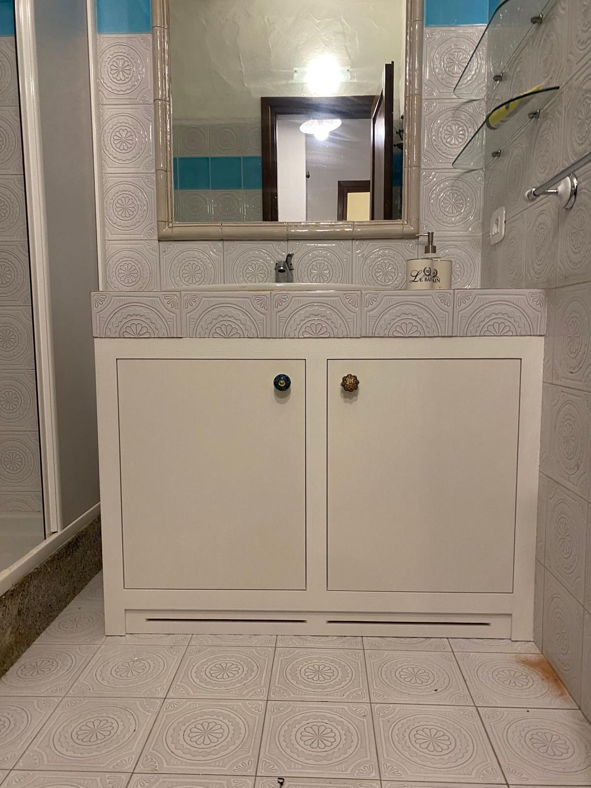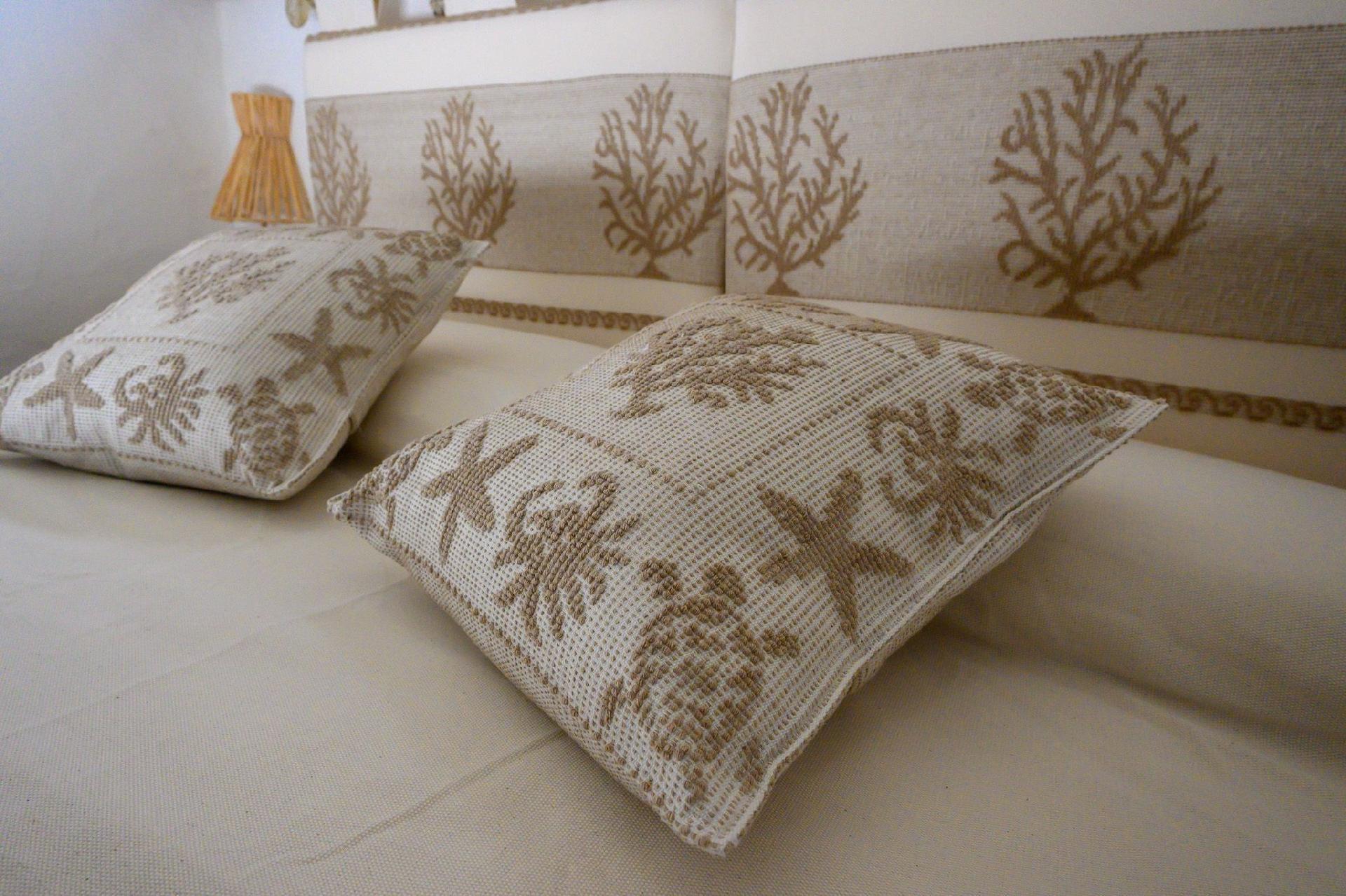 The recently renovated flat has two spacious double bedrooms, two complete bathrooms with shower, bidet and WC and a large living room with kitchenette and double sofa bed. The interior furnishings include handmade wooden cabinets by a local carpenter.