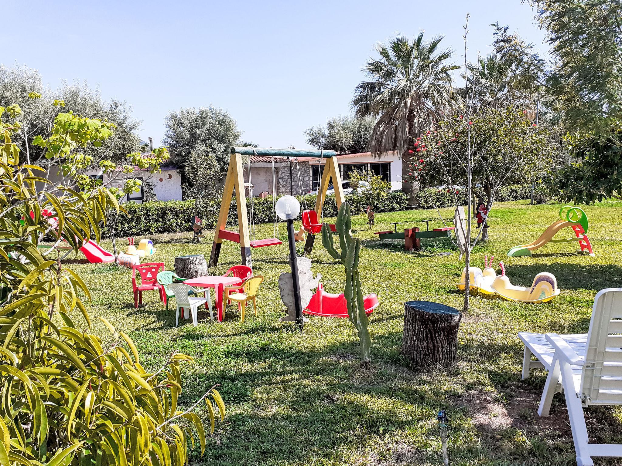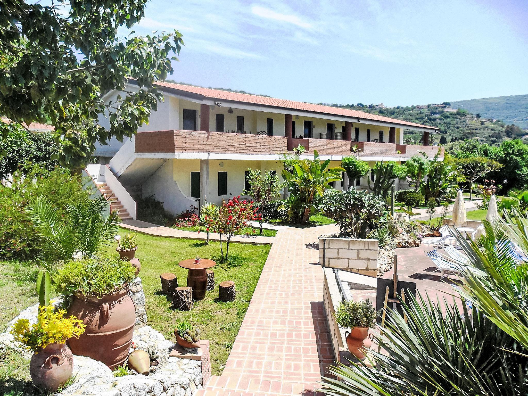 Santa Maria di Ricadi 8 km from Tropea: Small, child friendly, cosy holiday village "Heaven", surrounded by trees. In the district Santa Maria di Ricadi, in a sunny position, 550 m from the sea, 550 m from the beach. For shared use: well-kept garden plants and flowers, lawn for sunbathing, swimming pool (12 x 6 m, depth 90 - 150 cm, seasonal availability: 16.Apr. - 29.Oct. pool opening hours: 08:00-14:00 and 16:00-20:00). Outdoor shower, volleyball court, patio, garden furniture, barbecue, children's playground (slide, swing). In the complex: reception, restaurant, bar, WiFi, table football, sun terrace, washing machine (for shared use, extra). Linen change (suppl. charge extra). Towel change (suppl. charge extra). Breakfast and half board possible (extra). Airport transfer (extra). Parking on the premises. Shop, grocery, supermarket, restaurant, bar 500 m, 10 minute walk to the centre, bus stop 1 km, railway station "Ricadi" 5 km, sandy beach "Santa Maria di Ricadi" 550 m. Nearby attractions: Baia di Grotticelle 1 km, Tropea 8 km, Faro Capo Vaticano 3 km, Vibo Valentia 30 km, Reggio Calabria 90 km. Please note: suitable for families, baby equipment on request. Local sale of farm products. The photograph shows a typical example. Additional accommodations can be booked. The holiday properties may differ in situation, size and location. Included in the price: swimming pool, shuttle to/from the sea, parking, transfer to Ricadi station arrival/departure. The apartments are located on the ground or first floor and have a veranda or patio.