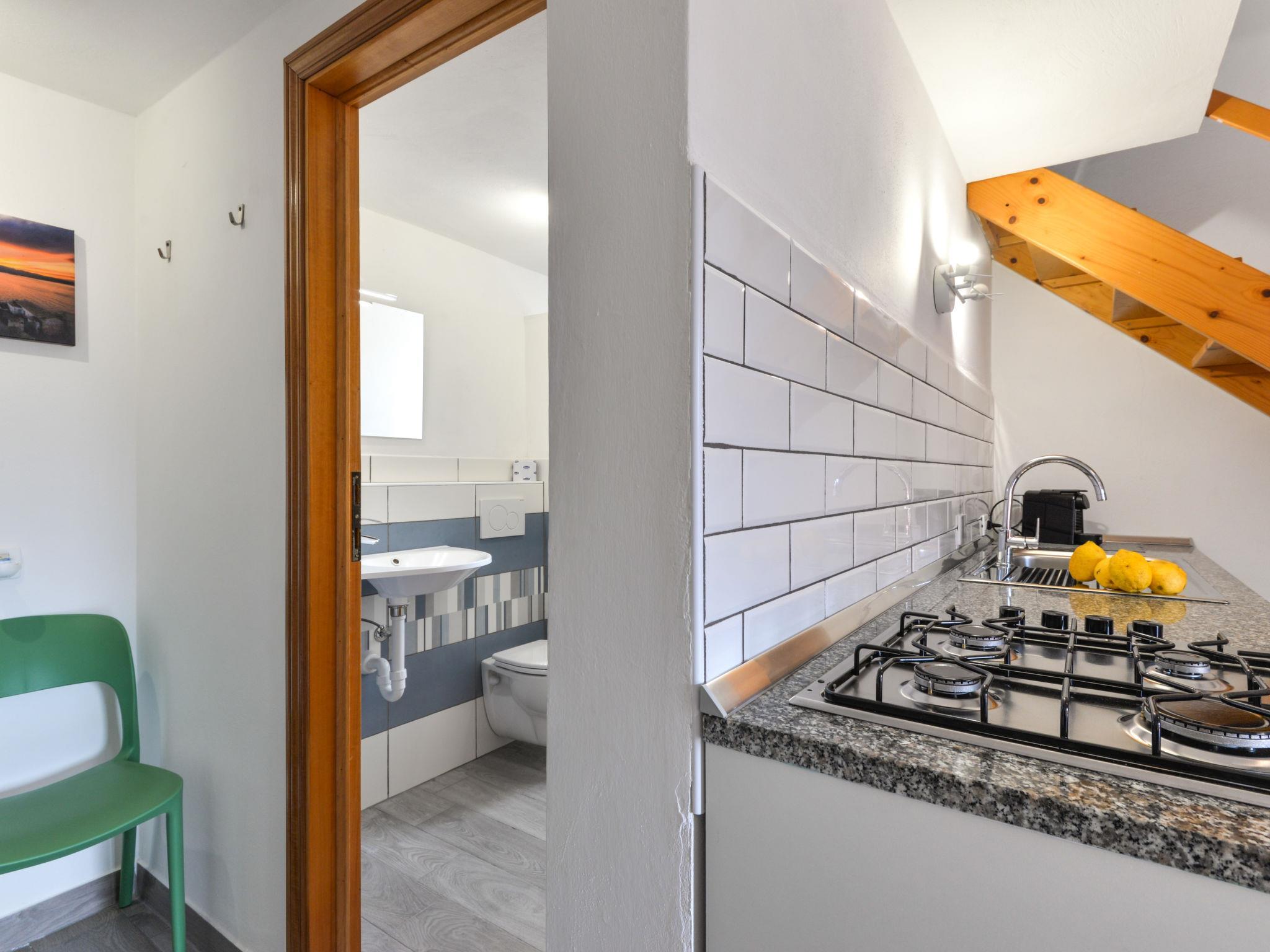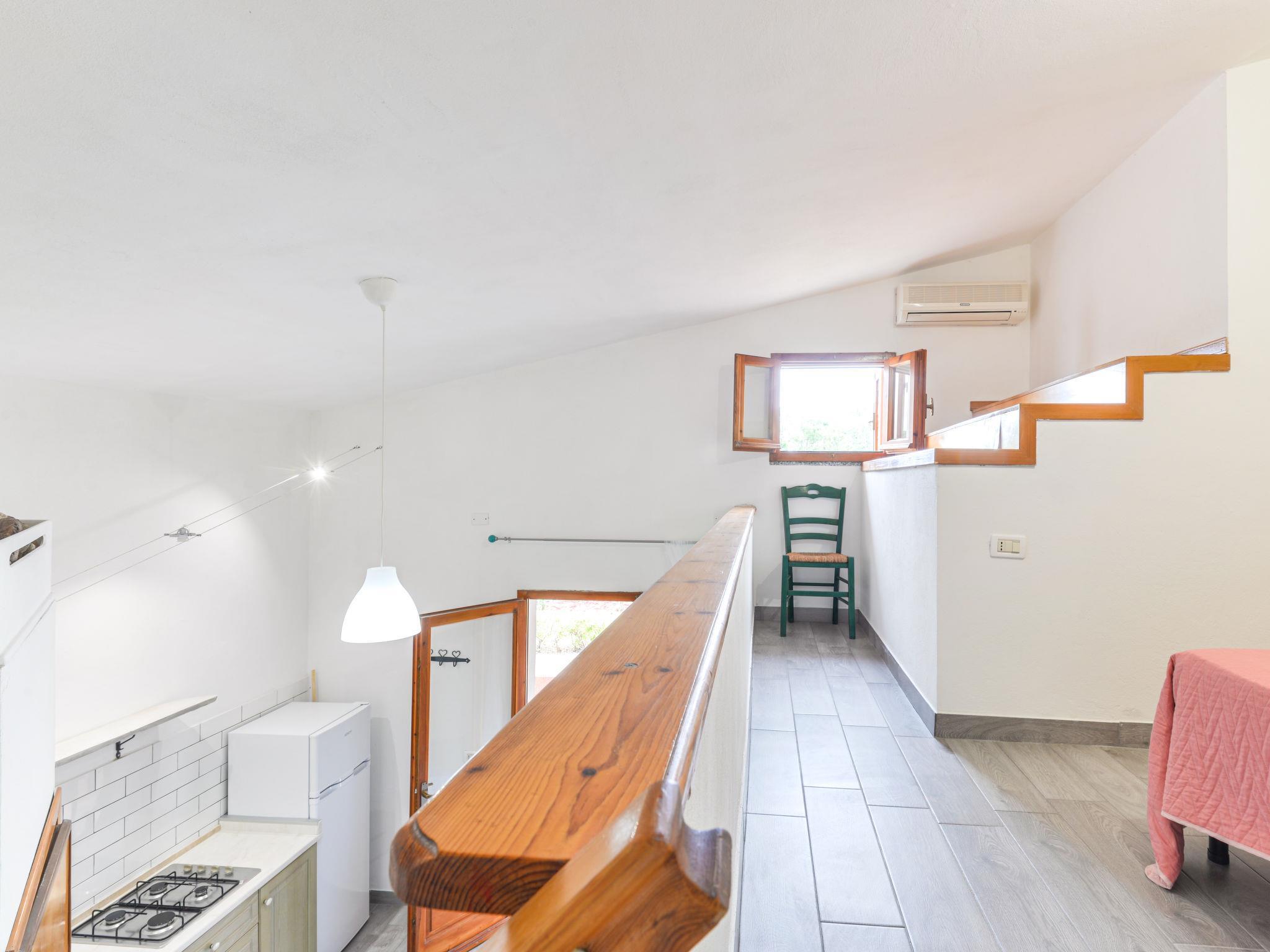 1-room apartment 25 m2 on 2 levels, on the ground floor. Practical furnishings: living/sleeping room with 1 bed (80 cm), dining table. Kitchenette (4 gas rings). Shower/bidet/WC. Upper floor: open gallery with sloping ceilings with 1 double bed and air conditioning. Heating, air-conditioning. Terrace 18 m2, roofed. Terrace furniture. View of the garden. Facilities: baby cot for up to 2 year olds. Parking (fenced). Please note: non-smokers only. Private entrance. IT049004B4A6O9GTFB
