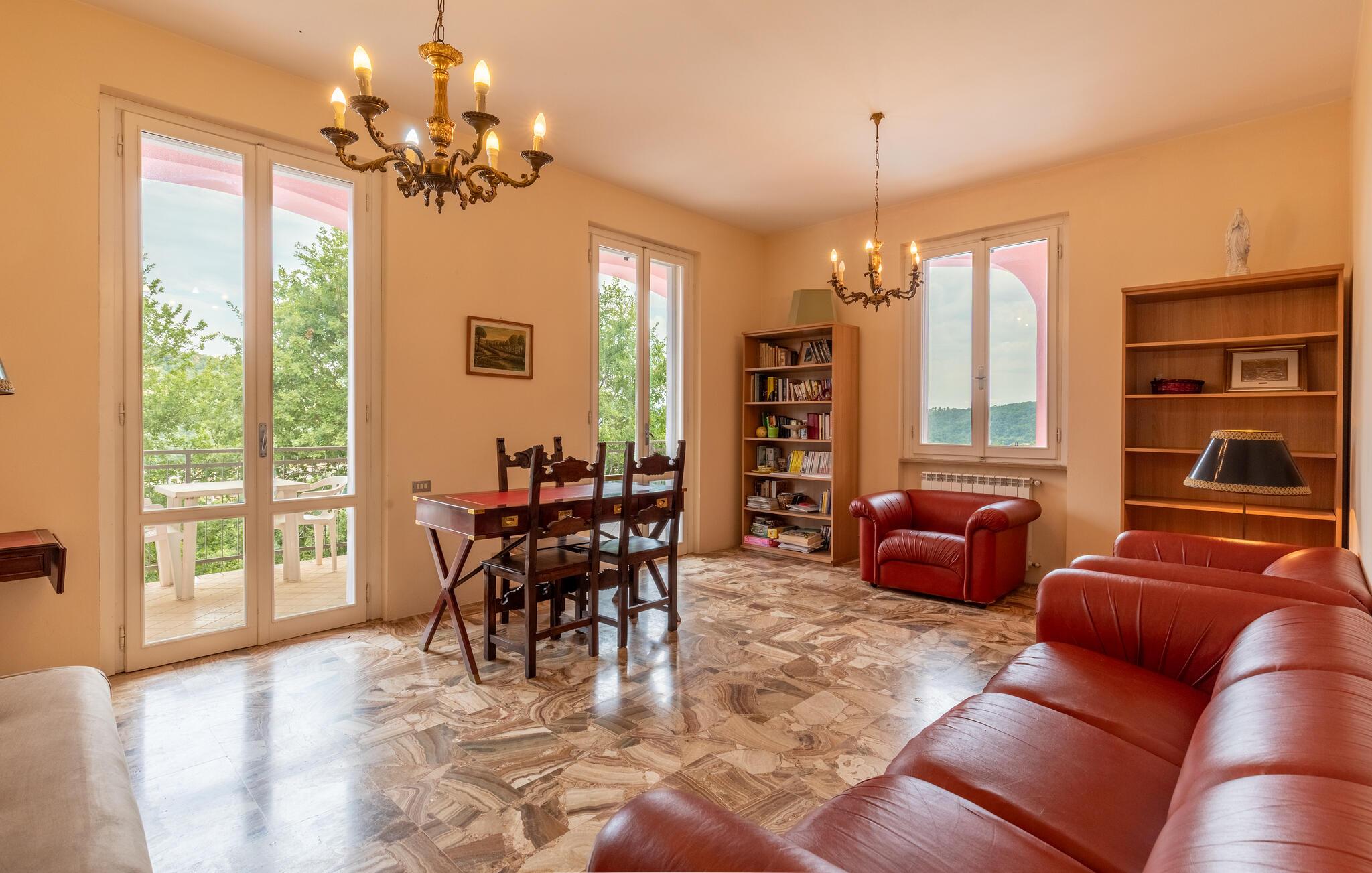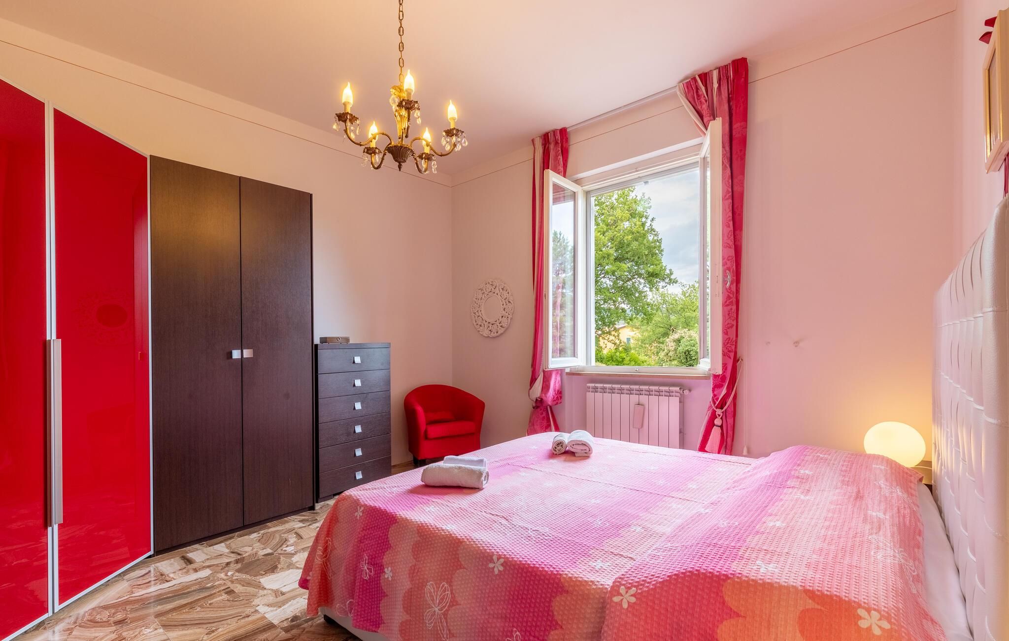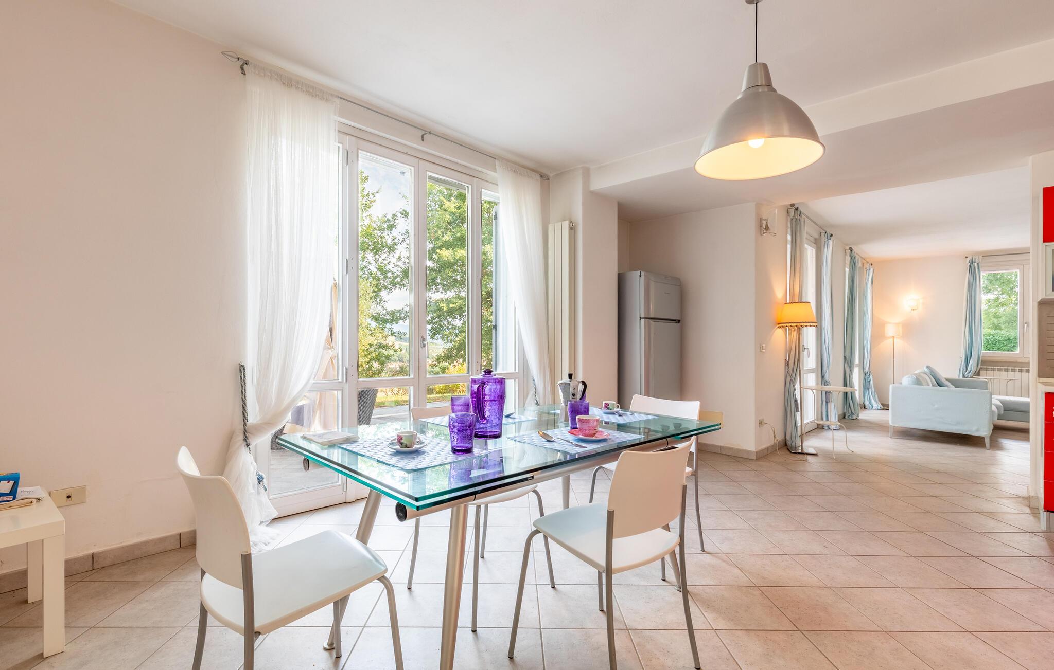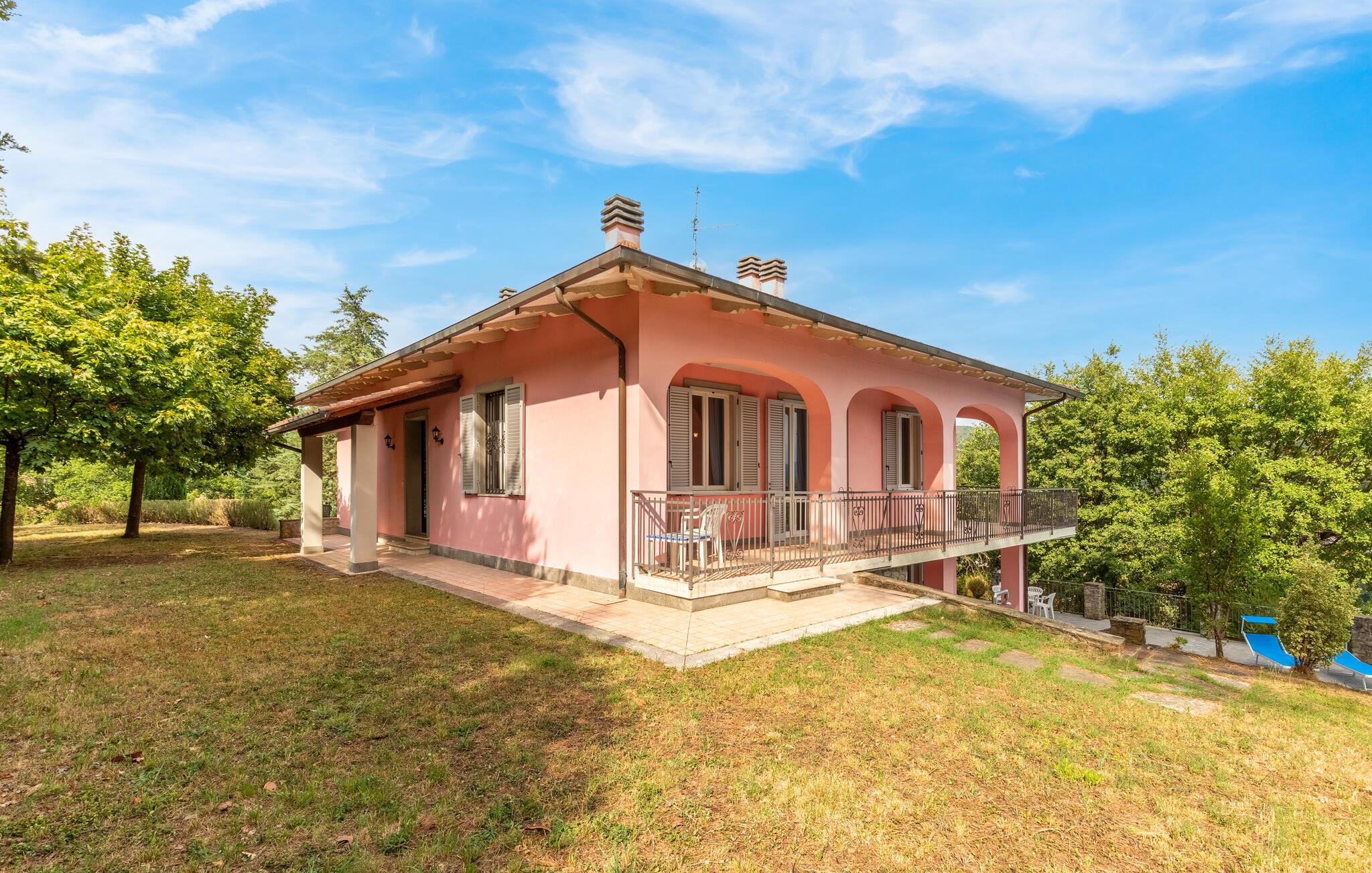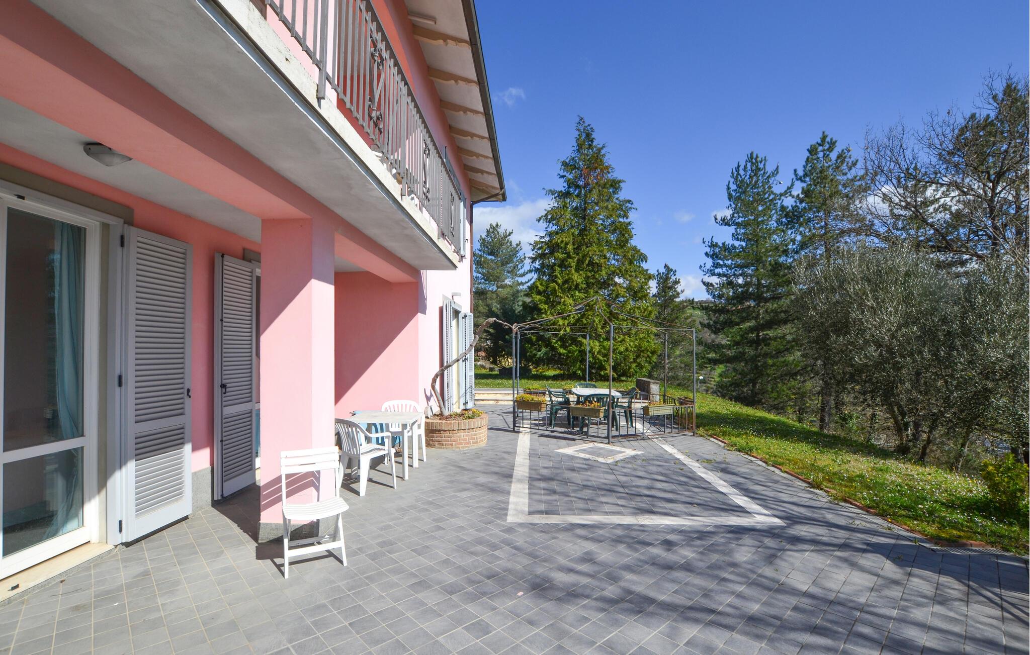 Nyd jeres ferie i et feriehus med pool og en fantastisk udsigt. Velkommen til dette indbydende hus ved porten til Toscana, hvor I vil føle jer hjemme fra første dag. Glæd jer til individuelt indrettede og lyse værelser med spændende farveaccenter, nyd udsigten over det omkringliggende landskab, spis sammen ved det lange spisebord, og hyg jer sammen på sofaen om aftenen efter en begivenhedsrig dag. Slap af på grunden, nyd de første solstråler på altanen, solbad og svøm i poolen til jeres hjertens lyst. Om aftenen kan I nyde kolde drikke udendørs og slappe af foran en storslået kulisse. Bliv inspireret af naturens ro eller udforsk regionen aktivt ved at vandre eller cykle på velafmærkede stier gennem de toscanske bakker. Besøg middelalderbyen Arezzo, beundre de storslåede fresker i San Francesco-kirken, slentre gennem det berømte antikvitetsmarked, eller nyd en espresso på Piazza Grande.