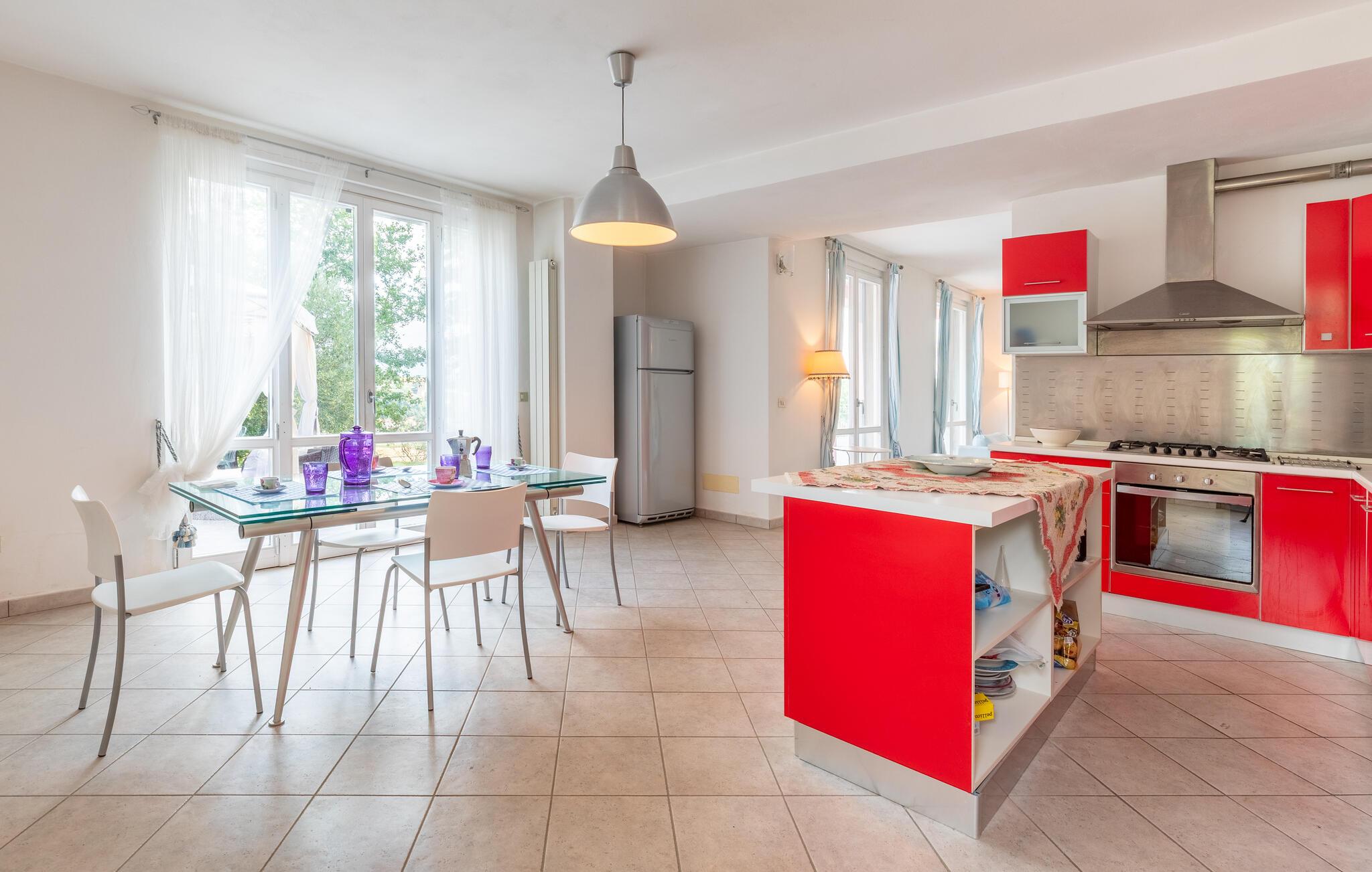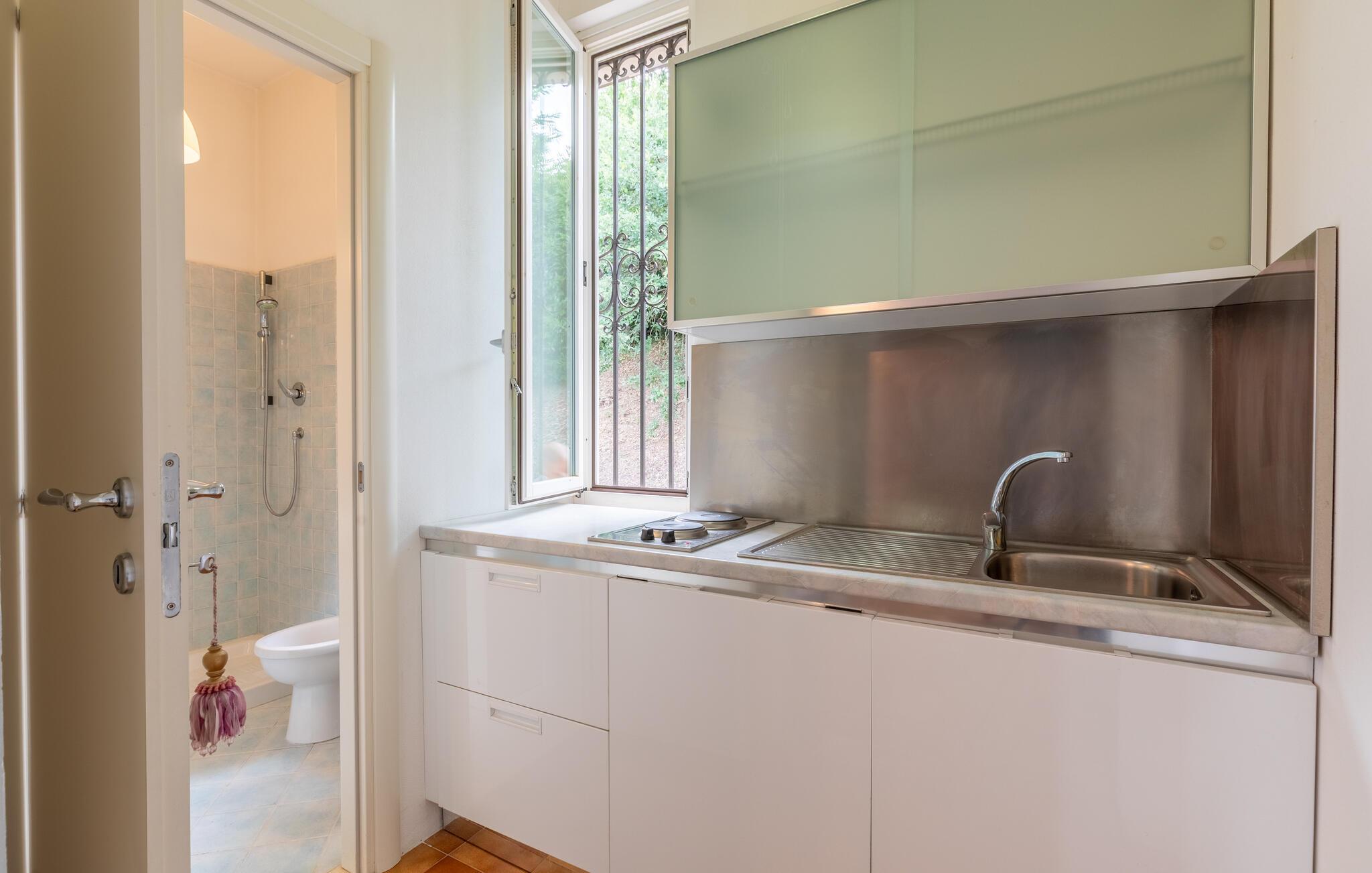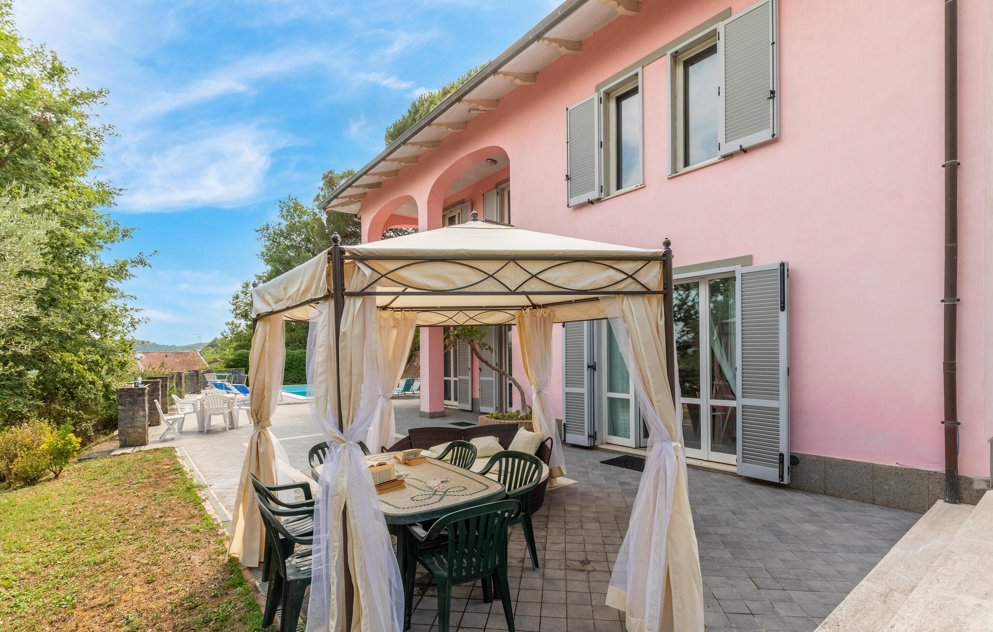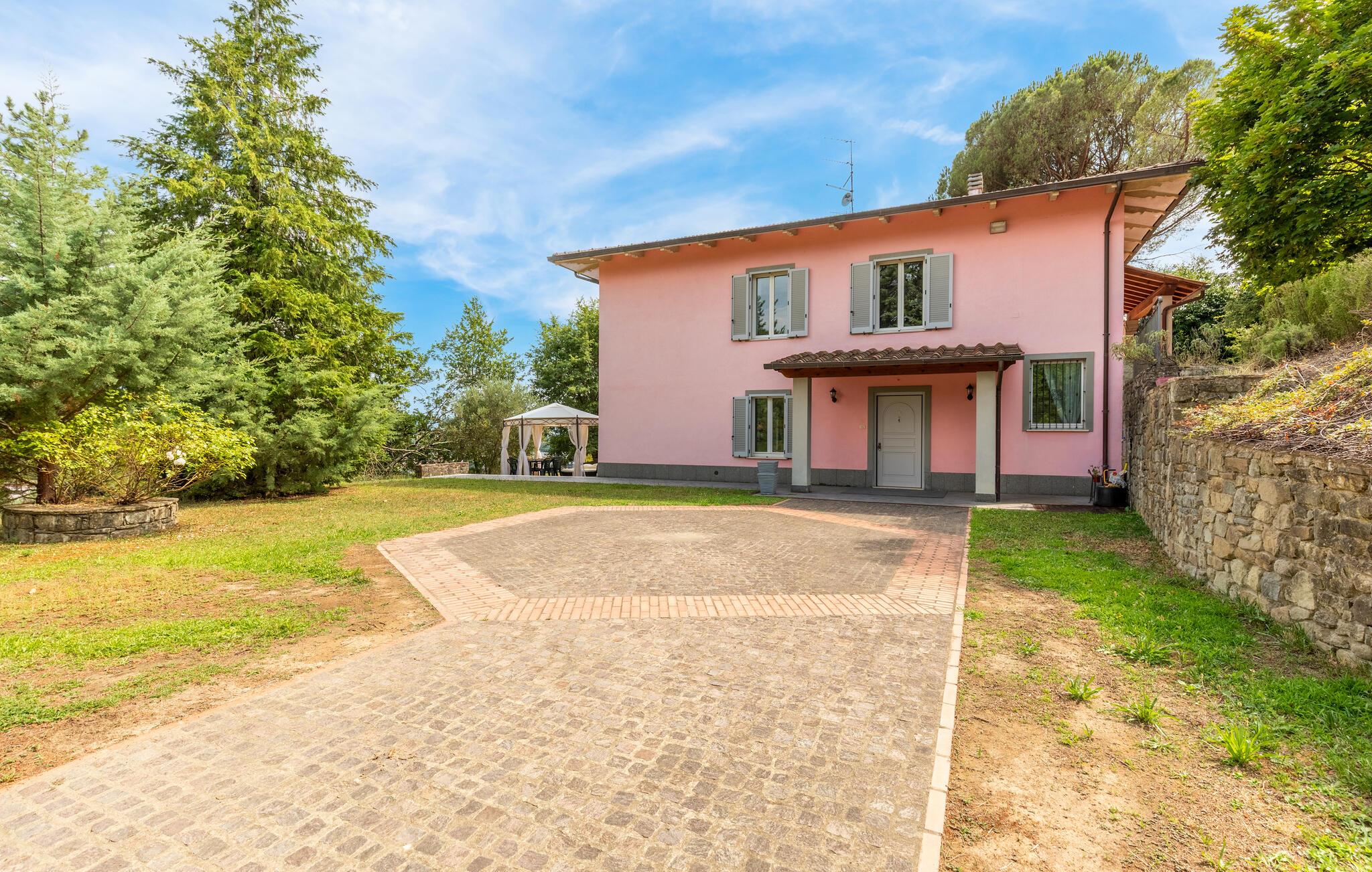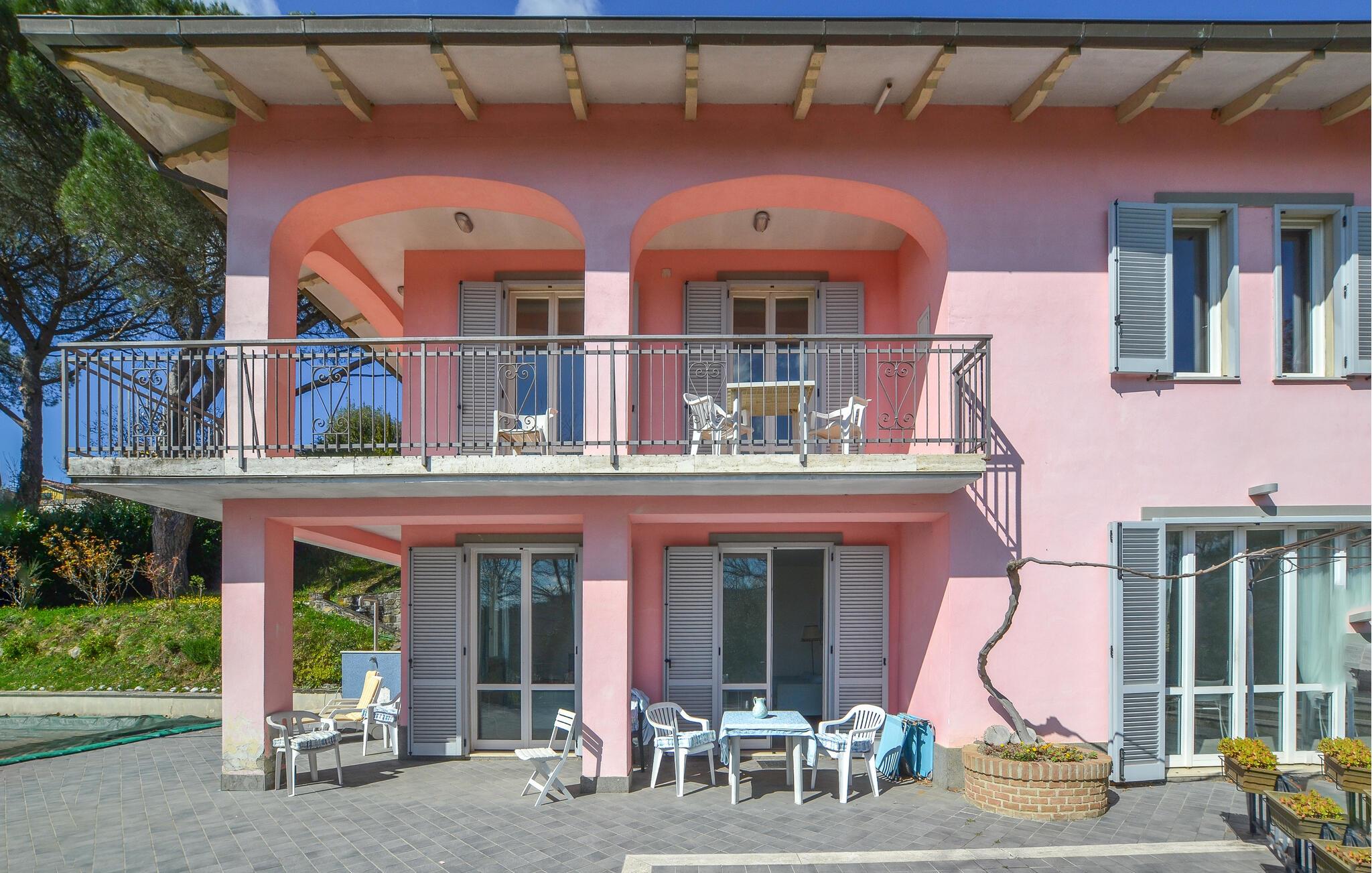 Nyd jeres ferie i et feriehus med pool og en fantastisk udsigt. Velkommen til dette indbydende hus ved porten til Toscana, hvor I vil føle jer hjemme fra første dag. Glæd jer til individuelt indrettede og lyse værelser med spændende farveaccenter, nyd udsigten over det omkringliggende landskab, spis sammen ved det lange spisebord, og hyg jer sammen på sofaen om aftenen efter en begivenhedsrig dag. Slap af på grunden, nyd de første solstråler på altanen, solbad og svøm i poolen til jeres hjertens lyst. Om aftenen kan I nyde kolde drikke udendørs og slappe af foran en storslået kulisse. Bliv inspireret af naturens ro eller udforsk regionen aktivt ved at vandre eller cykle på velafmærkede stier gennem de toscanske bakker. Besøg middelalderbyen Arezzo, beundre de storslåede fresker i San Francesco-kirken, slentre gennem det berømte antikvitetsmarked, eller nyd en espresso på Piazza Grande.