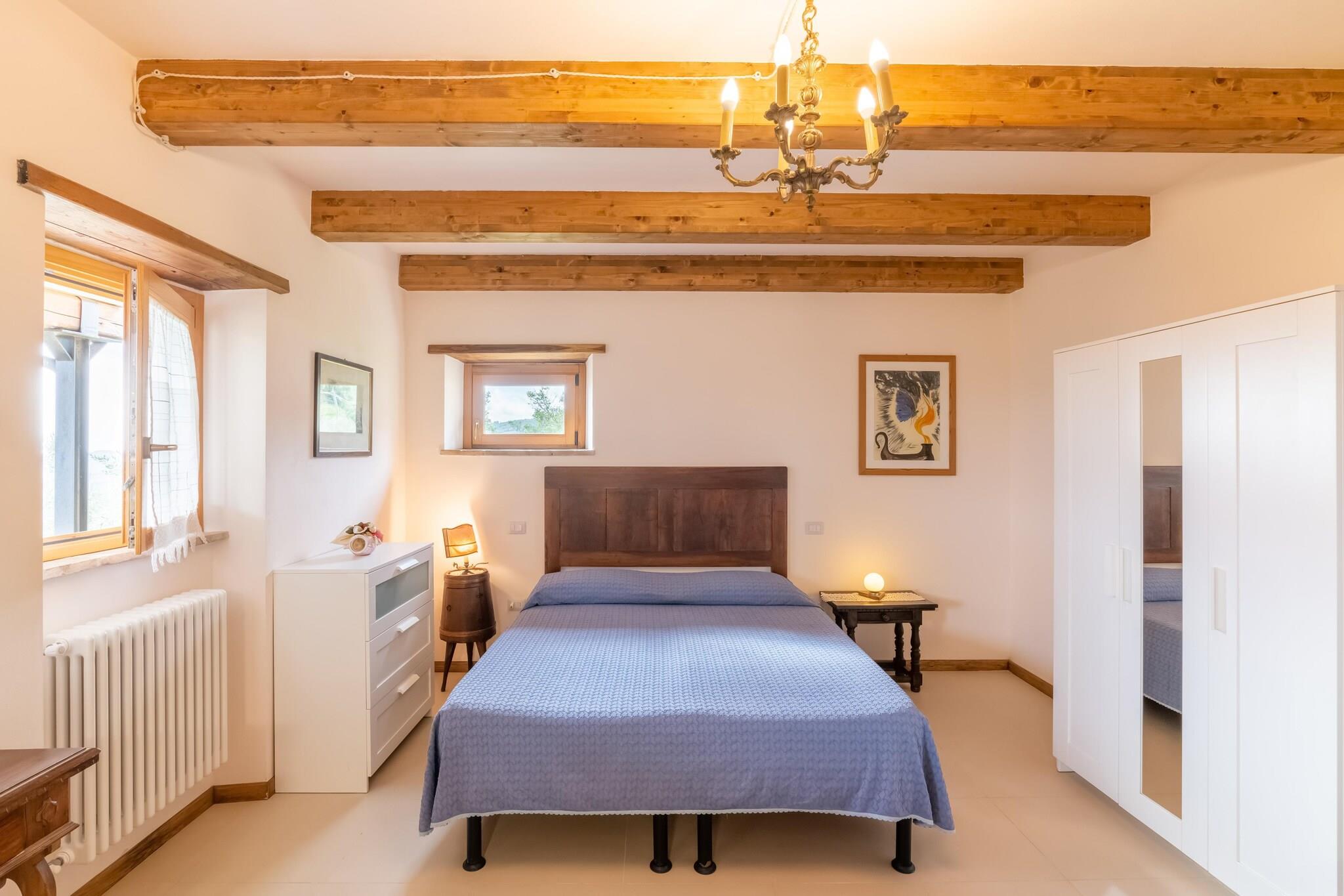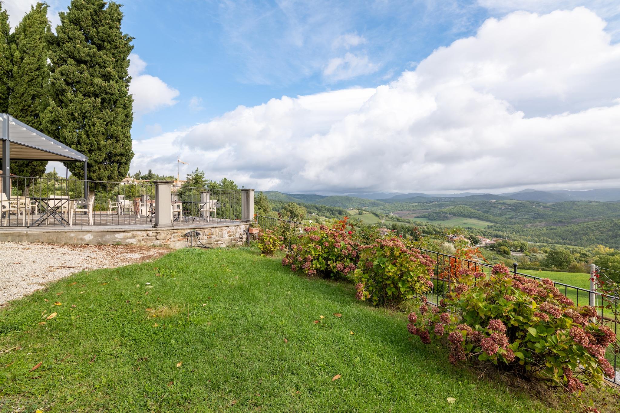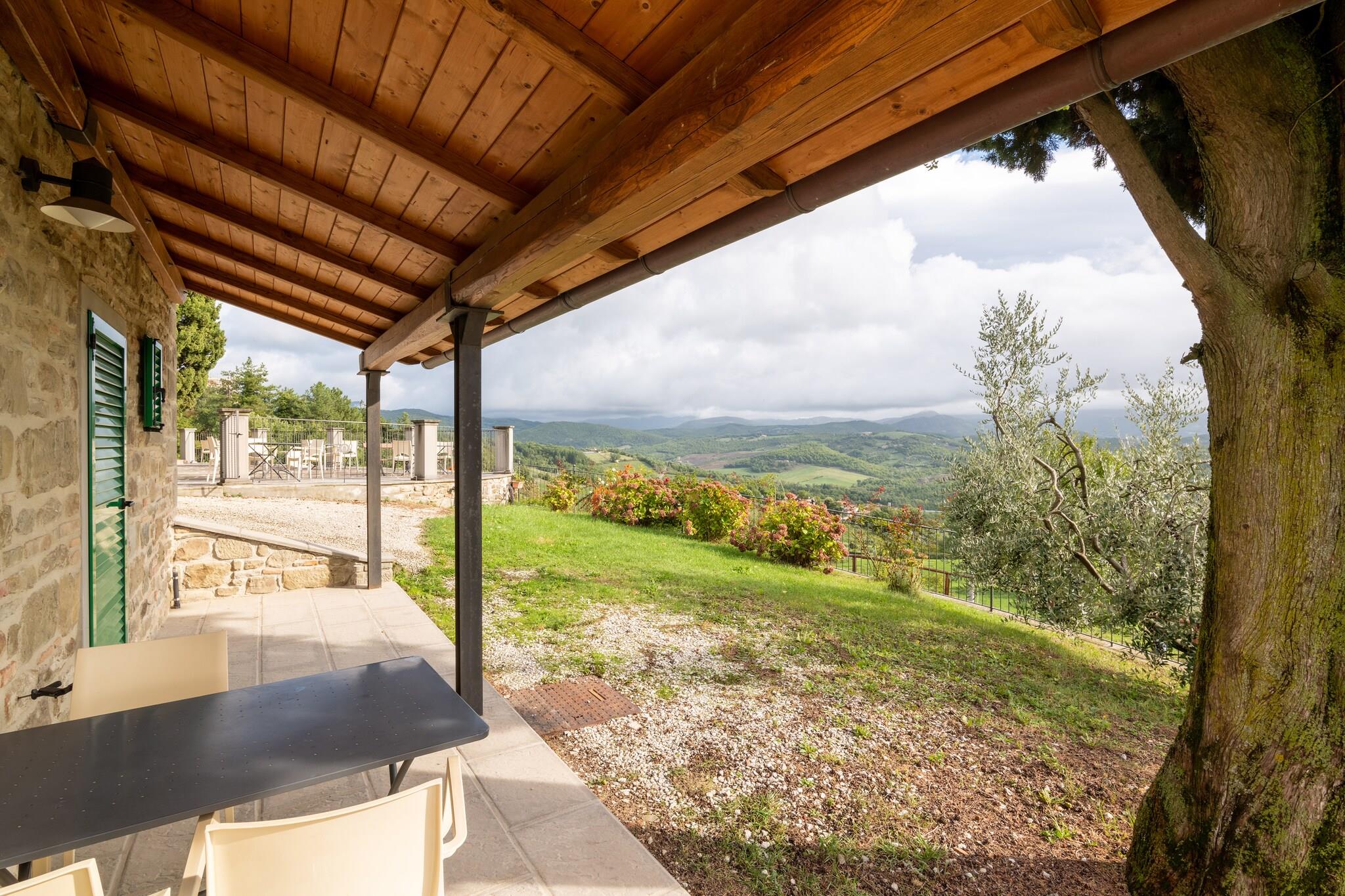 Denne smukke lejlighed ligger på en ejendom midt i Appenninerne med udsigt over de omkringliggende bakker og Montedoglio-søen. Den ældste del af ejendommen er et middelaldertårn, som kan dateres tilbage til 1400. Ejendommen ligger tæt på fødestedet for den berømte kunstner Michelangelo. Lejligheden ligger i stueetagen i en restaureret lade. Indretningen er slående og træbjælkeloftet tilføjer en varm atmosfære.På den private veranda foran lejligheden kan du sidde udenfor delvist overdækket og nyde udsigten over de toscanske bakker Svømmehallen byder på forfriskning på varme dage.Det mest overraskende træk ved dette "feriehus" er verandaen ved indgangen, som skygger for bygningen og giver dig mulighed for at sidde ved bordet udenfor og slappe af uden at skulle åbne eller luk paraplyerne.Udsigten fra denne lejlighed har udsigt over dalen og Lake Montedoglio. I godsets restaurant er det muligt at smage godsets produkter, såsom Cinta Senese kød, en toscansk svinerace. Du kan gå til stedet hvor Michelangelos fødested er
